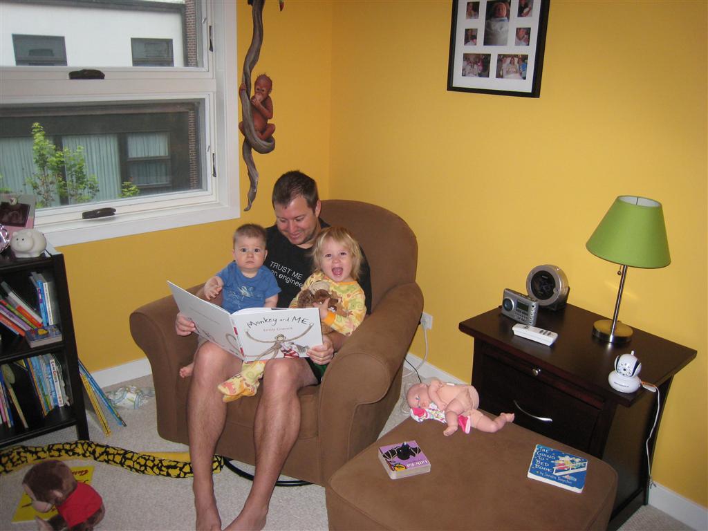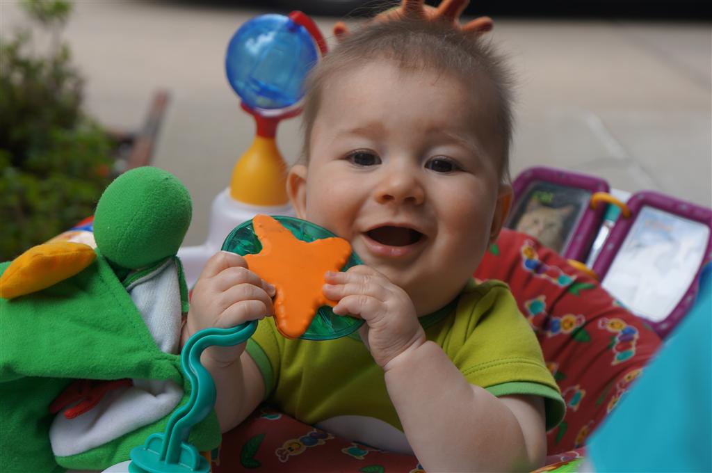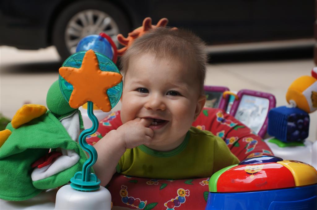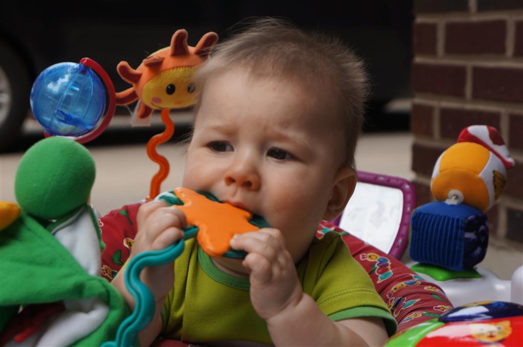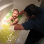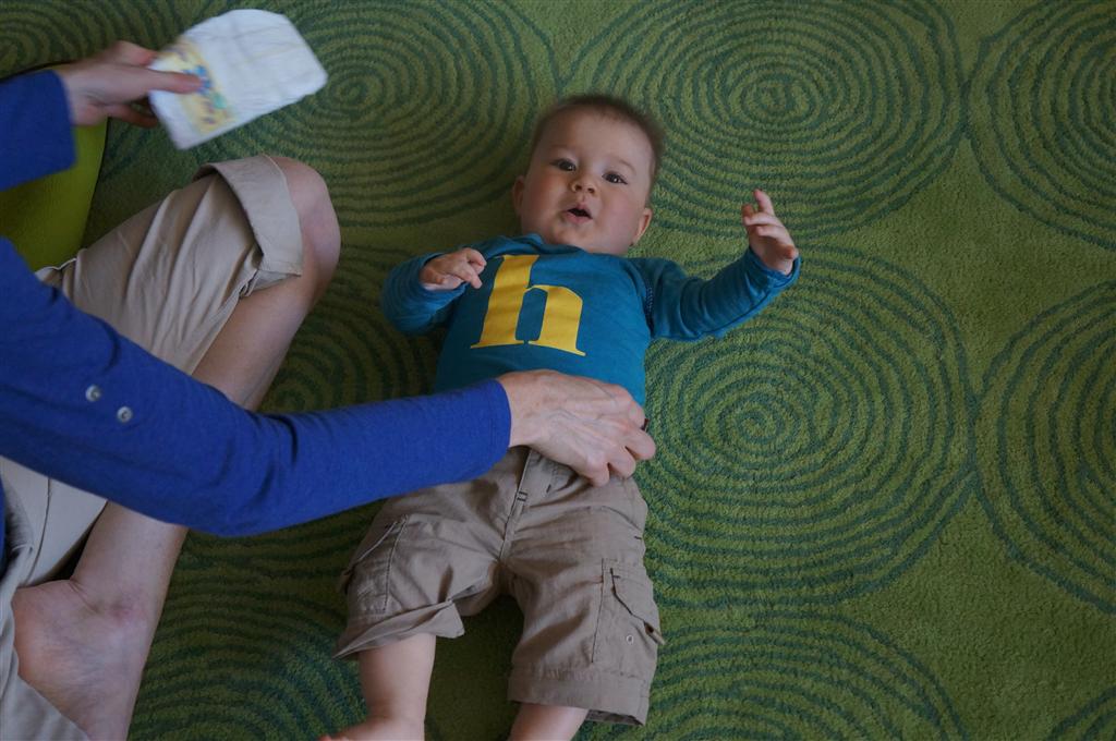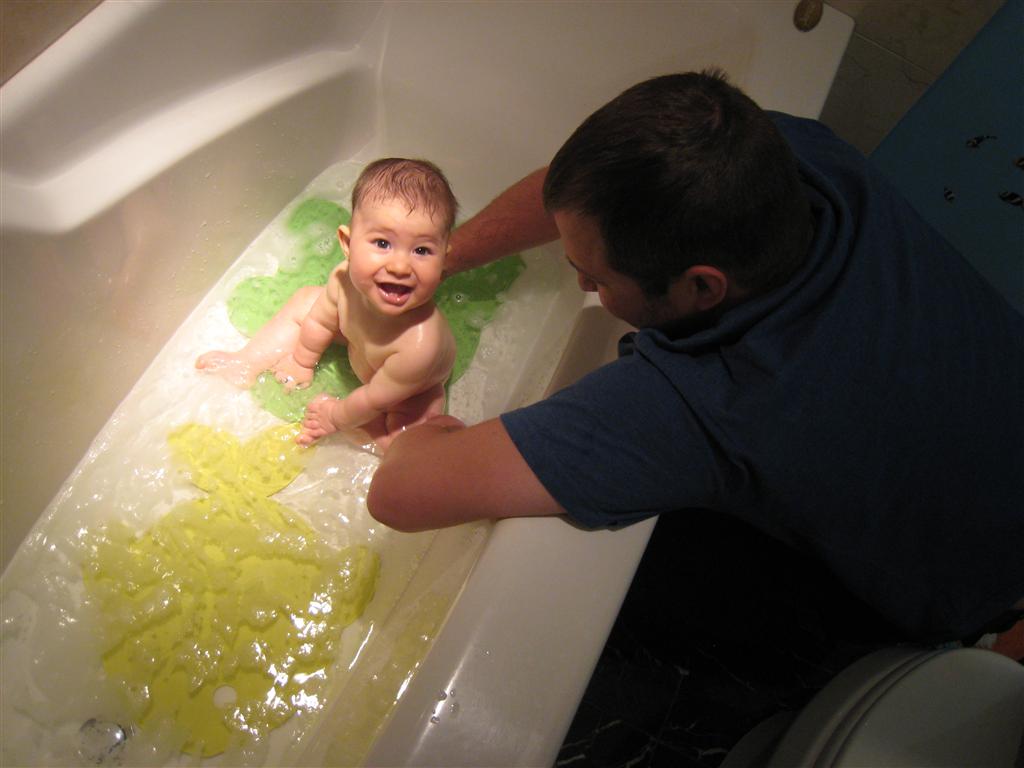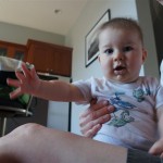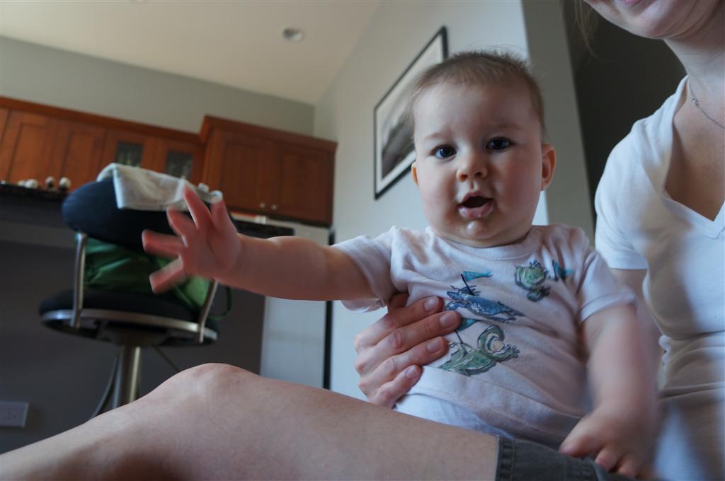Henry’s big development this week is the advent of three new teeth poking through on top, to compliment the one that made its break through last week. I tried to get some pictures, but you can really only see the one. He also took a bath in the big tub in his bathroom for the first time – although the impetus for the bath was unfortunate. He was eating a puff after lunch and it caused him to gag a bit, which is does sometimes, but this time instead of just a little gag it was followed by the entire contents of lunch in projectile format :( poor guy. (not pictured…you’re welcome) On a positive note, Henry got an addition to his room this week, Momma moved the rocking chair into his room, so now he doesn’t have to read bedtime stories in Eleanor’s room.