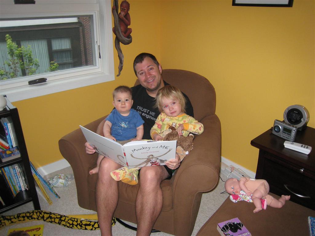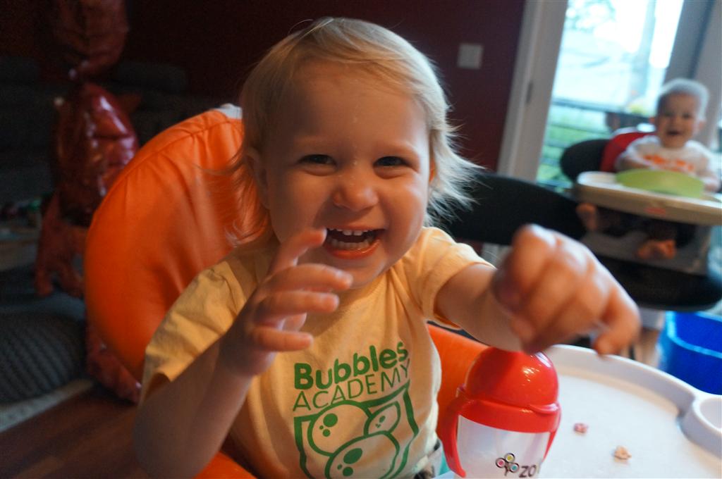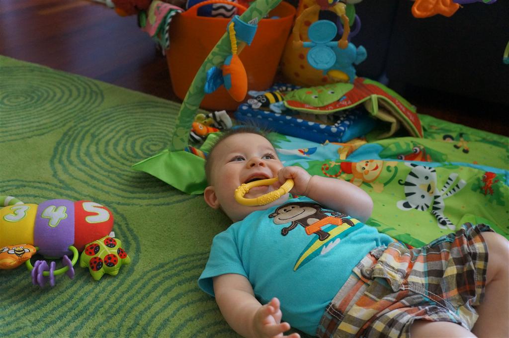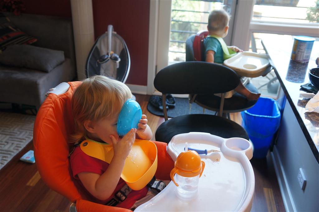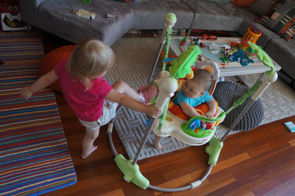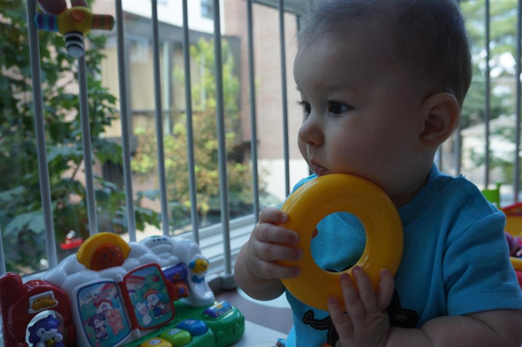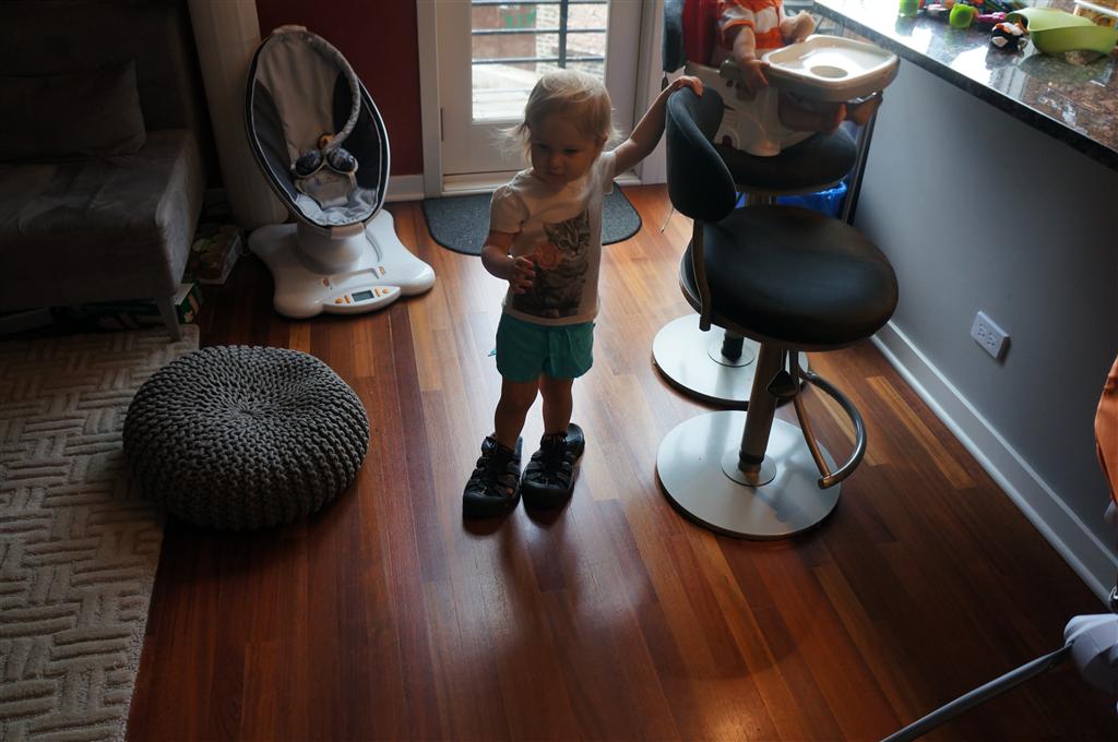 Henry’s big development this week is the advent of three new teeth poking through on top, to compliment the one that made its break through last week. I tried to get some pictures, but you can really only see the one. He also took a bath in the big tub in his bathroom for the first time – although the impetus for the bath was unfortunate. He was eating a puff after lunch and it caused him to gag a bit, which is does sometimes, but this time instead of just a little gag it was followed by the entire contents of lunch in projectile format :( poor guy. (not pictured…you’re welcome) On a positive note, Henry got an addition to his room this week, Momma moved the rocking chair into his room, so now he doesn’t have to read bedtime stories in Eleanor’s room.