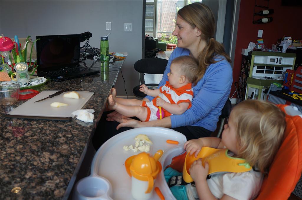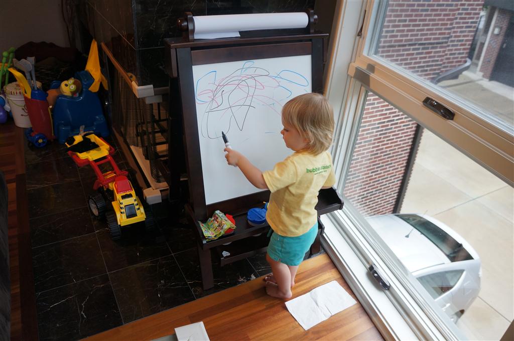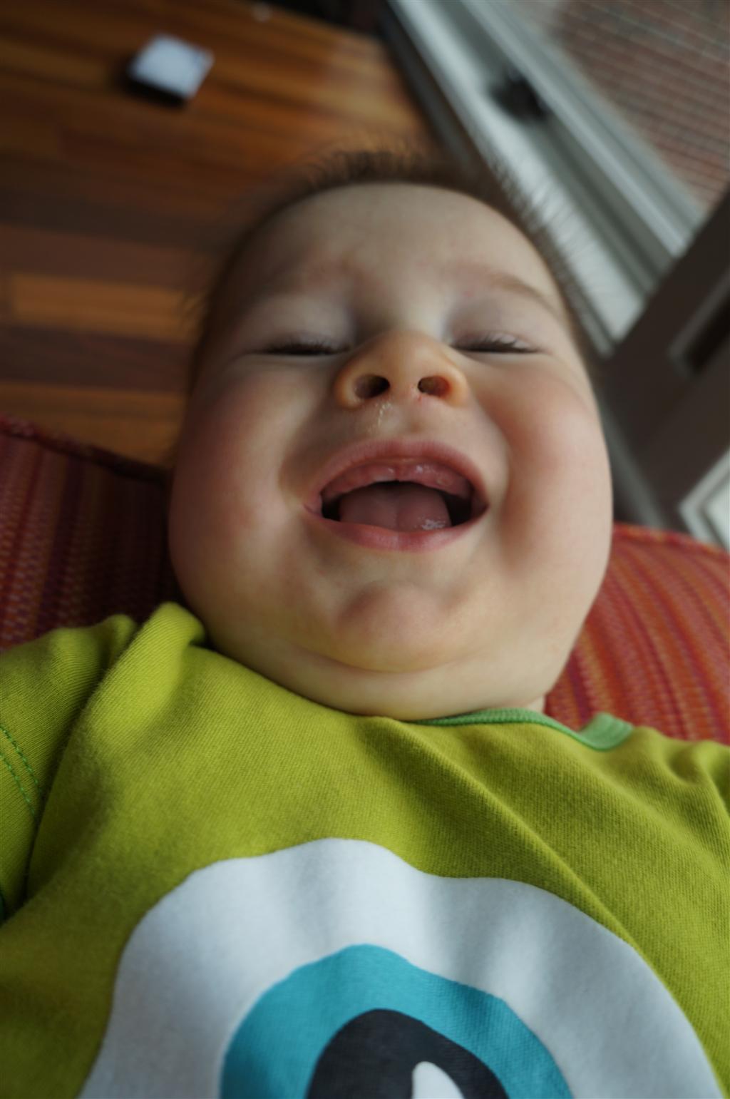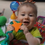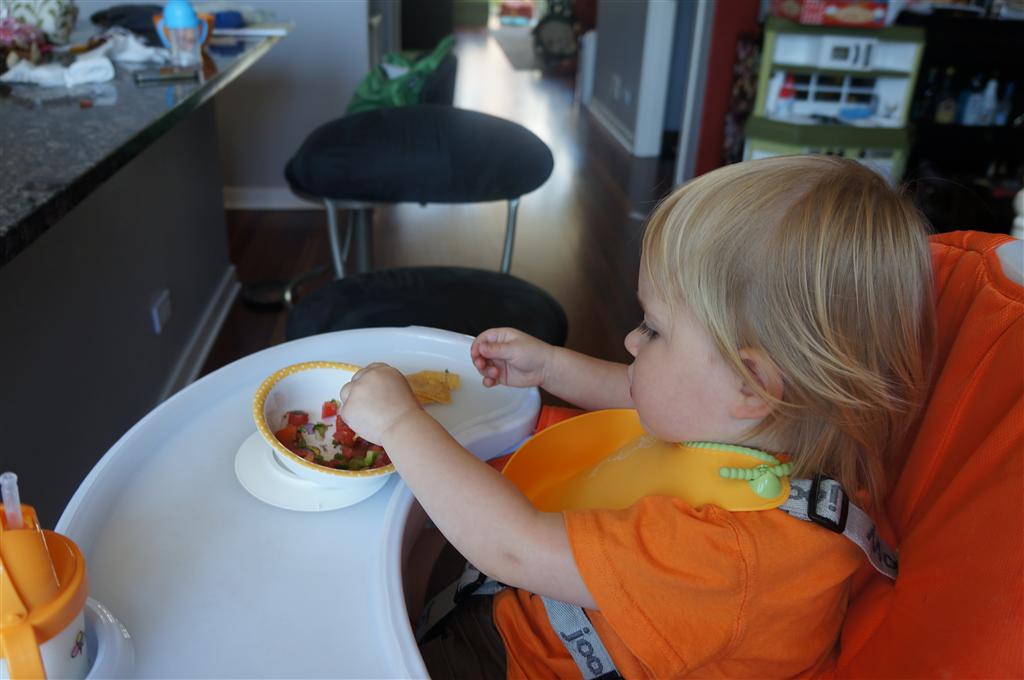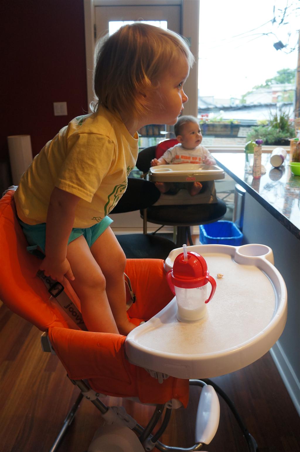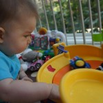 Henry’s big development this week is the advent of three new teeth poking through on top, to compliment the one that made its break through last week. I tried to get some pictures, but you can really only see the one. He also took a bath in the big tub in his bathroom for the first time – although the impetus for the bath was unfortunate. He was eating a puff after lunch and it caused him to gag a bit, which is does sometimes, but this time instead of just a little gag it was followed by the entire contents of lunch in projectile format :( poor guy. (not pictured…you’re welcome) On a positive note, Henry got an addition to his room this week, Momma moved the rocking chair into his room, so now he doesn’t have to read bedtime stories in Eleanor’s room.