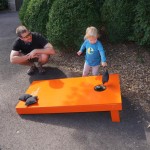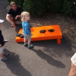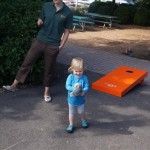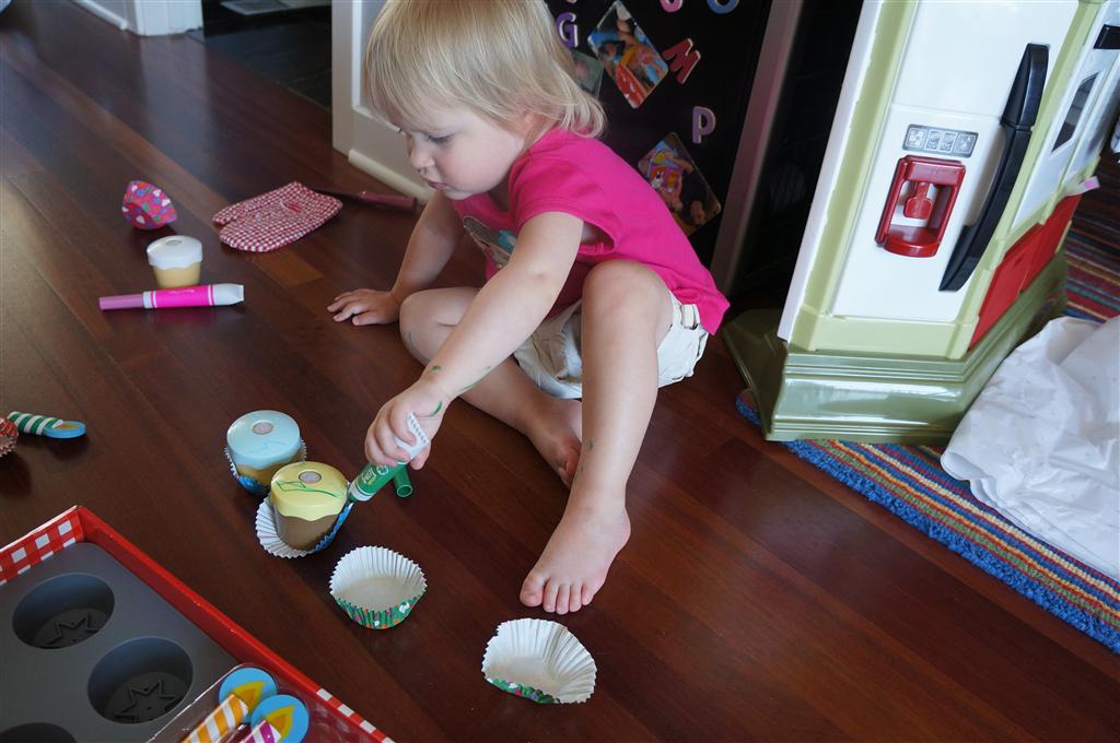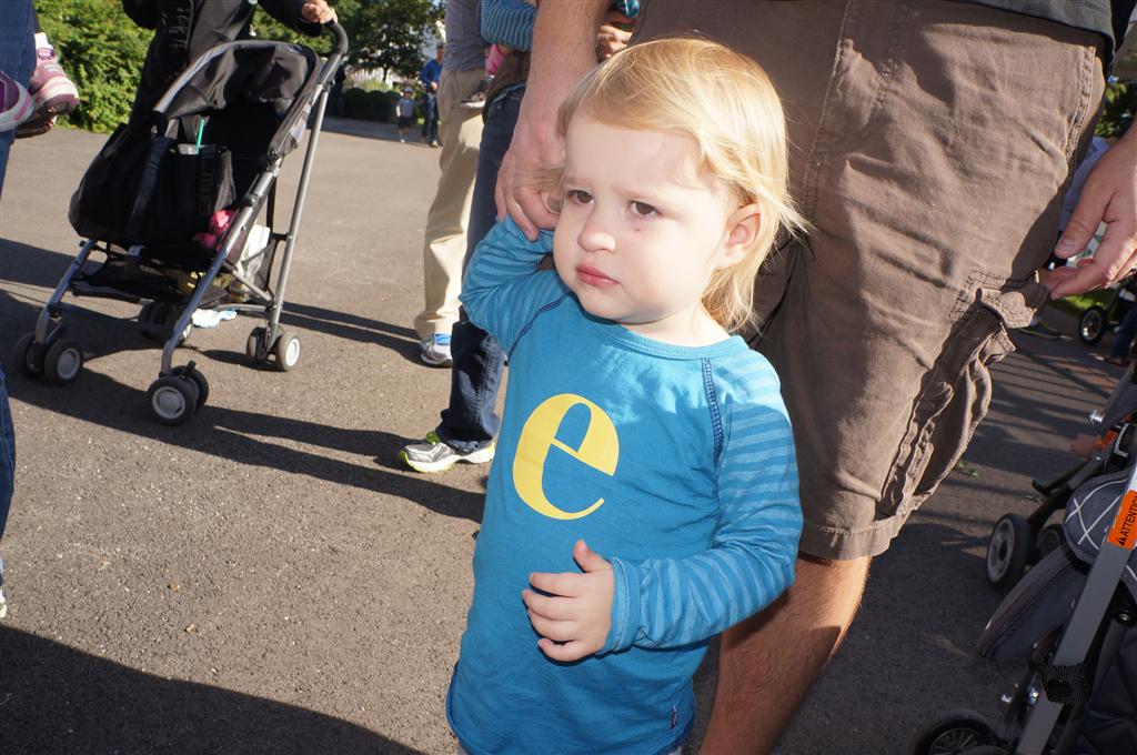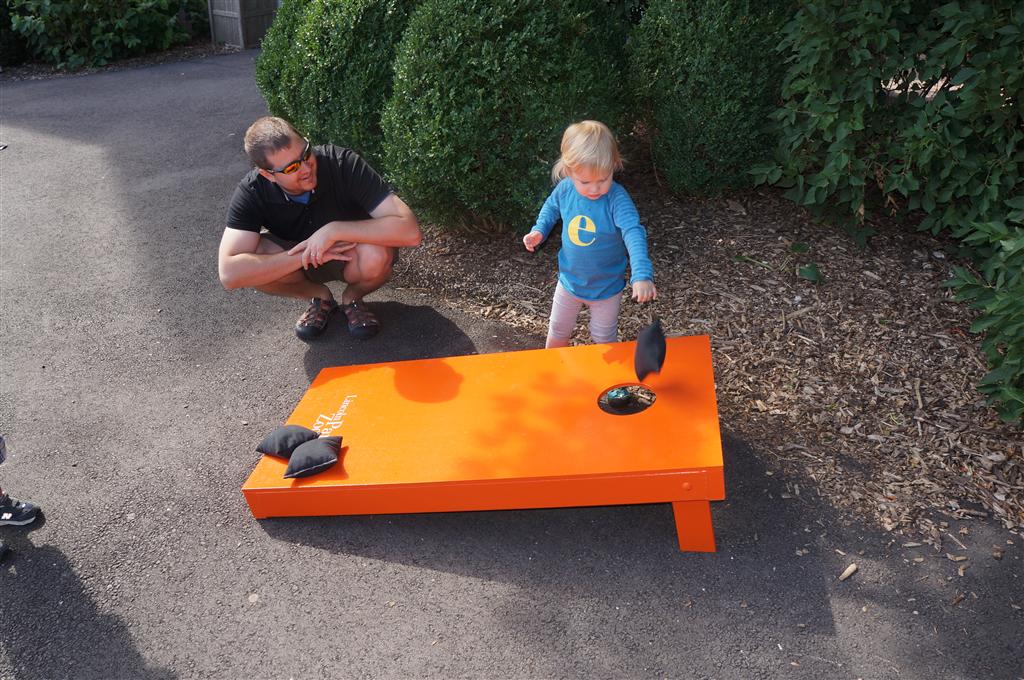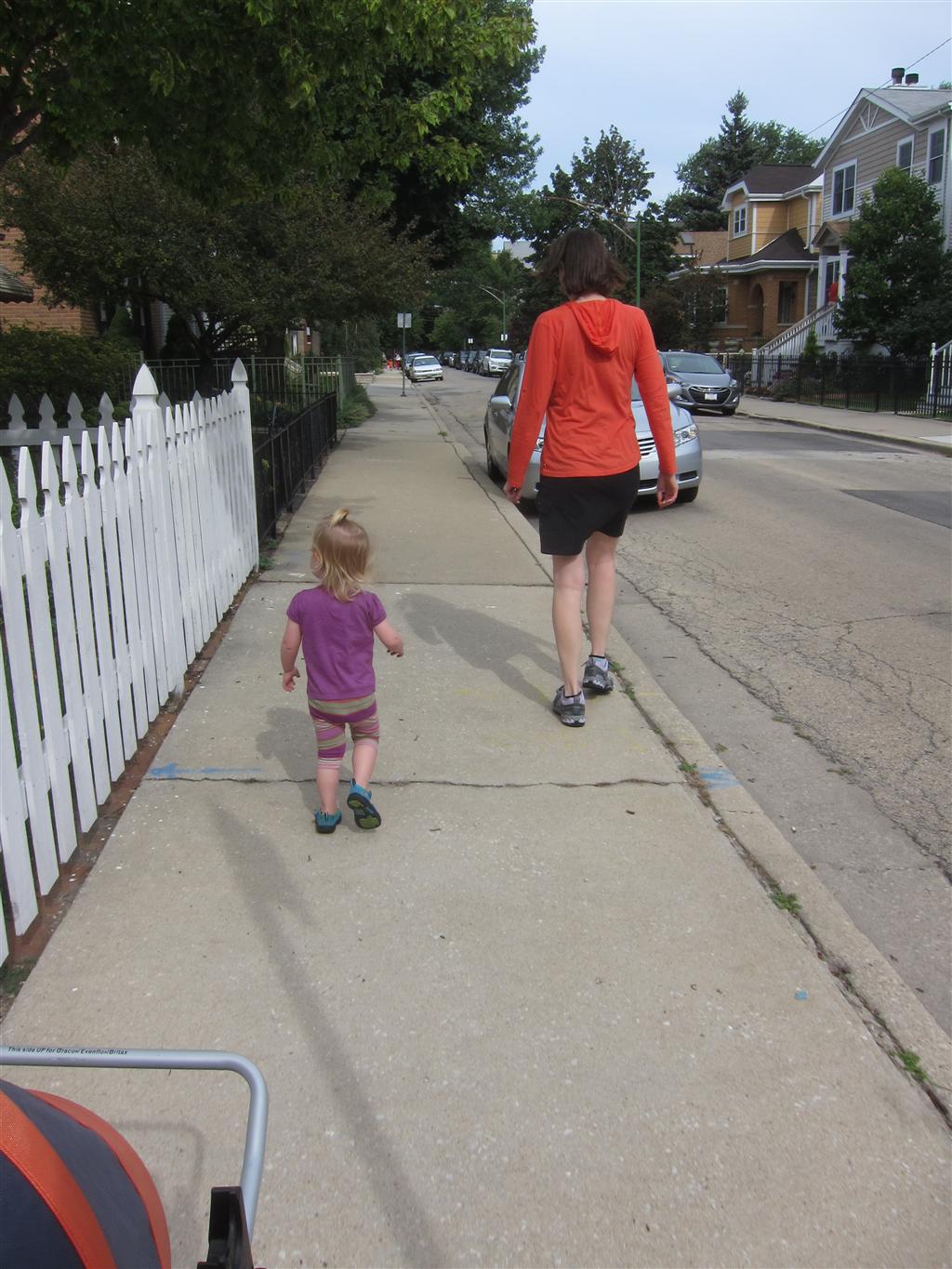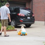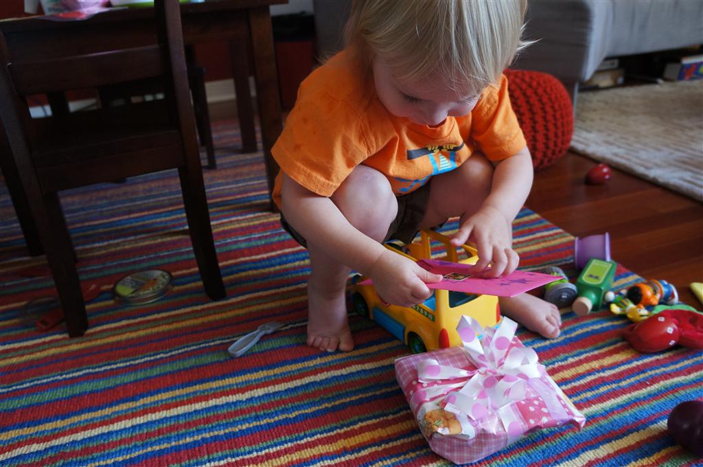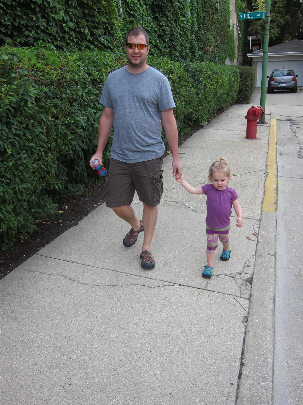 Eleanor had her doctor checkup this week, and everything went well, although she didn’t appreciate the flu shot. We had heard rumors that they would ask us if Eleanor can jump yet (which she can’t) but it didn’t come up. Eleanor had lots of fun this week outside, she rode on her new tricycle for the first time, although because she has to wear her bike helmet while on it, she currently prefers to push it rather than ride on it. Hopefully that will change soon. She also discovered a new game where Dad throws the ball high in the air, and Eleanor giggles while it bounces and then chases it down for a repeat. On a funny side note, Mom found Eleanor in her crib one afternoon after her nap completely naked from the waist down – she had for some reason taken off her pants and diaper (also not pictured :) ).