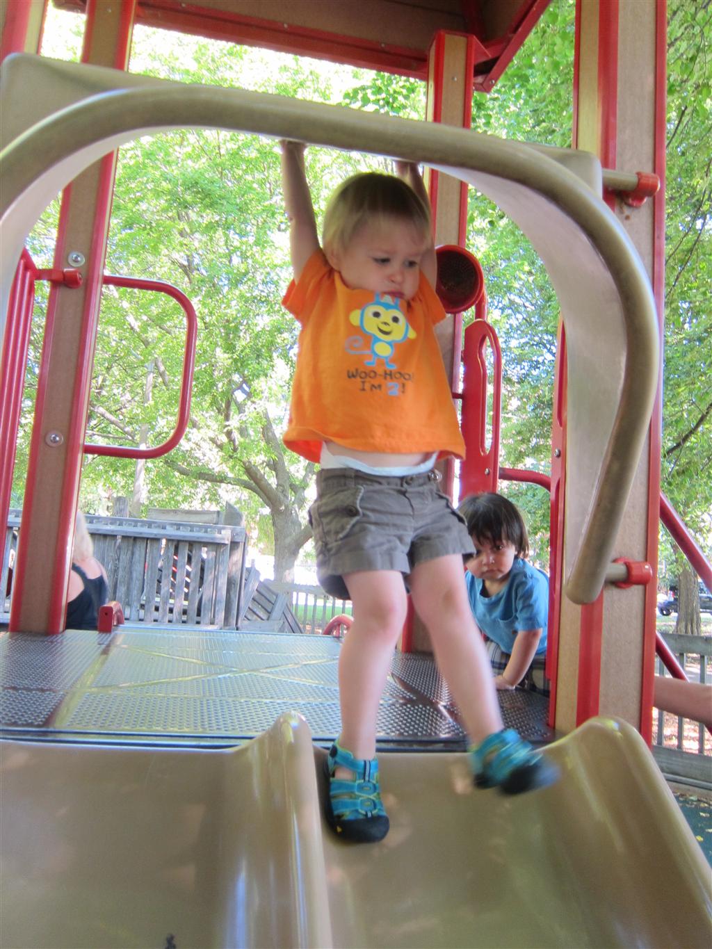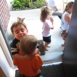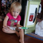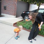 Eleanor and Henry enjoyed a trip to the zoo this week! It was a bit chilly that morning, so they donned their matching long sleeve letter shirts, and had a blast exploring the “farm” part of the zoo. Eleanor and I got in line to feed the cows, but she decided that she just wanted to watch me do it. Henry wasn’t allowed to get close enough to feed them, but he enjoyed from a distance. They both enjoyed a ride on the train, and Eleanor loved getting into the farm tractor and pretending to drive. We stopped by the monkeys and gorillas on our way out, which Eleanor really enjoyed, but Henry slept through. There is one picture from the trip with no kids in it – bonus points to whoever can post a comment identifying why Momma took it.