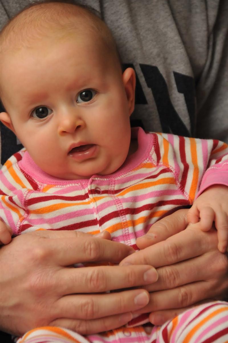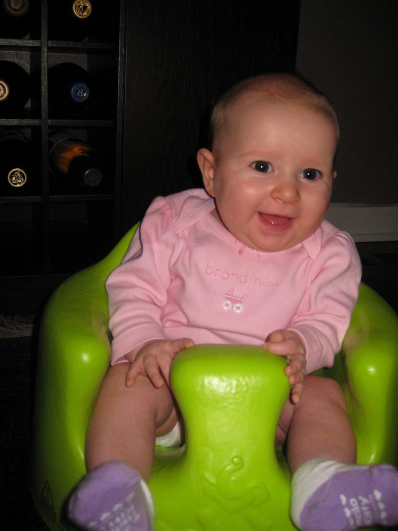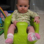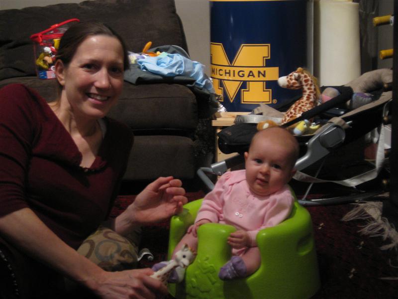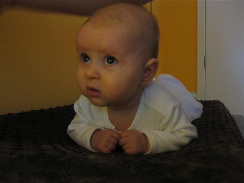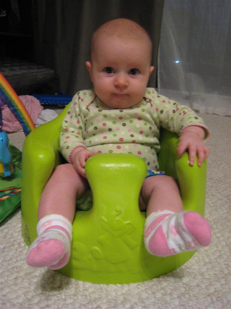 Ellie’s had a fun week getting better at her “tummy time”, and sitting in her Bumpo chair. A new napping schedule has allowed for more walks in the neighborhood, but has been a little hard to get adjusted to. Just tonight, she went down for her afternoon “nap” at 4:00 and hasn’t woken up yet! Hopefully that doesn’t mean we will be wide awake at 2:00 AM. Cousin Sarah came over on Saturday and took some great pictures for us. It’s amazing the difference a talenten photographer makes. I’m sure you will be able to pick out her shots from the rest. Enjoy!