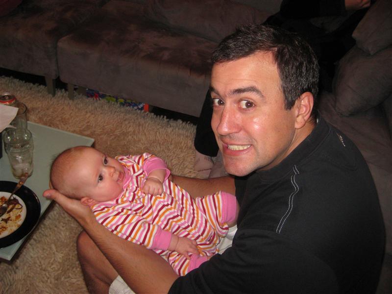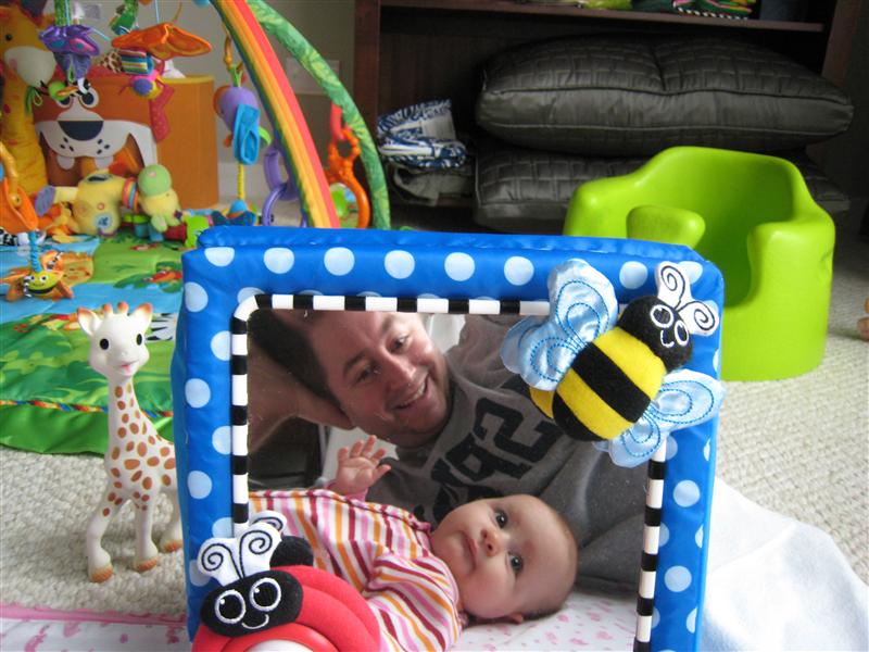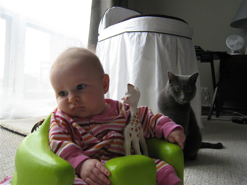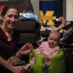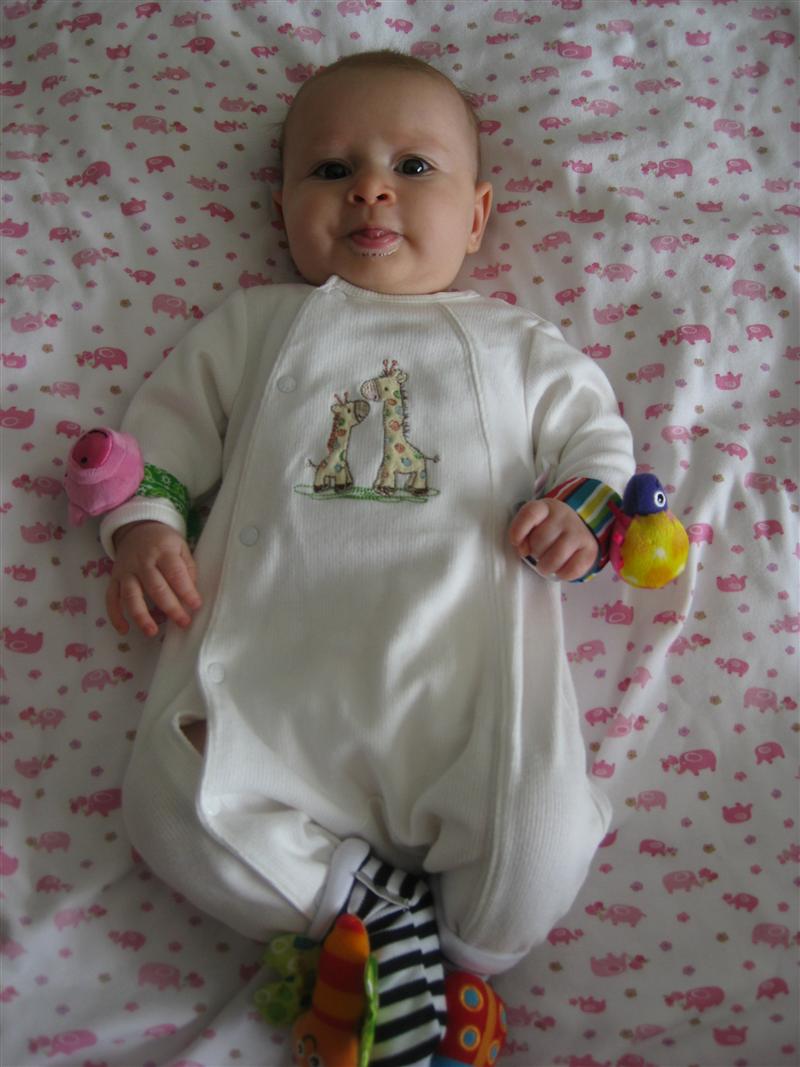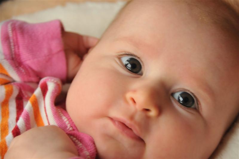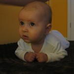 Ellie’s had a fun week getting better at her “tummy time”, and sitting in her Bumpo chair. A new napping schedule has allowed for more walks in the neighborhood, but has been a little hard to get adjusted to. Just tonight, she went down for her afternoon “nap” at 4:00 and hasn’t woken up yet! Hopefully that doesn’t mean we will be wide awake at 2:00 AM. Cousin Sarah came over on Saturday and took some great pictures for us. It’s amazing the difference a talenten photographer makes. I’m sure you will be able to pick out her shots from the rest. Enjoy!