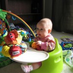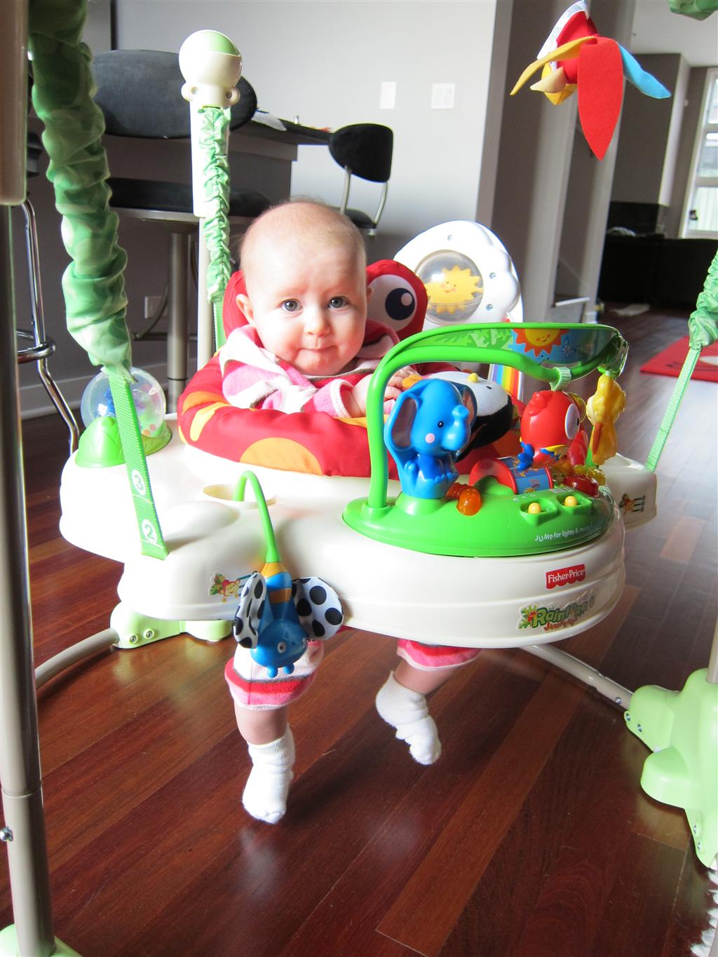 We had a few other firsts this week, including wearing our snow suit, seeing snow and trying out the “Jumparoo”.