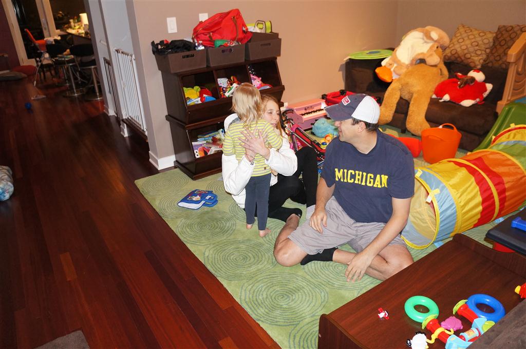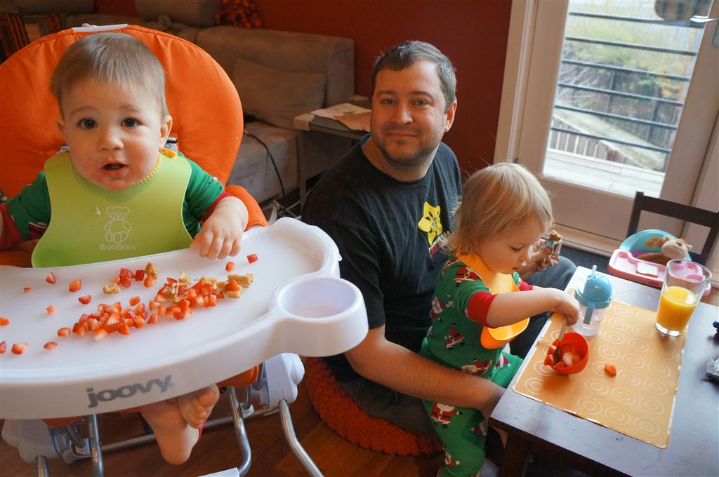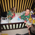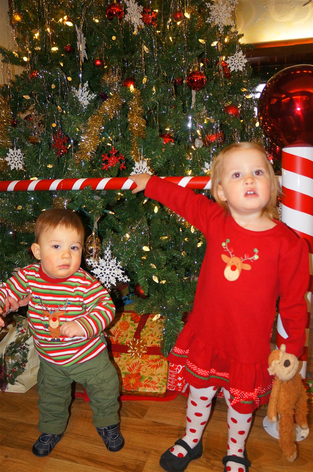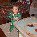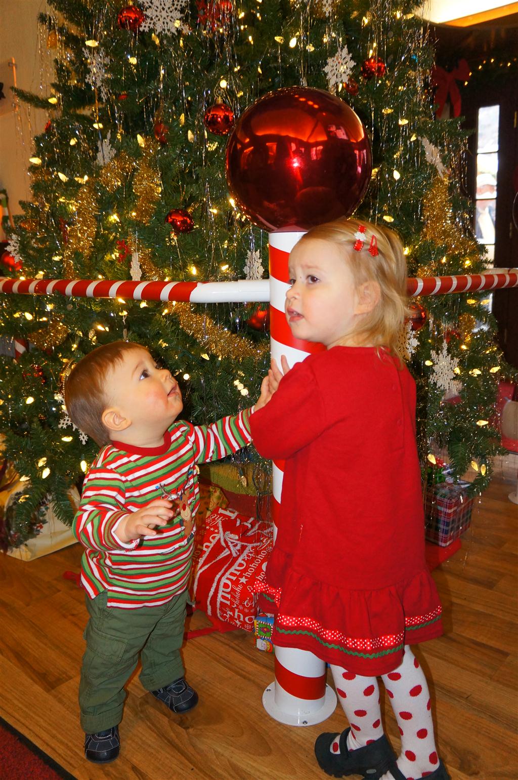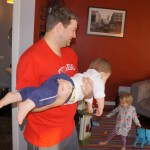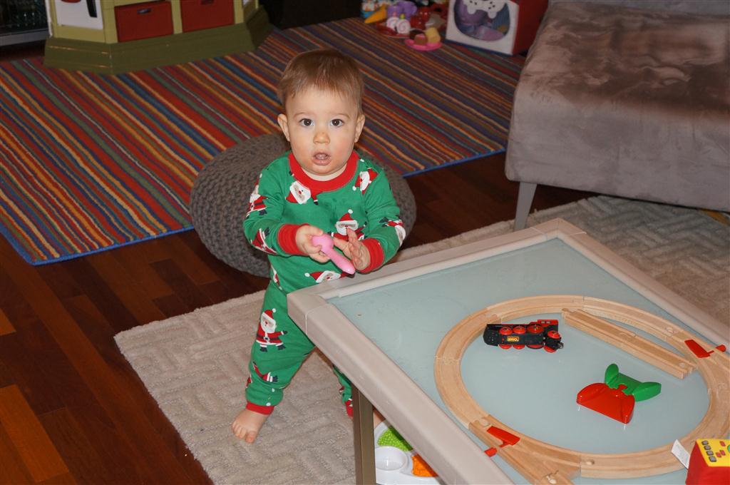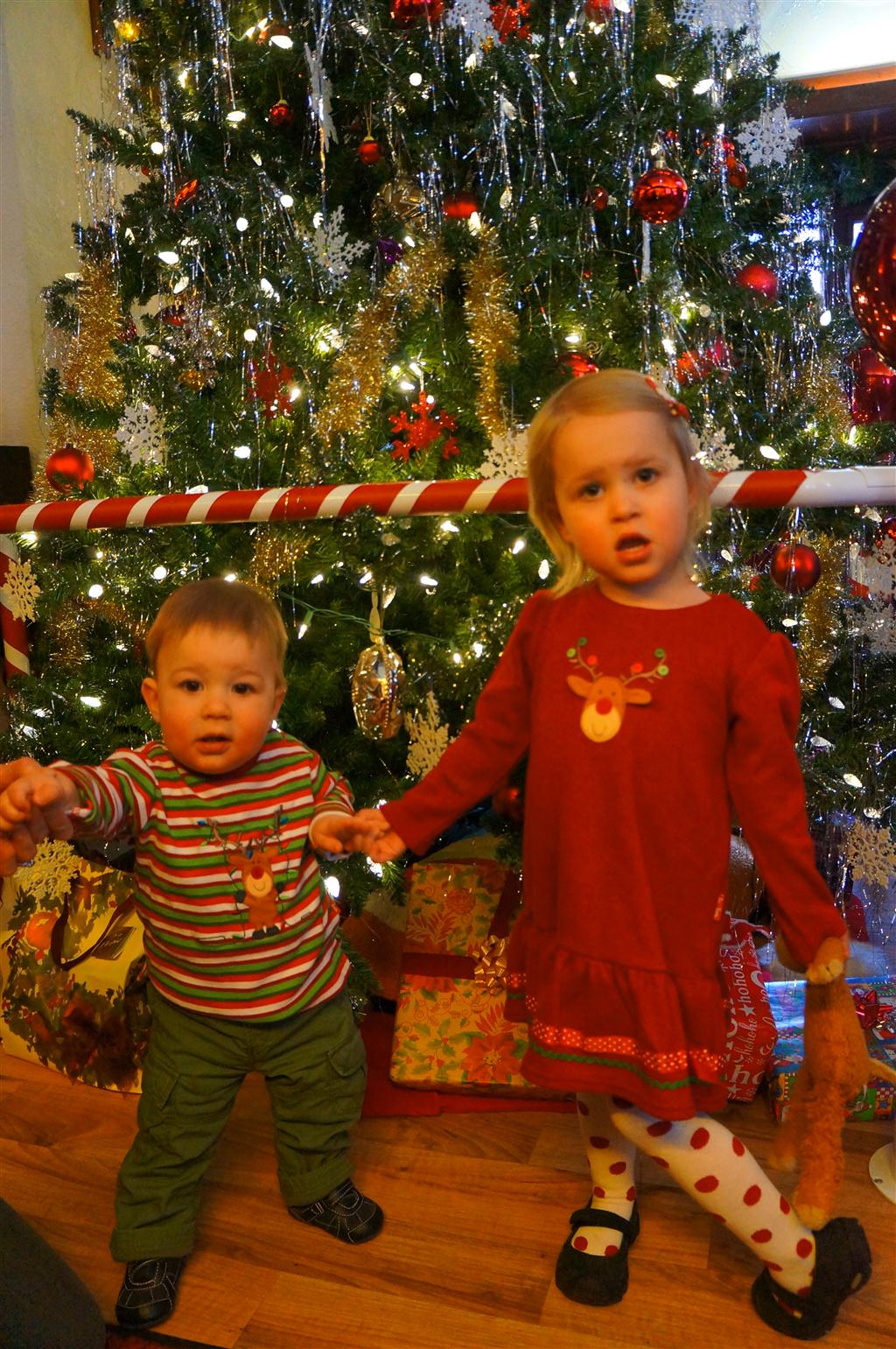 Happy December! It was a busy week for Eleanor and Henry – they started out with Eleanor’s first soccer practice – aptly named “Little Kickers”. I asked Eleanor how it went, and she told me that she sat on a ball. Hopefully they progress to kicking the ball at some point :) On Thursday night Eleanor and Henry got dressed up in their Santa pajamas in preparation for a visit on Friday. Despite lots of discussions about sitting on Santa’s lap for a photo, and how much fun it would be, Eleanor burst into tears as we put her on Santa’s lap. I’m pretty sure Grandma has almost the exact same picture featuring Santa and Auntie Susan. Uncle B and Breanne came over for a visit on Saturday while Mom was out – giving Dad some much needed help. Eleanor had so much fun playing with them outside that they each got a goodbye fist bump AND a goodbye hug. On Sunday, we put up the Christmas tree. Eleanor and Henry were only mildly impressed, but as usual Zapa was very excited.