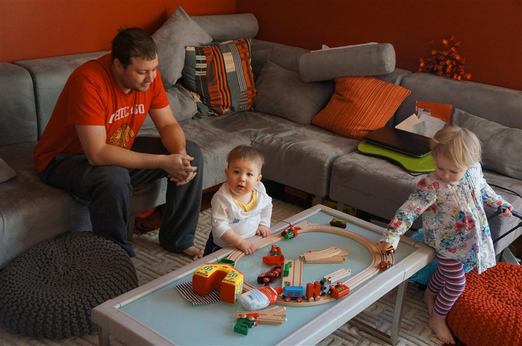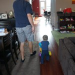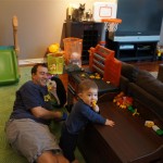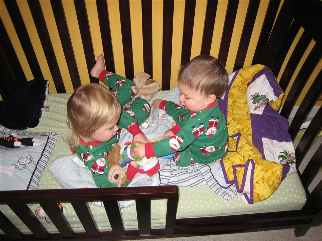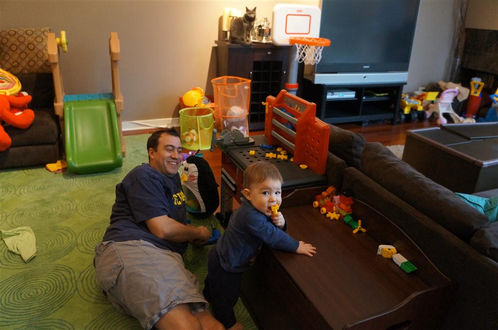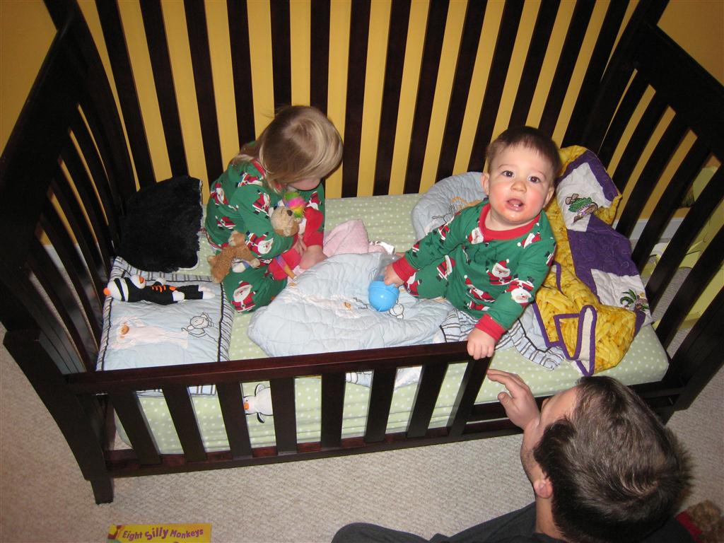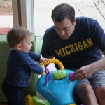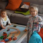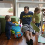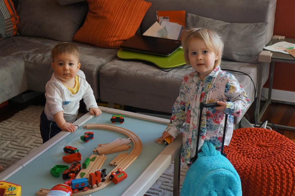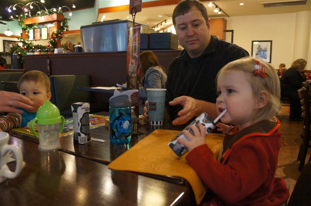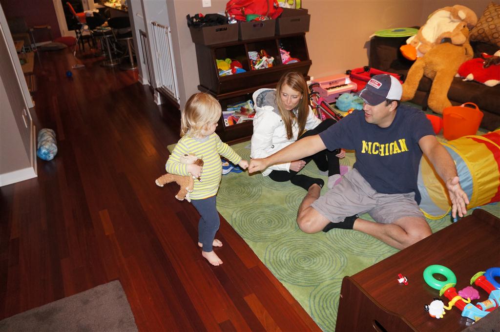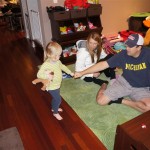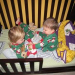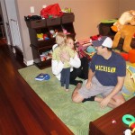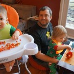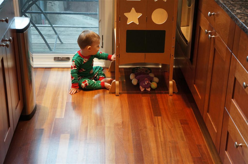 Happy December! It was a busy week for Eleanor and Henry – they started out with Eleanor’s first soccer practice – aptly named “Little Kickers”. I asked Eleanor how it went, and she told me that she sat on a ball. Hopefully they progress to kicking the ball at some point :) On Thursday night Eleanor and Henry got dressed up in their Santa pajamas in preparation for a visit on Friday. Despite lots of discussions about sitting on Santa’s lap for a photo, and how much fun it would be, Eleanor burst into tears as we put her on Santa’s lap. I’m pretty sure Grandma has almost the exact same picture featuring Santa and Auntie Susan. Uncle B and Breanne came over for a visit on Saturday while Mom was out – giving Dad some much needed help. Eleanor had so much fun playing with them outside that they each got a goodbye fist bump AND a goodbye hug. On Sunday, we put up the Christmas tree. Eleanor and Henry were only mildly impressed, but as usual Zapa was very excited.
