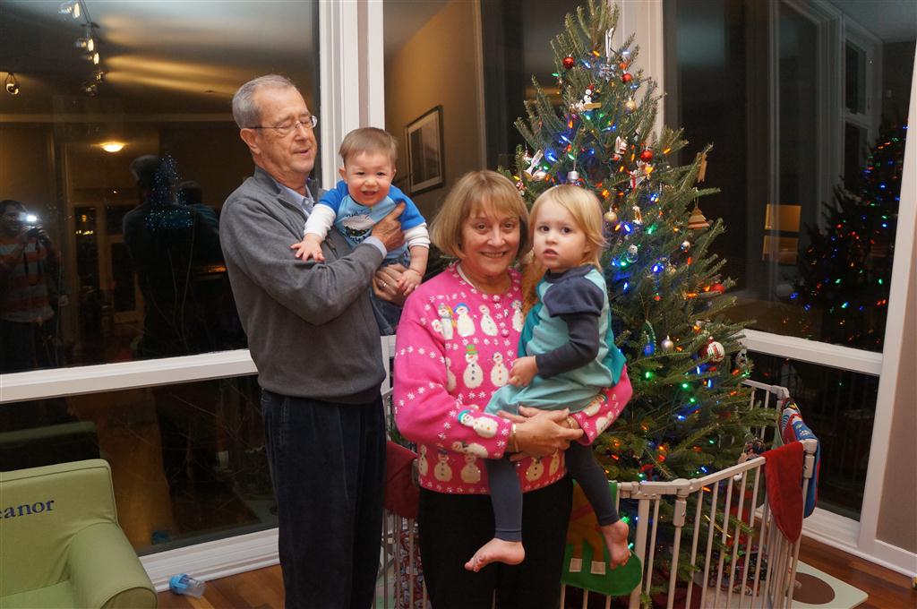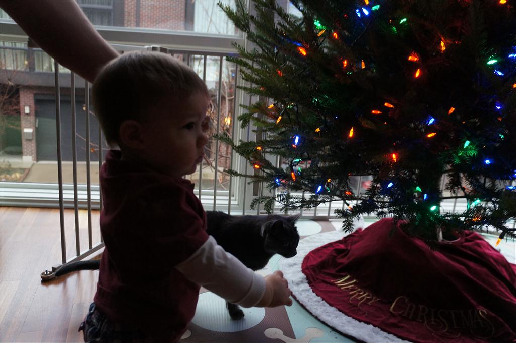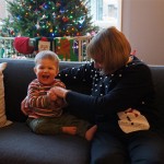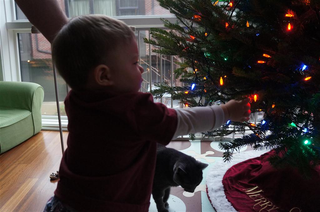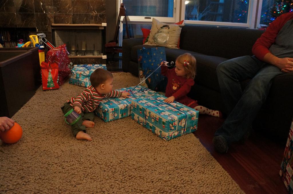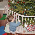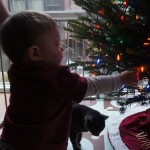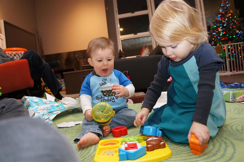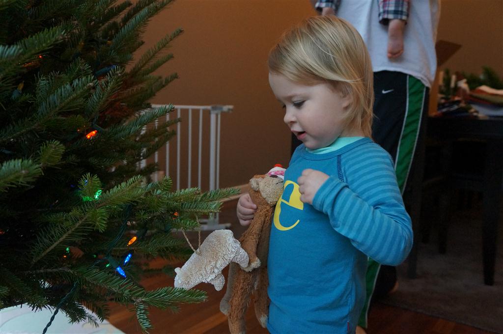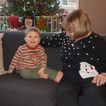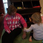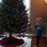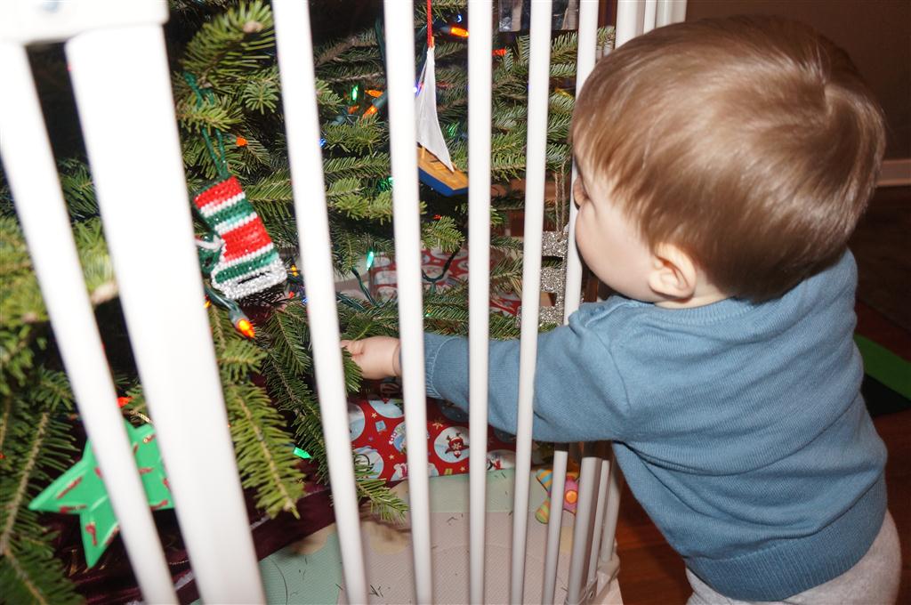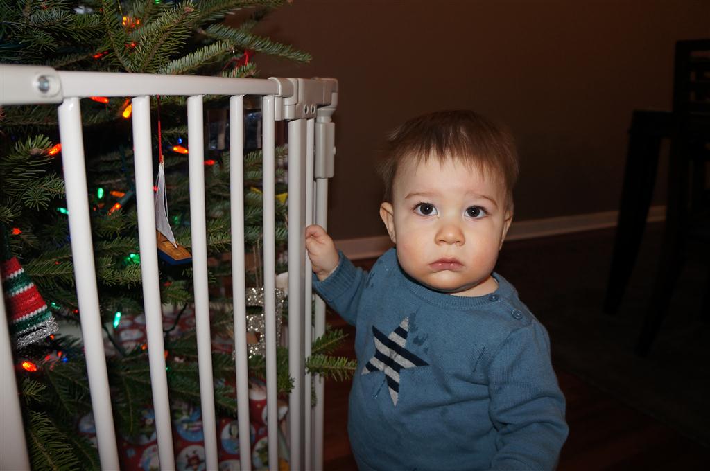 Eleanor and Henry celebrated and early Christmas with Grandma and Grandpa this week. We also put up our Christmas tree, and Eleanor put a few ornaments on the tree herself. She was very excited about the whole process, and reminds us each morning to turn on the lights on the tree. We figured we would outsmart Henry and leave the play yard gate up around the tree, but he could reach the tree right through it and had some fun taking the lights back off the tree. We also celebrated an early birthday for Henry while Grandma and Grandpa were in town. Henry was interested in the icing from his cupcake for a bit, but wasn’t interested in the actual cake. Eleanor was very interested in eating her cupcake and sharing an Oreo with Grandma :)