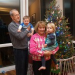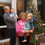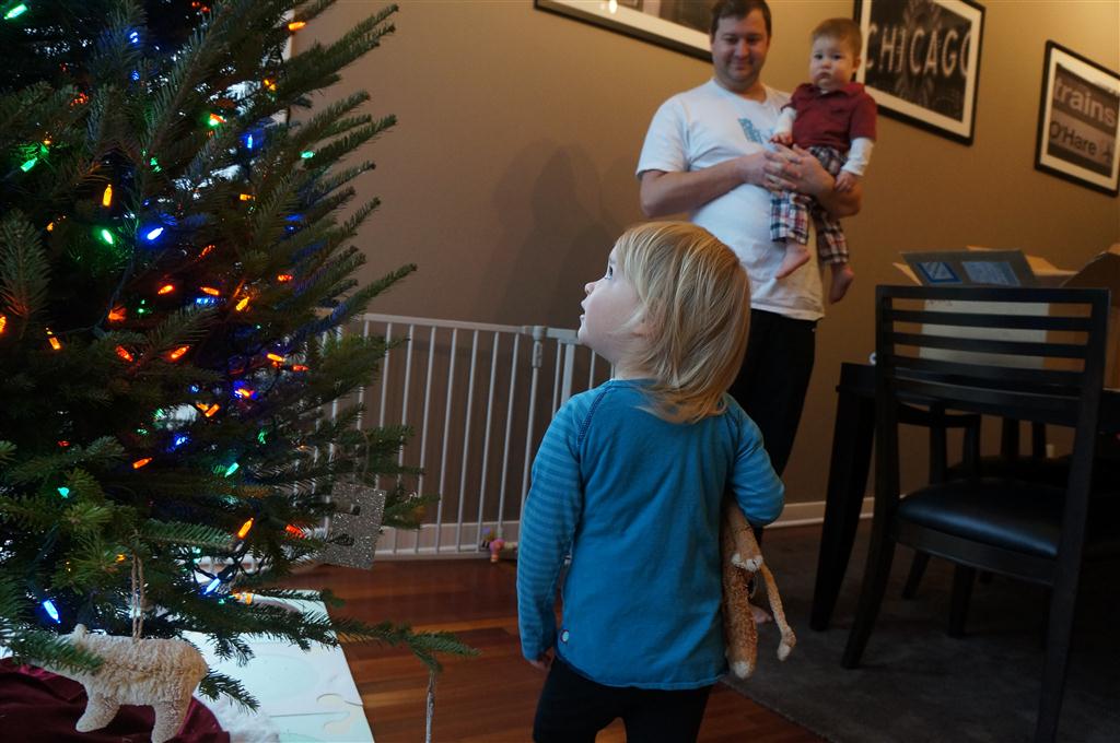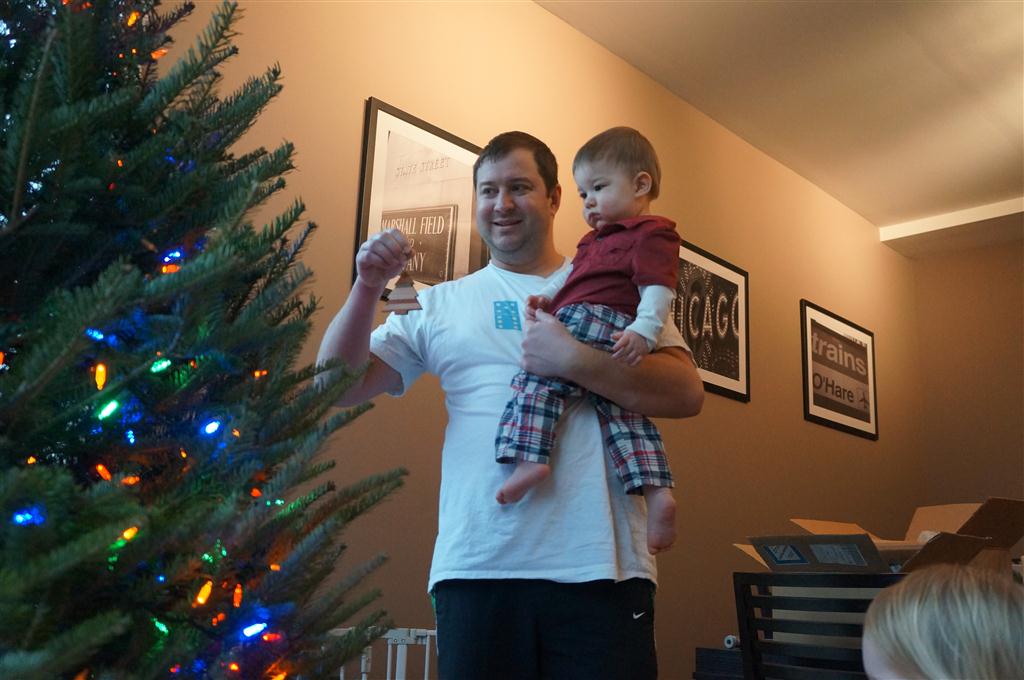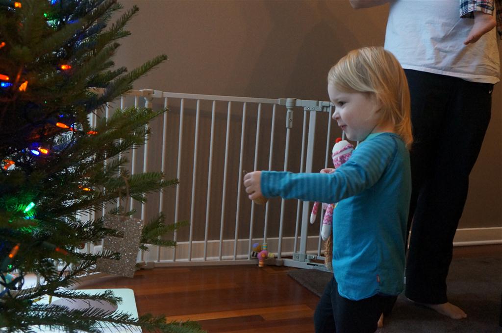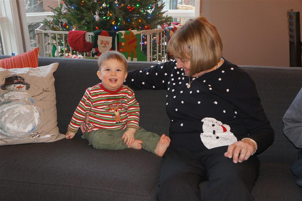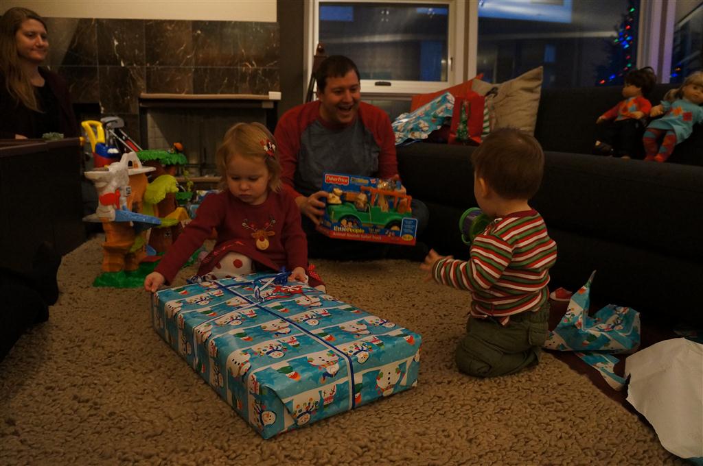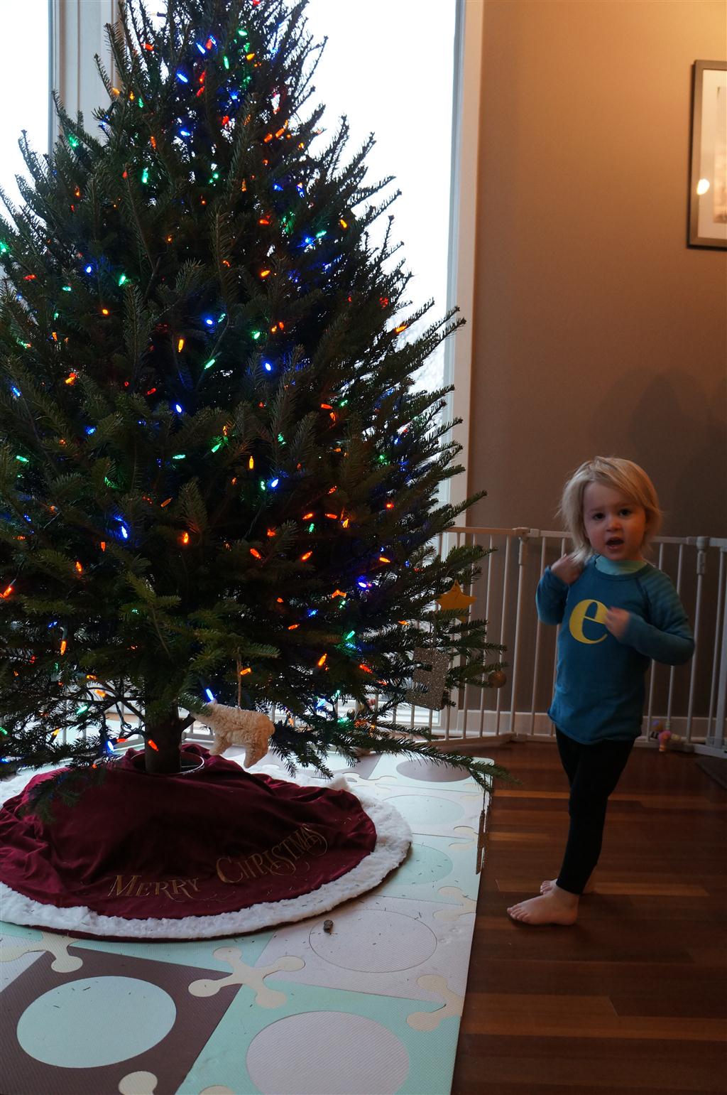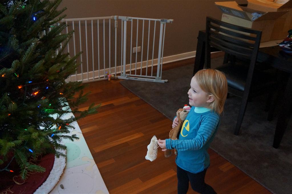 Eleanor and Henry celebrated and early Christmas with Grandma and Grandpa this week. We also put up our Christmas tree, and Eleanor put a few ornaments on the tree herself. She was very excited about the whole process, and reminds us each morning to turn on the lights on the tree. We figured we would outsmart Henry and leave the play yard gate up around the tree, but he could reach the tree right through it and had some fun taking the lights back off the tree. We also celebrated an early birthday for Henry while Grandma and Grandpa were in town. Henry was interested in the icing from his cupcake for a bit, but wasn’t interested in the actual cake. Eleanor was very interested in eating her cupcake and sharing an Oreo with Grandma :)