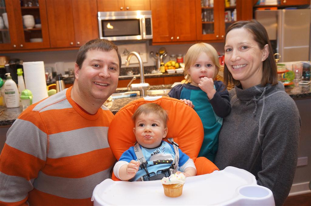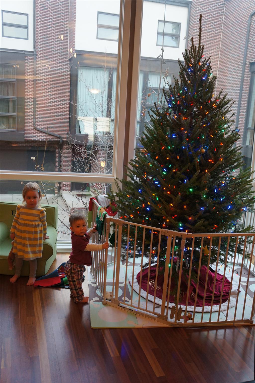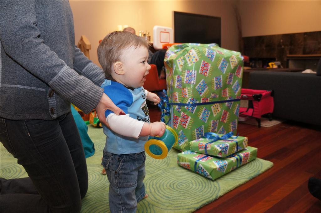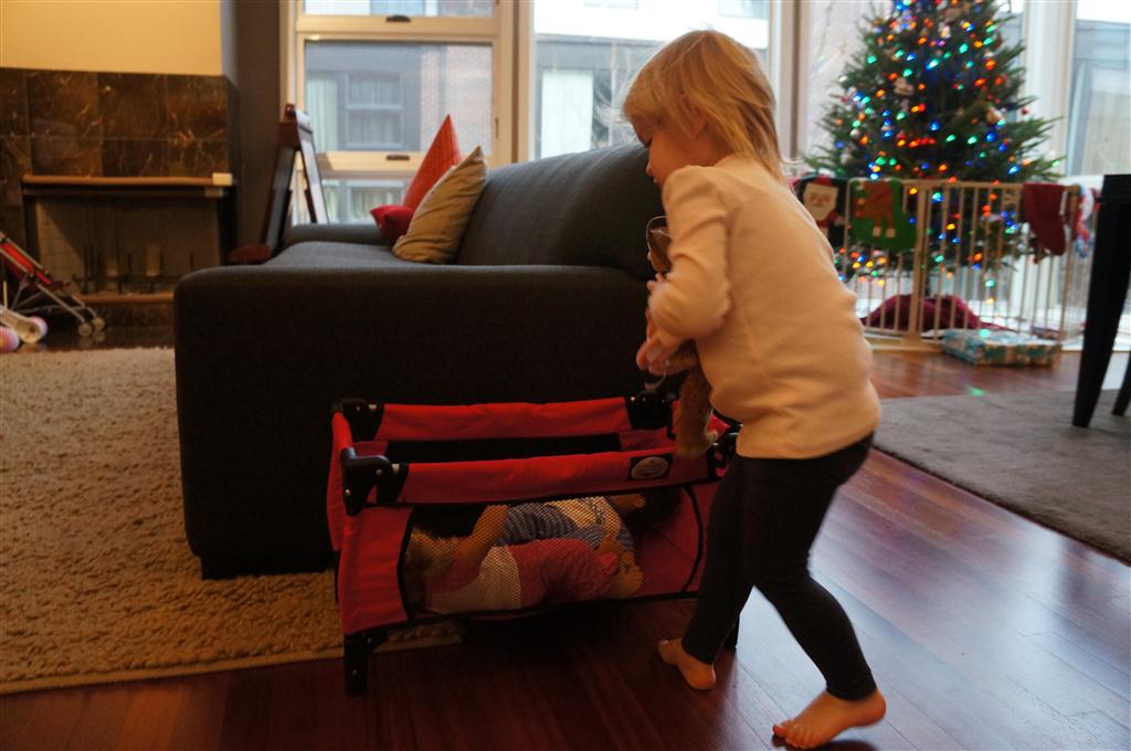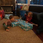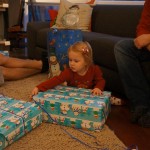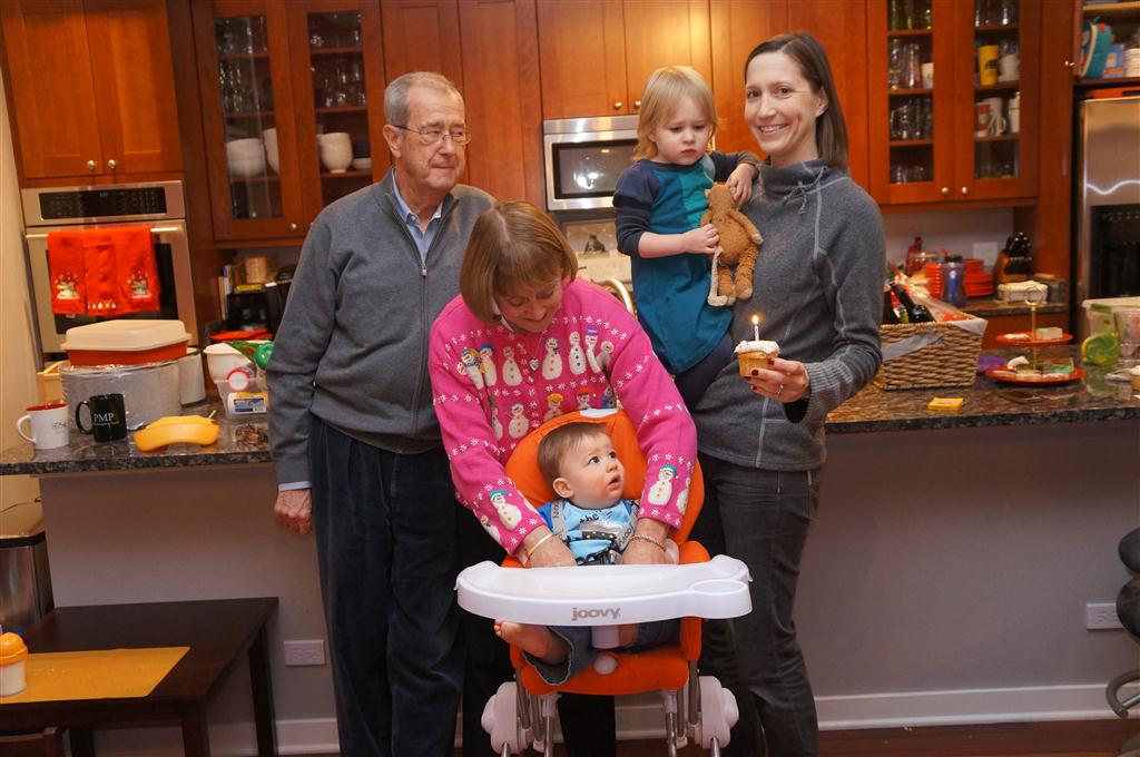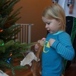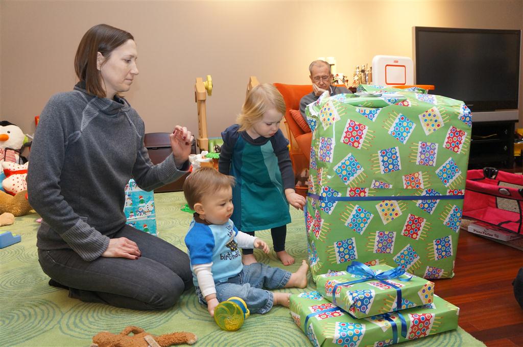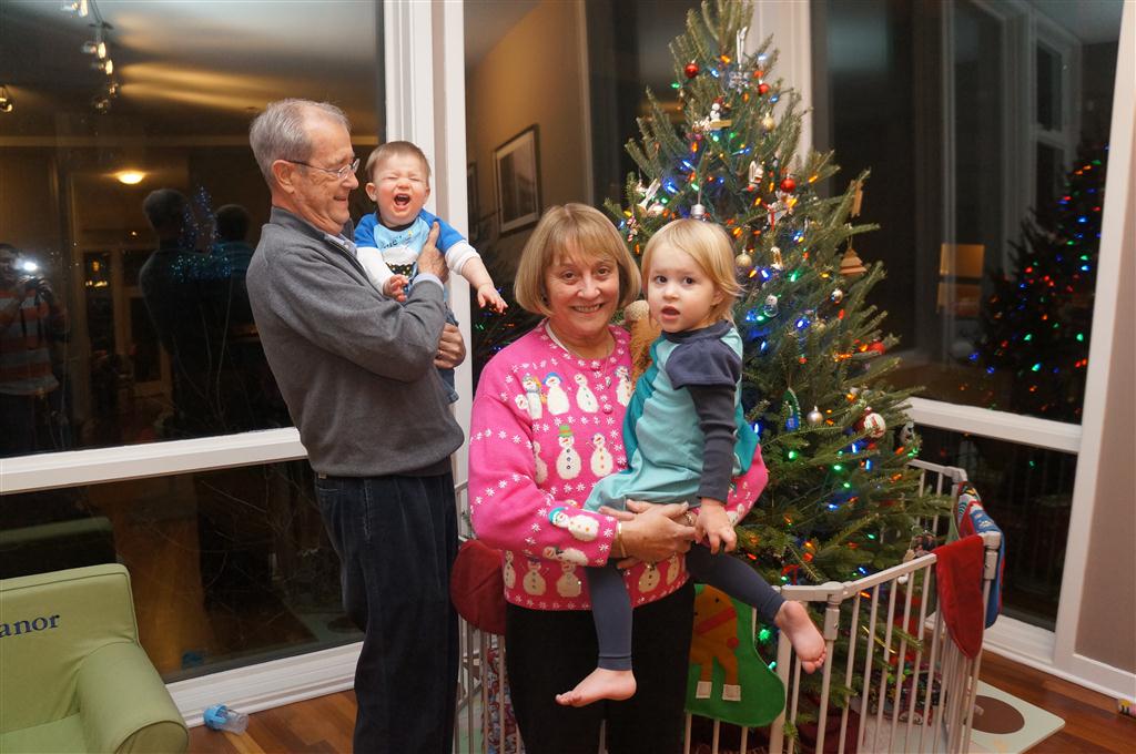 Eleanor and Henry celebrated and early Christmas with Grandma and Grandpa this week. We also put up our Christmas tree, and Eleanor put a few ornaments on the tree herself. She was very excited about the whole process, and reminds us each morning to turn on the lights on the tree. We figured we would outsmart Henry and leave the play yard gate up around the tree, but he could reach the tree right through it and had some fun taking the lights back off the tree. We also celebrated an early birthday for Henry while Grandma and Grandpa were in town. Henry was interested in the icing from his cupcake for a bit, but wasn’t interested in the actual cake. Eleanor was very interested in eating her cupcake and sharing an Oreo with Grandma :)