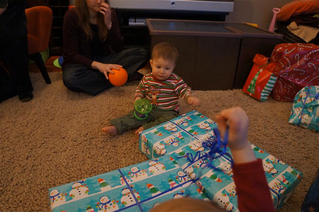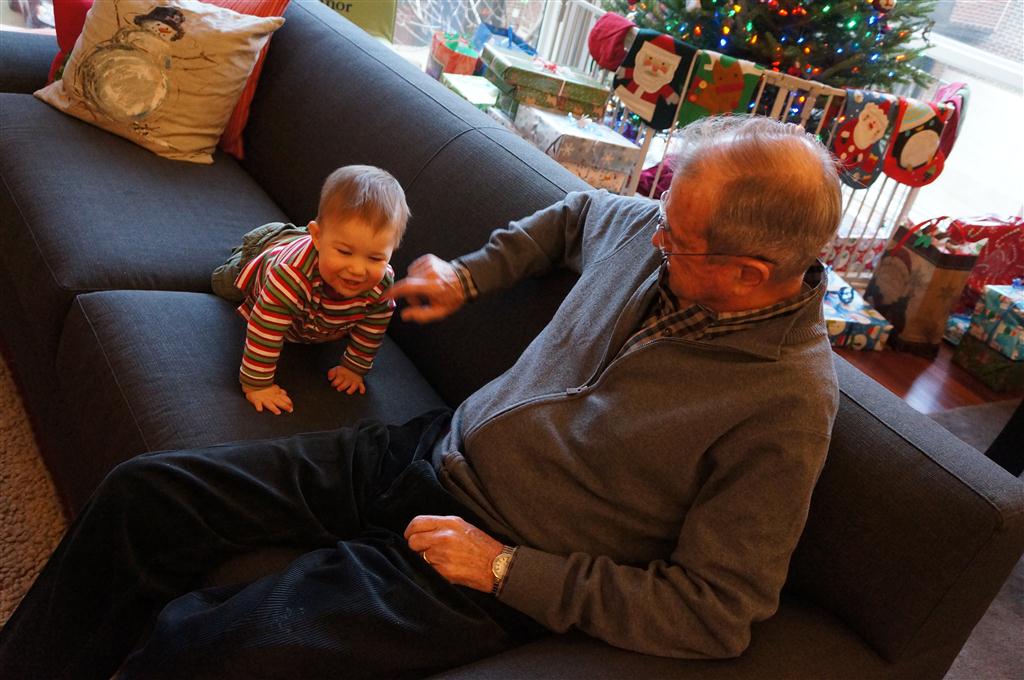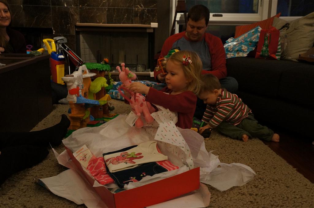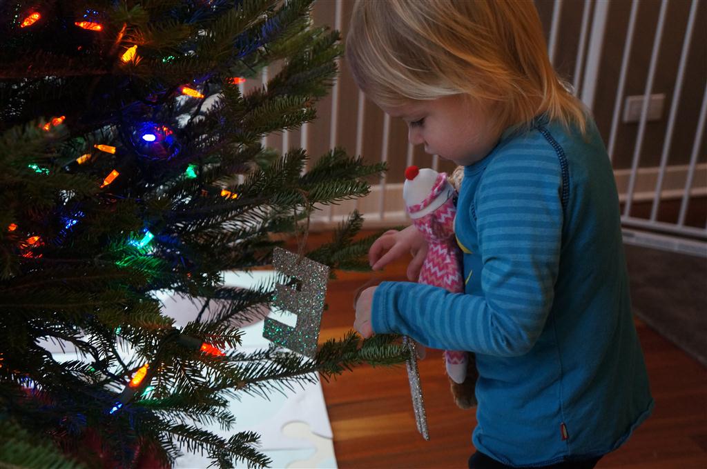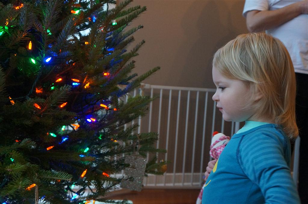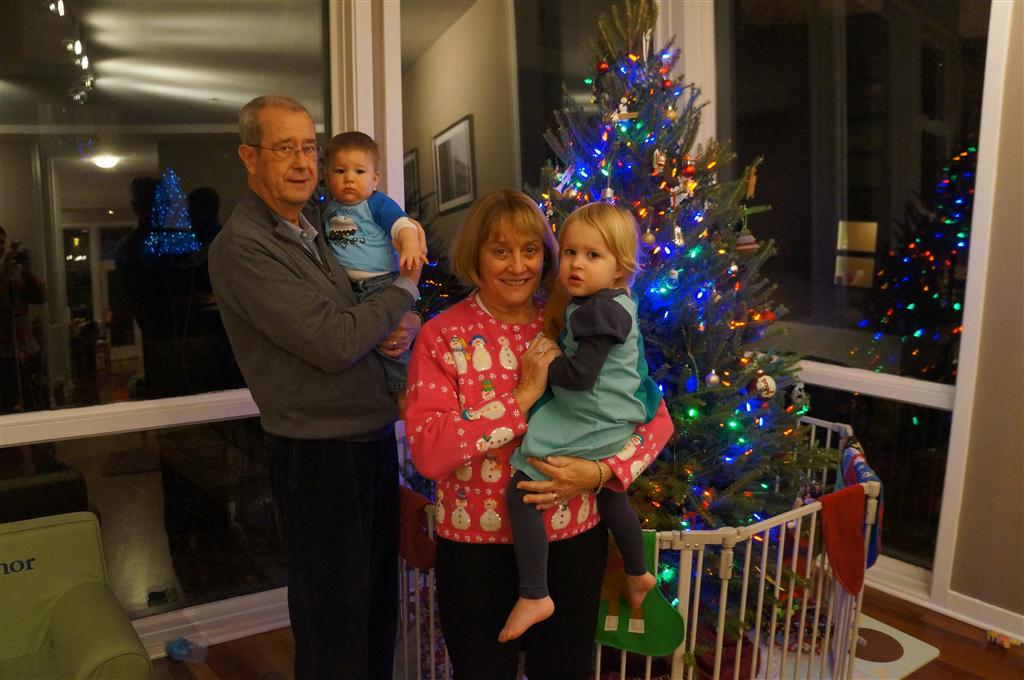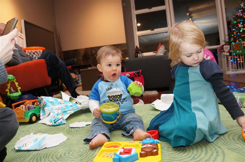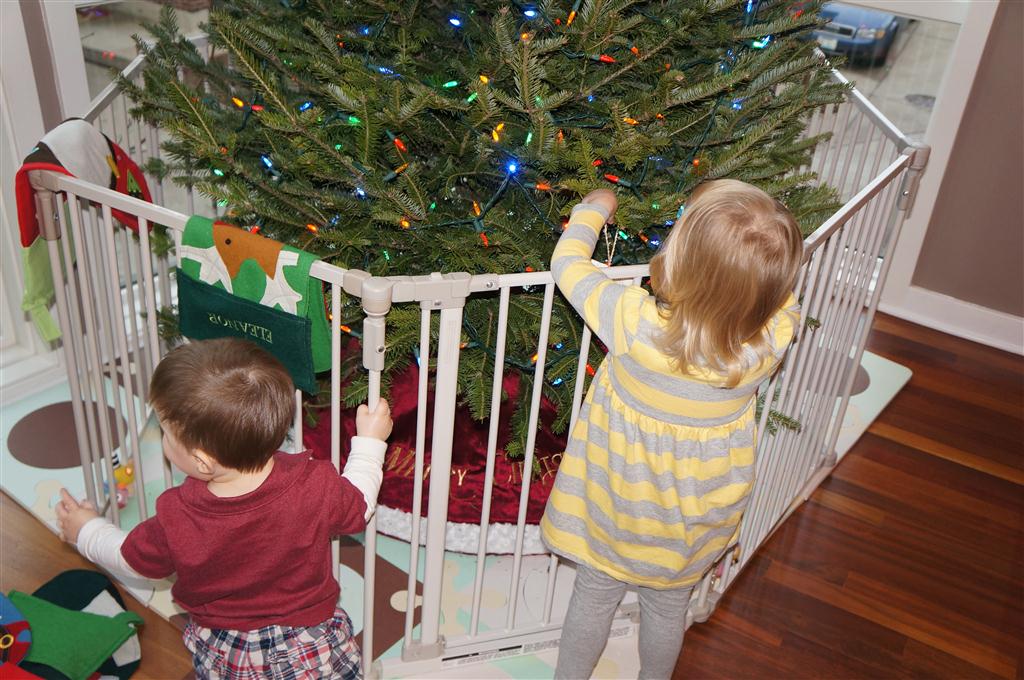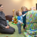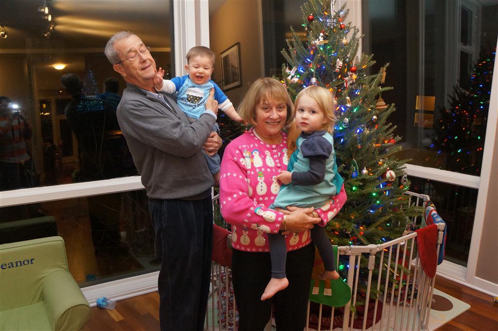 Eleanor and Henry celebrated and early Christmas with Grandma and Grandpa this week. We also put up our Christmas tree, and Eleanor put a few ornaments on the tree herself. She was very excited about the whole process, and reminds us each morning to turn on the lights on the tree. We figured we would outsmart Henry and leave the play yard gate up around the tree, but he could reach the tree right through it and had some fun taking the lights back off the tree. We also celebrated an early birthday for Henry while Grandma and Grandpa were in town. Henry was interested in the icing from his cupcake for a bit, but wasn’t interested in the actual cake. Eleanor was very interested in eating her cupcake and sharing an Oreo with Grandma :)