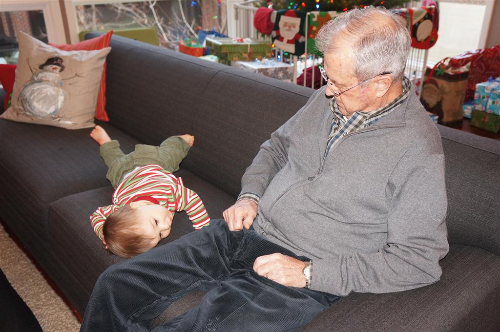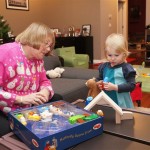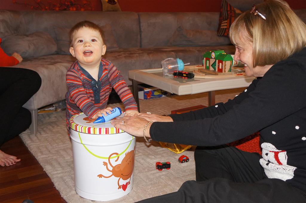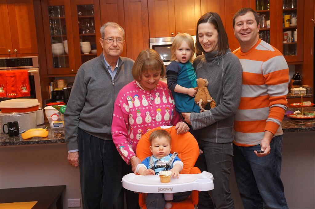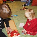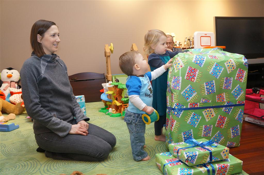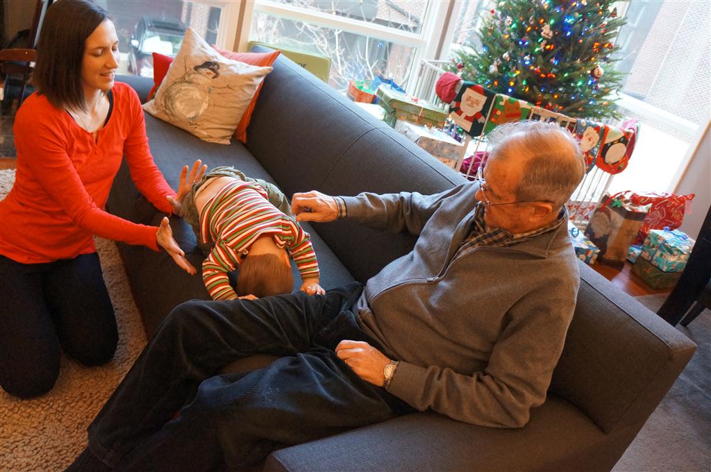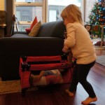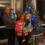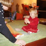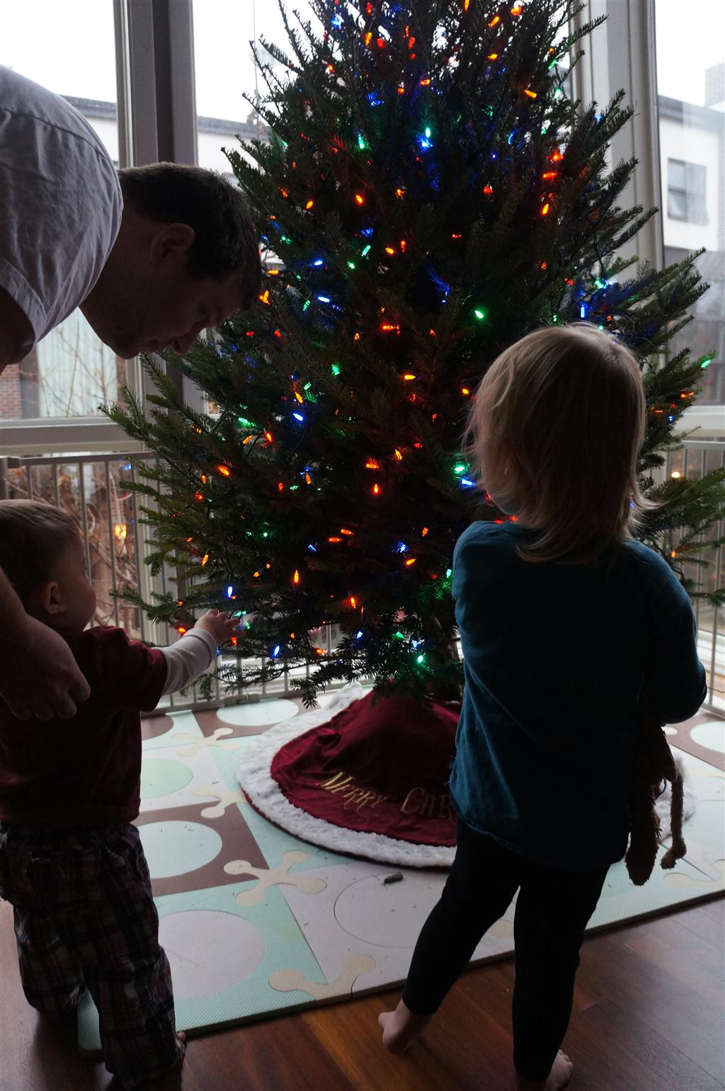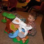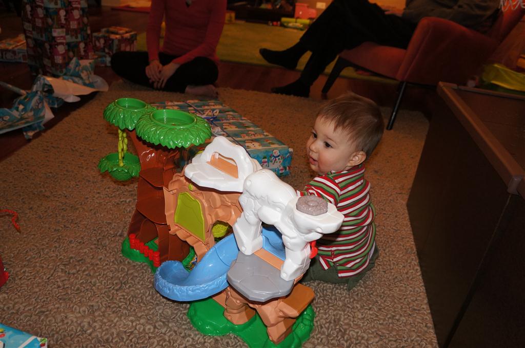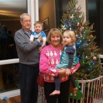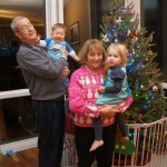 Eleanor and Henry celebrated and early Christmas with Grandma and Grandpa this week. We also put up our Christmas tree, and Eleanor put a few ornaments on the tree herself. She was very excited about the whole process, and reminds us each morning to turn on the lights on the tree. We figured we would outsmart Henry and leave the play yard gate up around the tree, but he could reach the tree right through it and had some fun taking the lights back off the tree. We also celebrated an early birthday for Henry while Grandma and Grandpa were in town. Henry was interested in the icing from his cupcake for a bit, but wasn’t interested in the actual cake. Eleanor was very interested in eating her cupcake and sharing an Oreo with Grandma :)