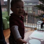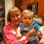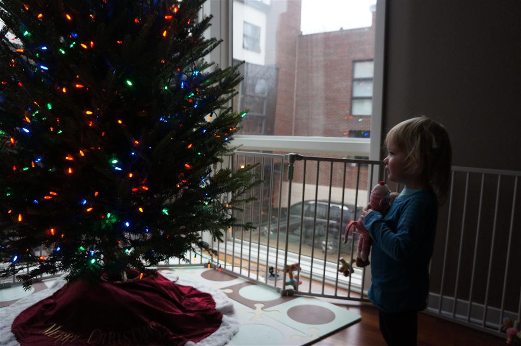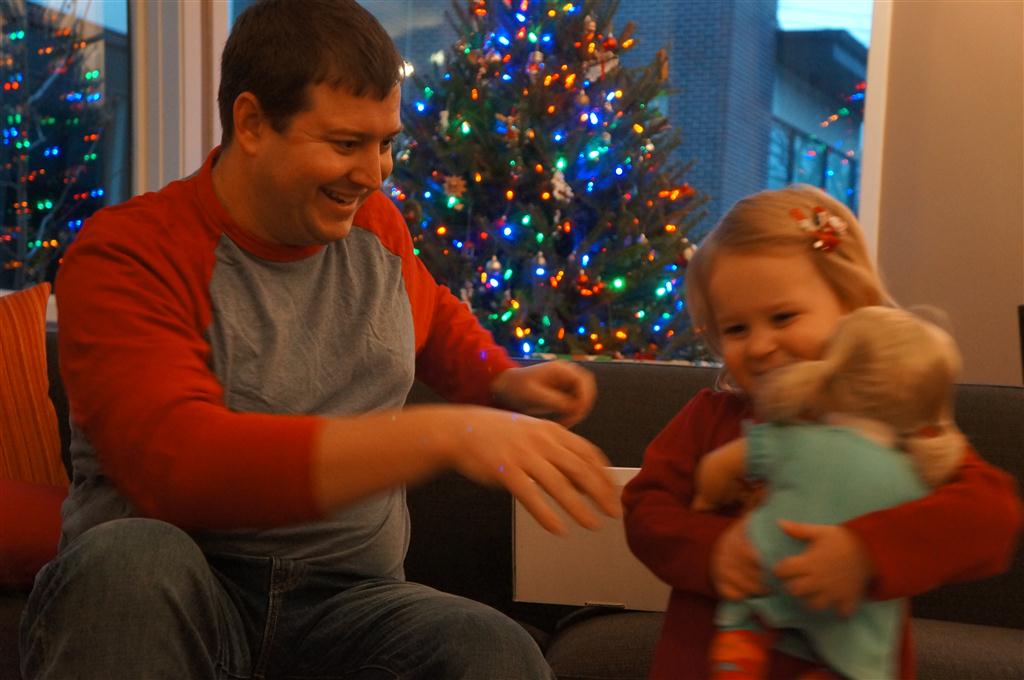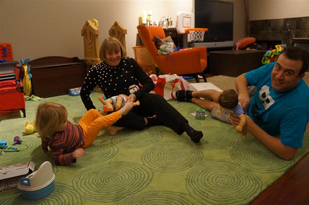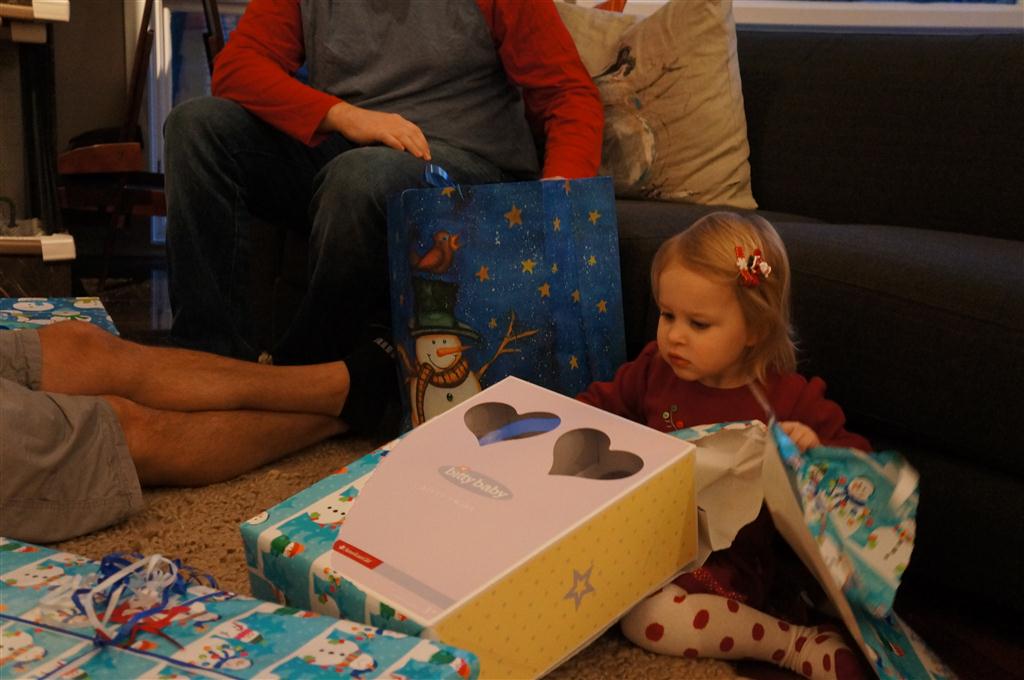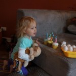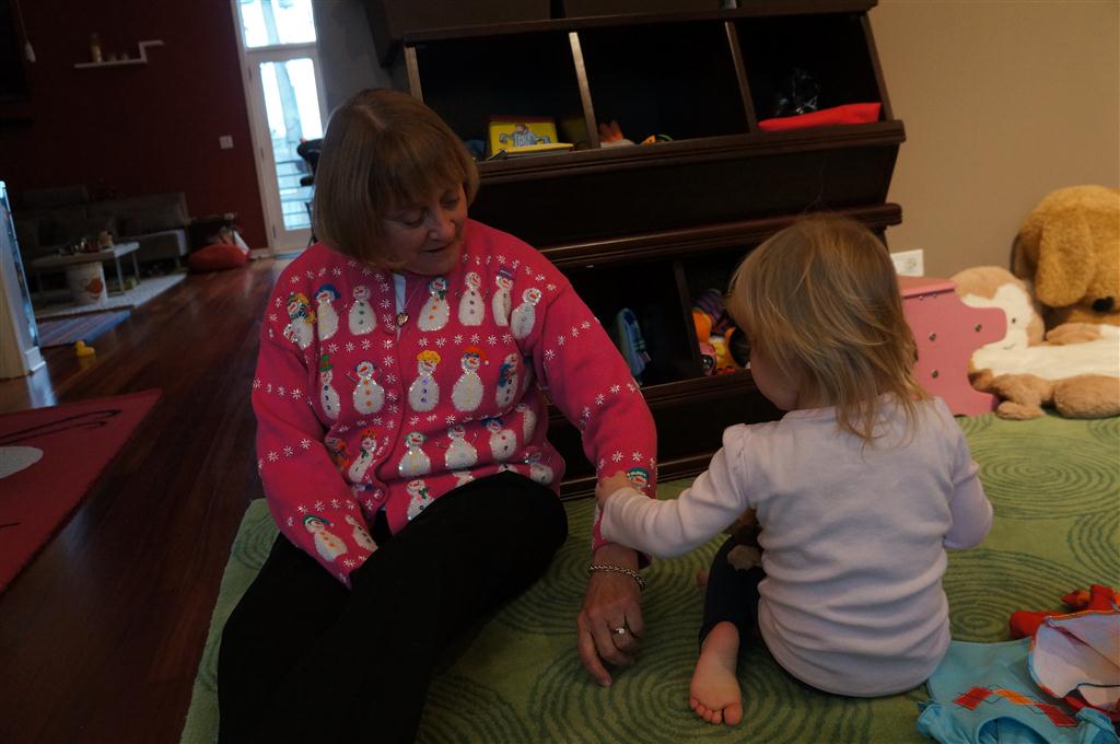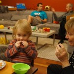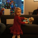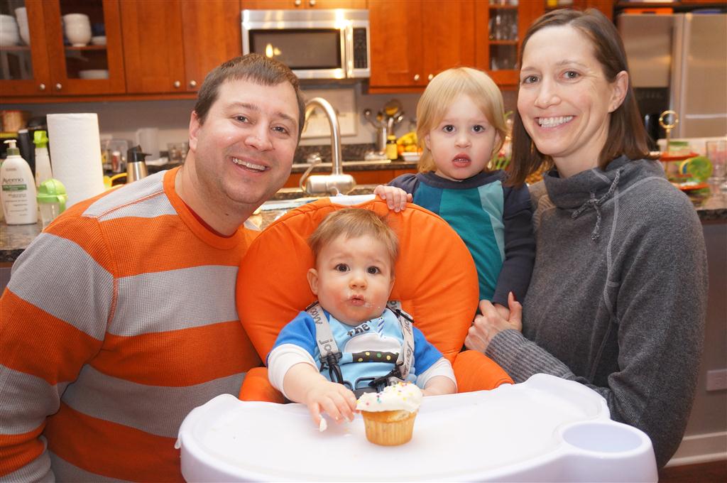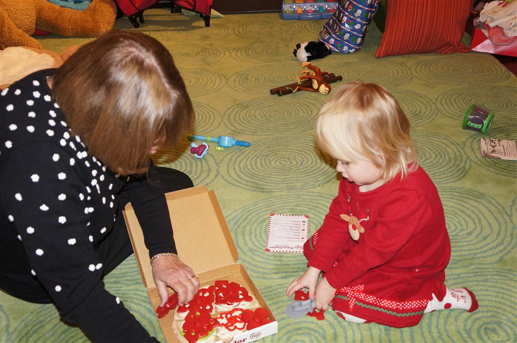 Eleanor and Henry celebrated and early Christmas with Grandma and Grandpa this week. We also put up our Christmas tree, and Eleanor put a few ornaments on the tree herself. She was very excited about the whole process, and reminds us each morning to turn on the lights on the tree. We figured we would outsmart Henry and leave the play yard gate up around the tree, but he could reach the tree right through it and had some fun taking the lights back off the tree. We also celebrated an early birthday for Henry while Grandma and Grandpa were in town. Henry was interested in the icing from his cupcake for a bit, but wasn’t interested in the actual cake. Eleanor was very interested in eating her cupcake and sharing an Oreo with Grandma :)