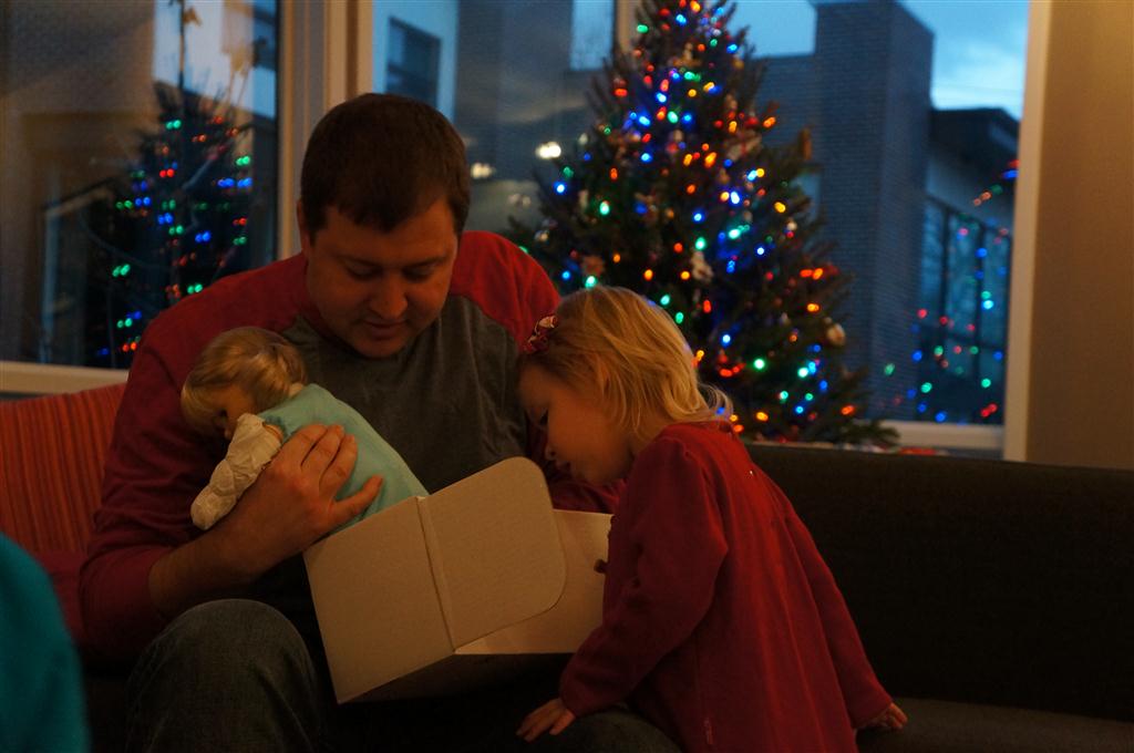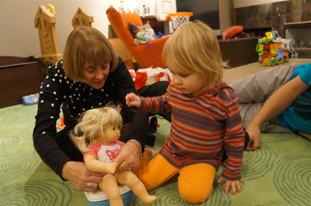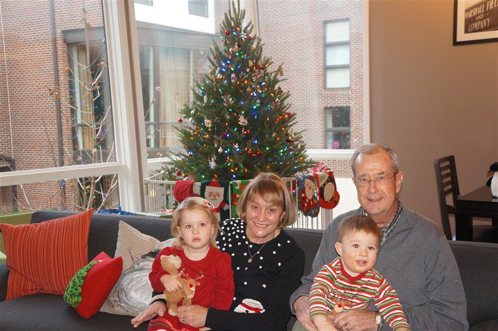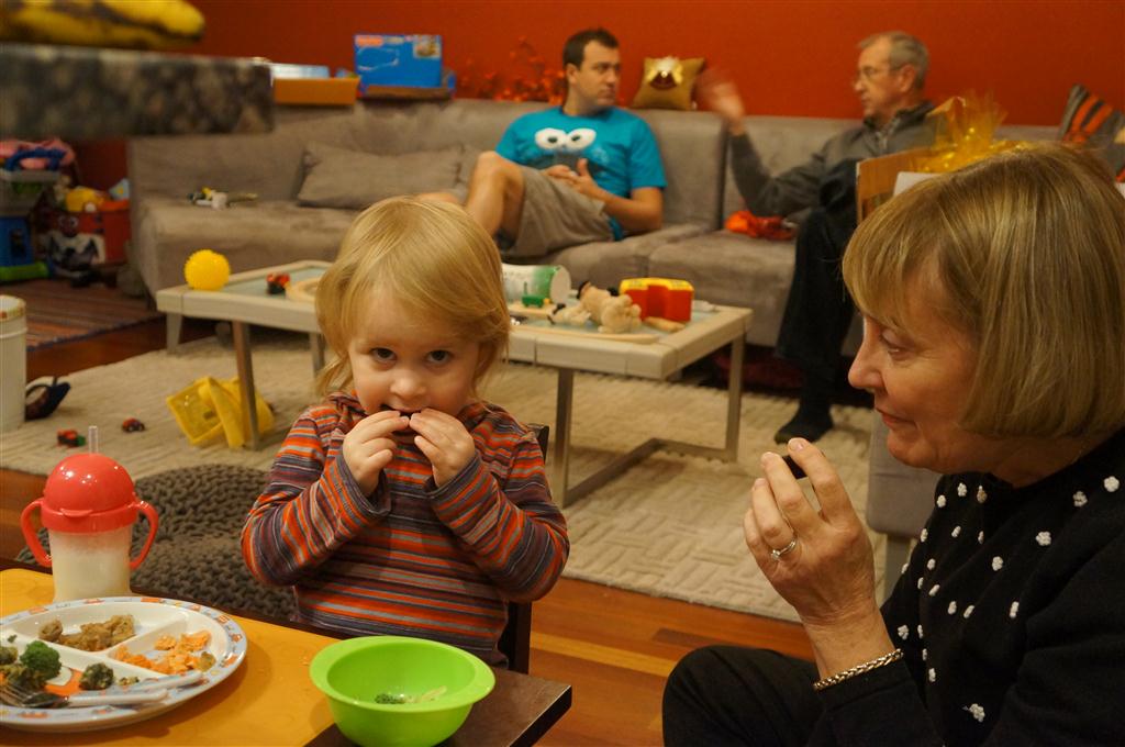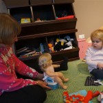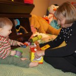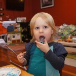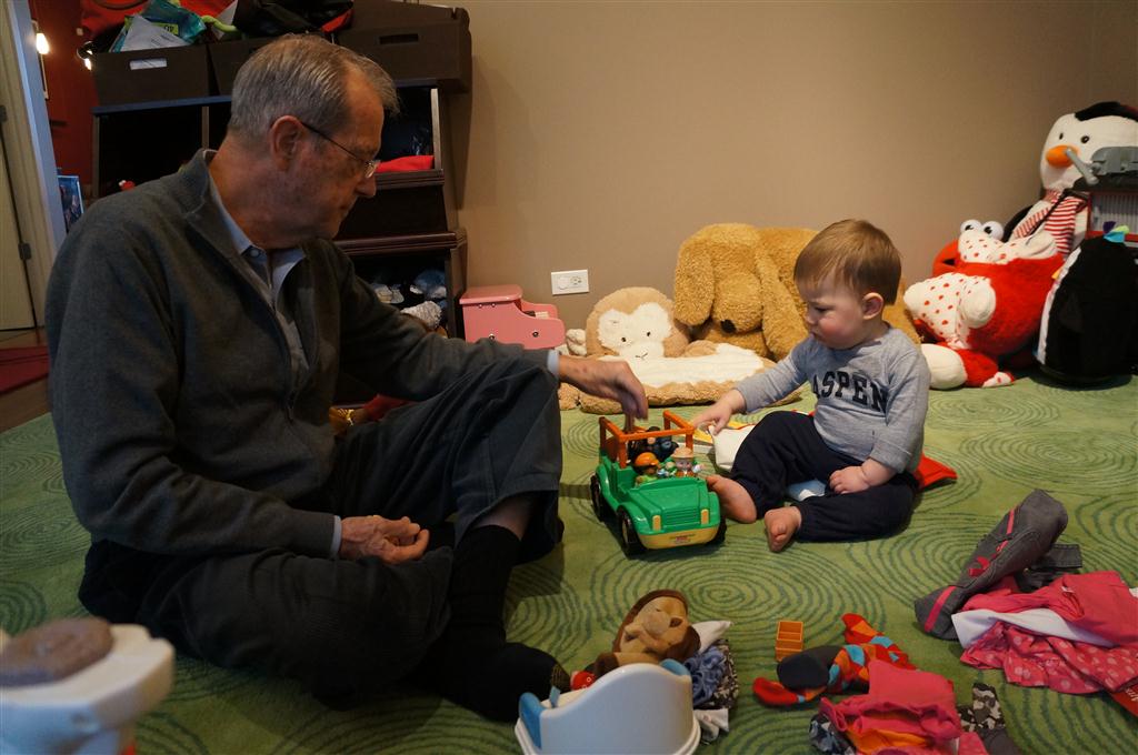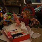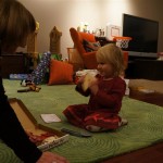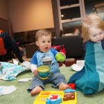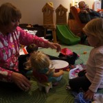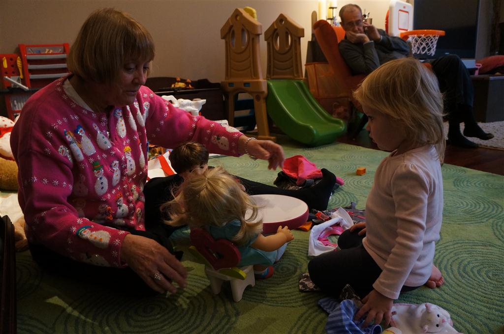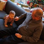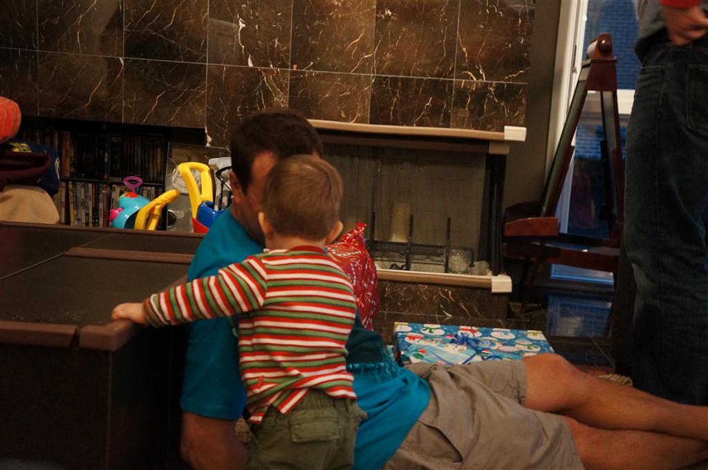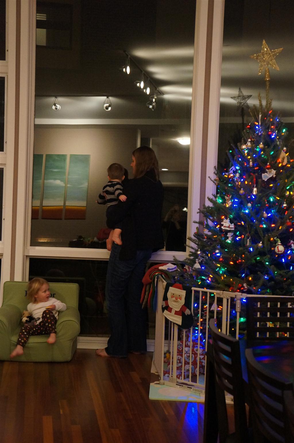 Eleanor and Henry celebrated and early Christmas with Grandma and Grandpa this week. We also put up our Christmas tree, and Eleanor put a few ornaments on the tree herself. She was very excited about the whole process, and reminds us each morning to turn on the lights on the tree. We figured we would outsmart Henry and leave the play yard gate up around the tree, but he could reach the tree right through it and had some fun taking the lights back off the tree. We also celebrated an early birthday for Henry while Grandma and Grandpa were in town. Henry was interested in the icing from his cupcake for a bit, but wasn’t interested in the actual cake. Eleanor was very interested in eating her cupcake and sharing an Oreo with Grandma :)