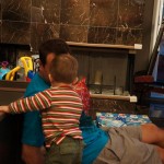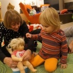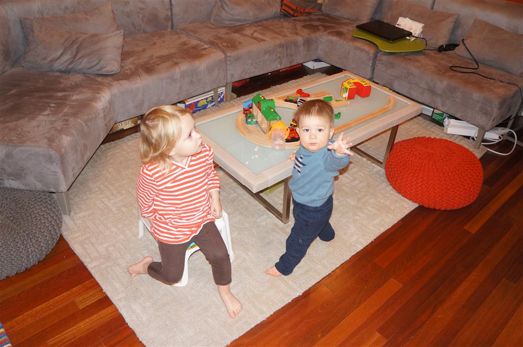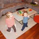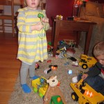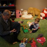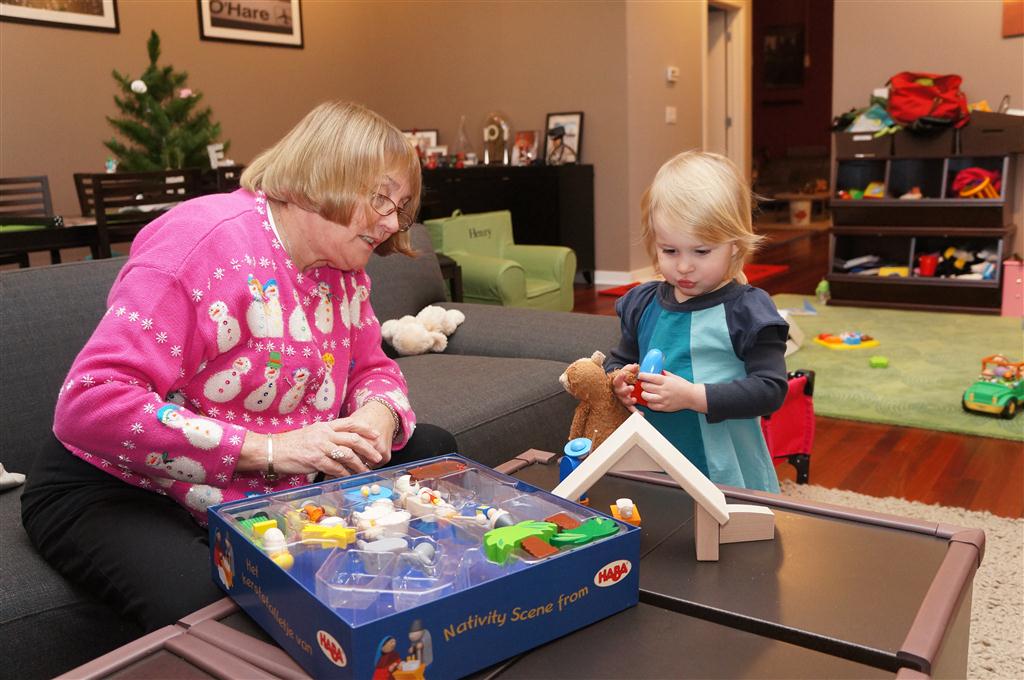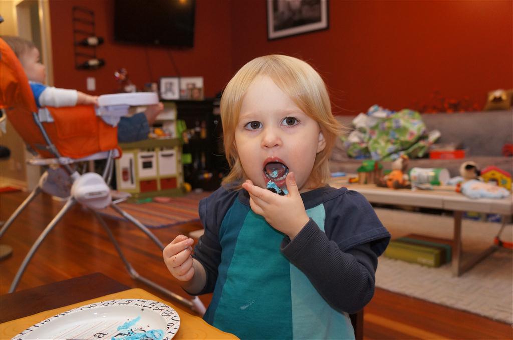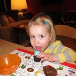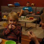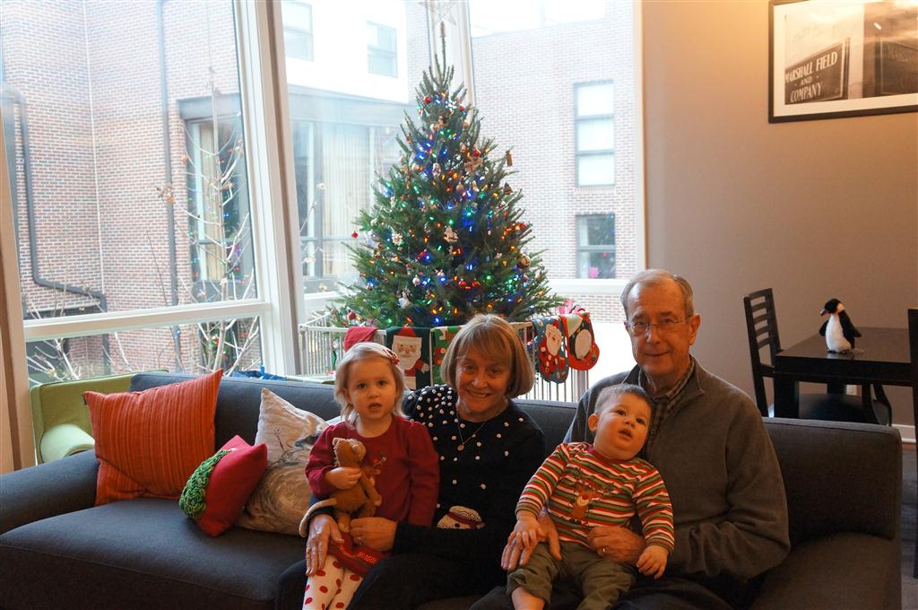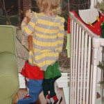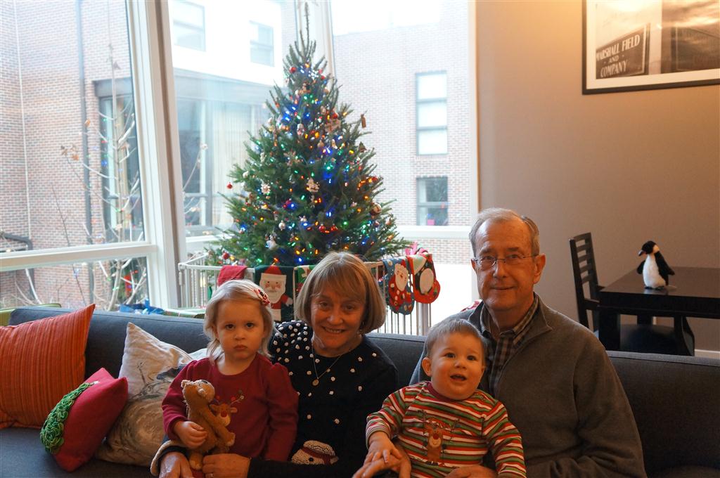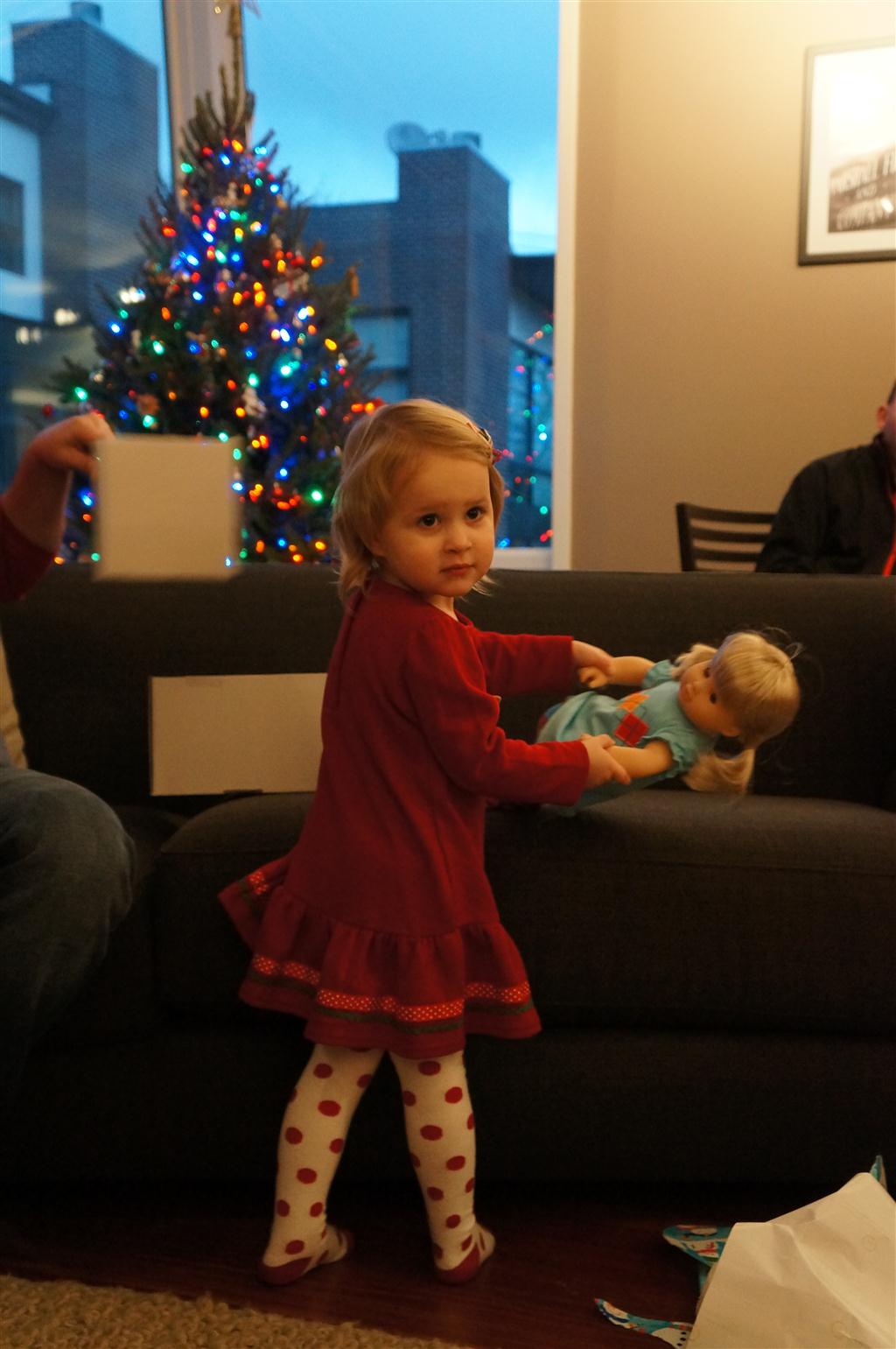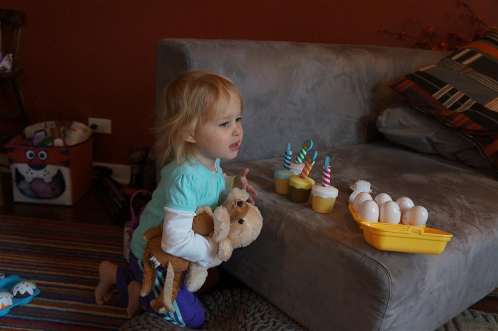 Eleanor and Henry celebrated and early Christmas with Grandma and Grandpa this week. We also put up our Christmas tree, and Eleanor put a few ornaments on the tree herself. She was very excited about the whole process, and reminds us each morning to turn on the lights on the tree. We figured we would outsmart Henry and leave the play yard gate up around the tree, but he could reach the tree right through it and had some fun taking the lights back off the tree. We also celebrated an early birthday for Henry while Grandma and Grandpa were in town. Henry was interested in the icing from his cupcake for a bit, but wasn’t interested in the actual cake. Eleanor was very interested in eating her cupcake and sharing an Oreo with Grandma :)