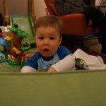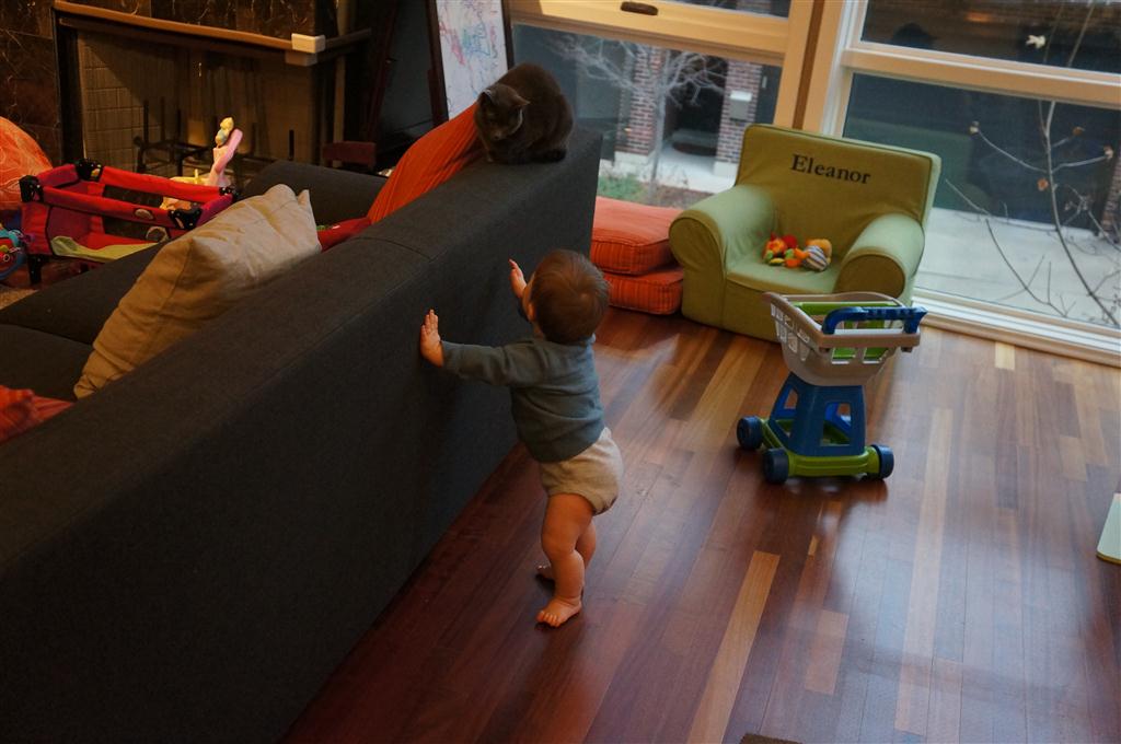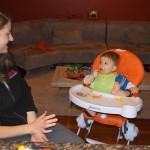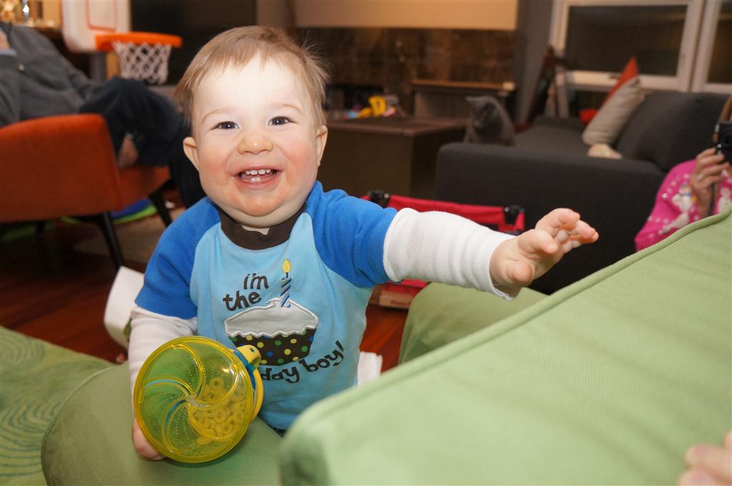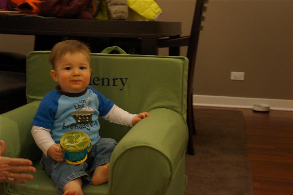 Henry has taken a few more quick steps without holding on to anything, but we aren’t ready to give him his walking merit badge quite yet. He has started making a “Ba Ba” noise to go along with his “Ma Ma”, but no “Da Da” yet.