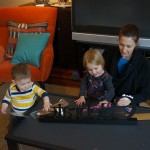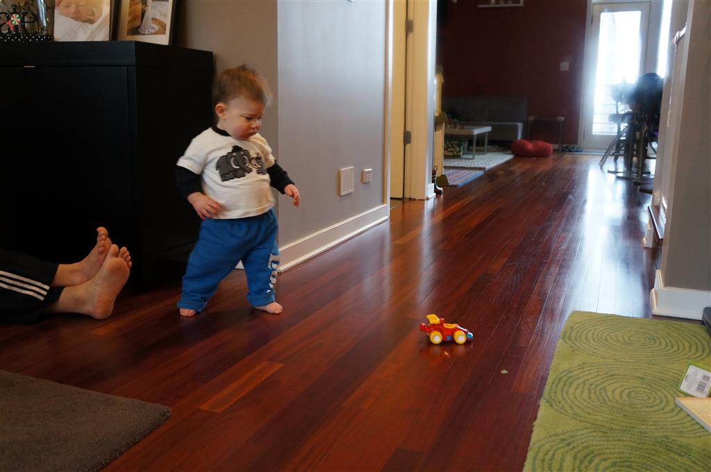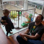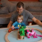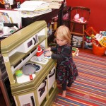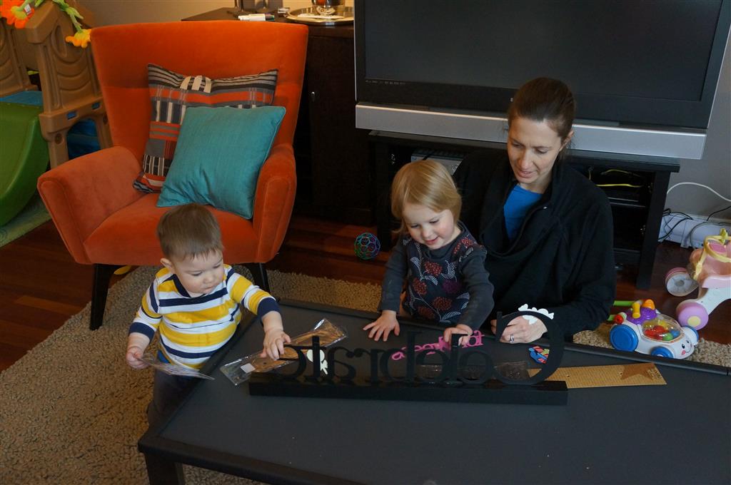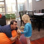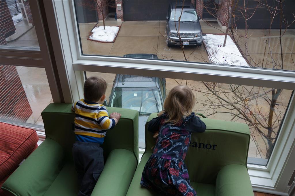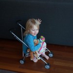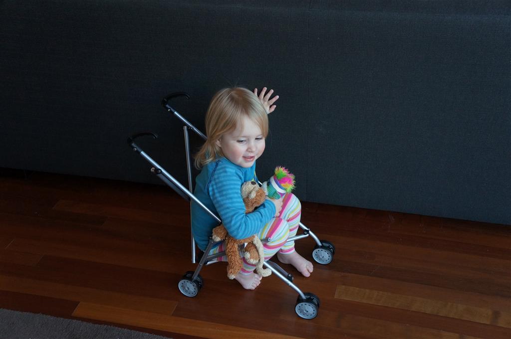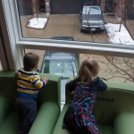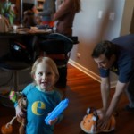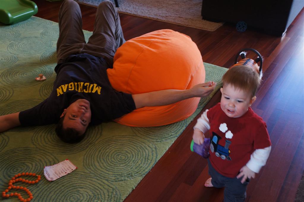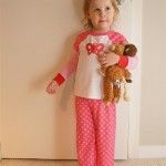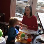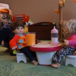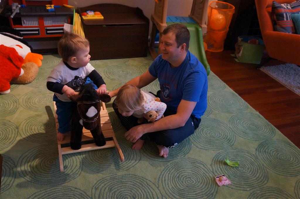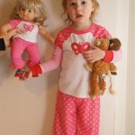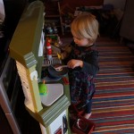 Eleanor really got into her Bitty Baby twins (Gray and Hobbes) on Sunday, and made them a full lunch. It was quite a sight to see her frying up a pancake at her kitchen, holding a spatula in one hand, and in the other hand holding Monkey’s hand and a spatula for Monkey. Hobbes didn’t get to sit at the table much though, as Monkey got the seat opposite Gray. Eleanor was very excited for her and Gray to wear their matching pajamas for the first time Sunday night. She even put up with Dad taking lots of pictures. Matching pajamas has been a popular thing with Eleanor lately, several times this week picking out pajamas that matched Henry’s. Saturday night Henry went to bed before Eleanor came upstairs, so she asked me what pajamas Henry was wearing so that she could put on ones that matched. Earlier in the week, Mom was telling Eleanor that they were going to soccer class the next day, and Eleanor replied “I will be a little bit not listening, and then I will run away and go play on the blue things, and then I will dilly-dally” :) So much for mental preparation…