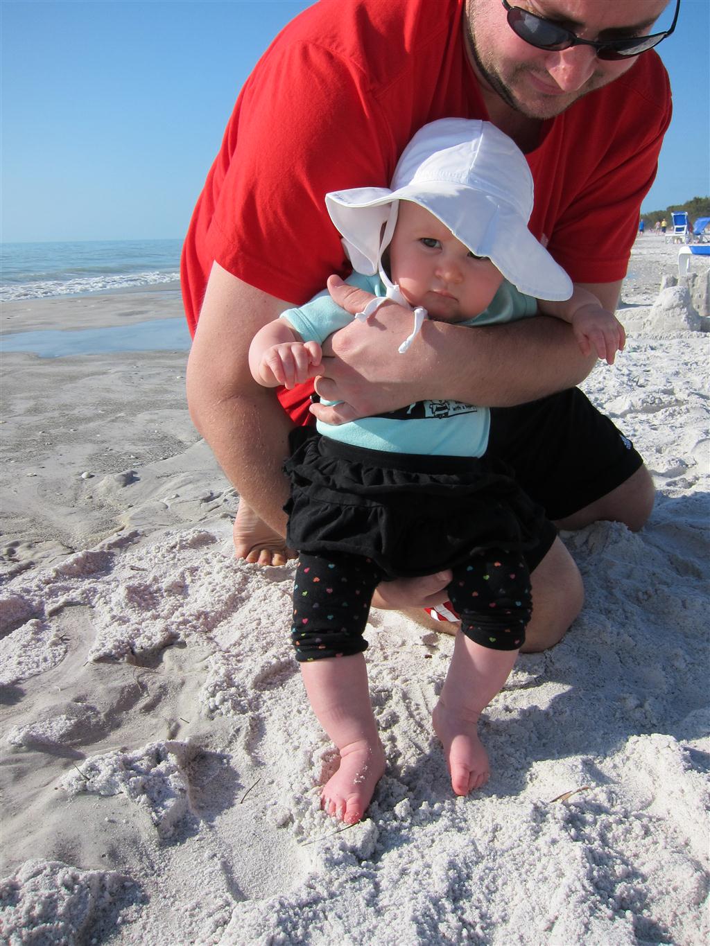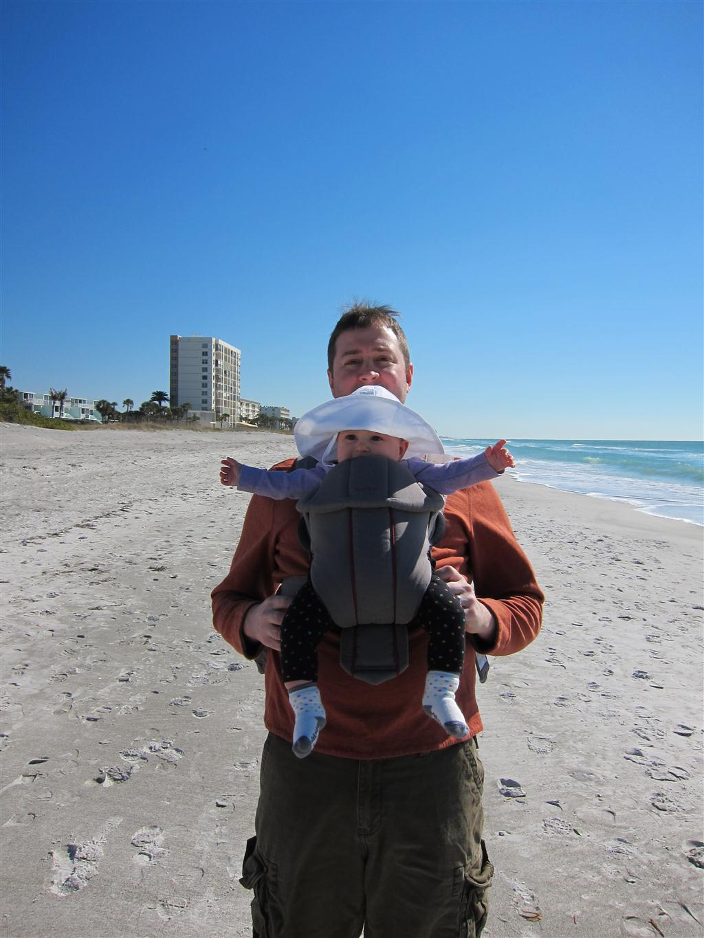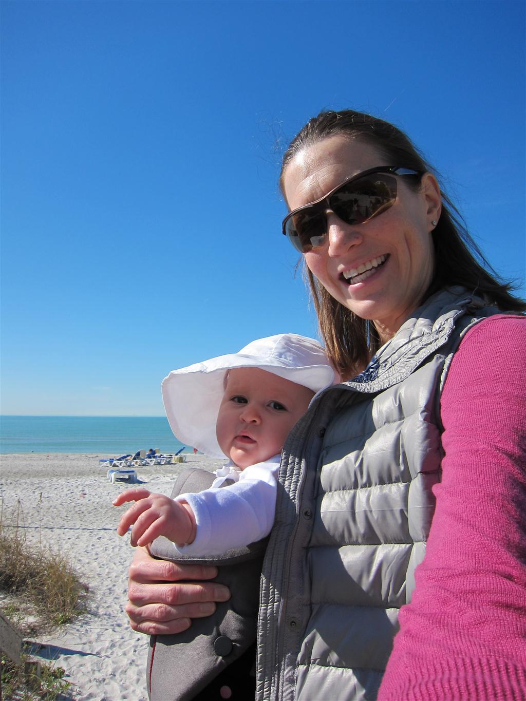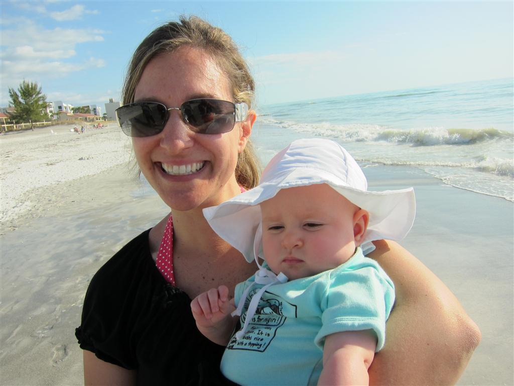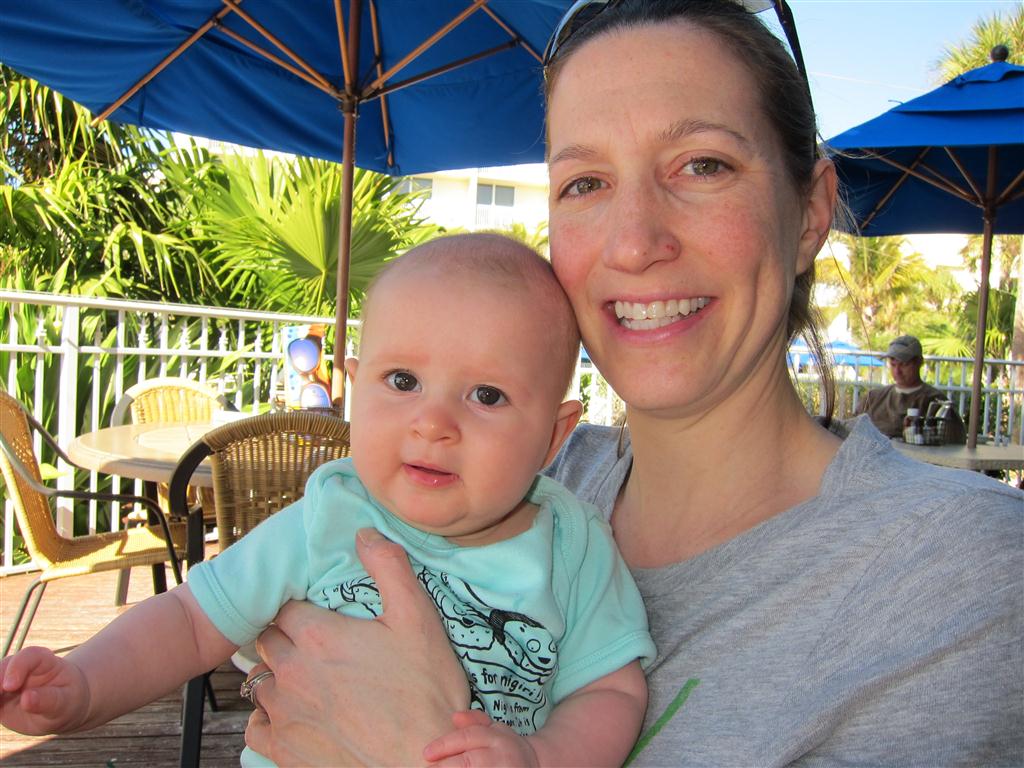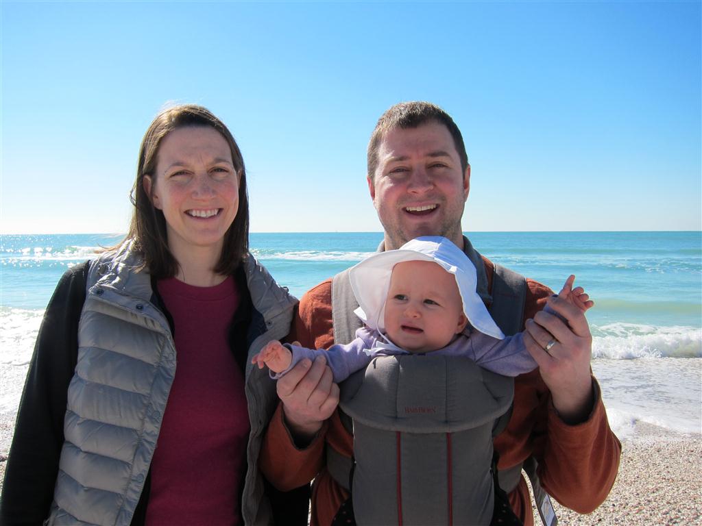We tried lots of different tactics, but Amy and I never managed to eat uninterrupted, and we usually sprinted out of the restaurant as soon as we had both finished. Amy even had to get her Key Lime Pie to go :). We had late bedtimes almost every night, but Ellie managed to sleep pretty well in the hotel. My favorite part of the trip was our first walk on the beach. It was a little chilly, but Eleanor loved every minute of it. She took everything in, with her eyes wide and hands spread eagle the whole time. She only got fussy at the end, when we were walking into the wind. Amy’s favorite part was eating Key Lime Pie at every dinner, and sometimes at lunch.