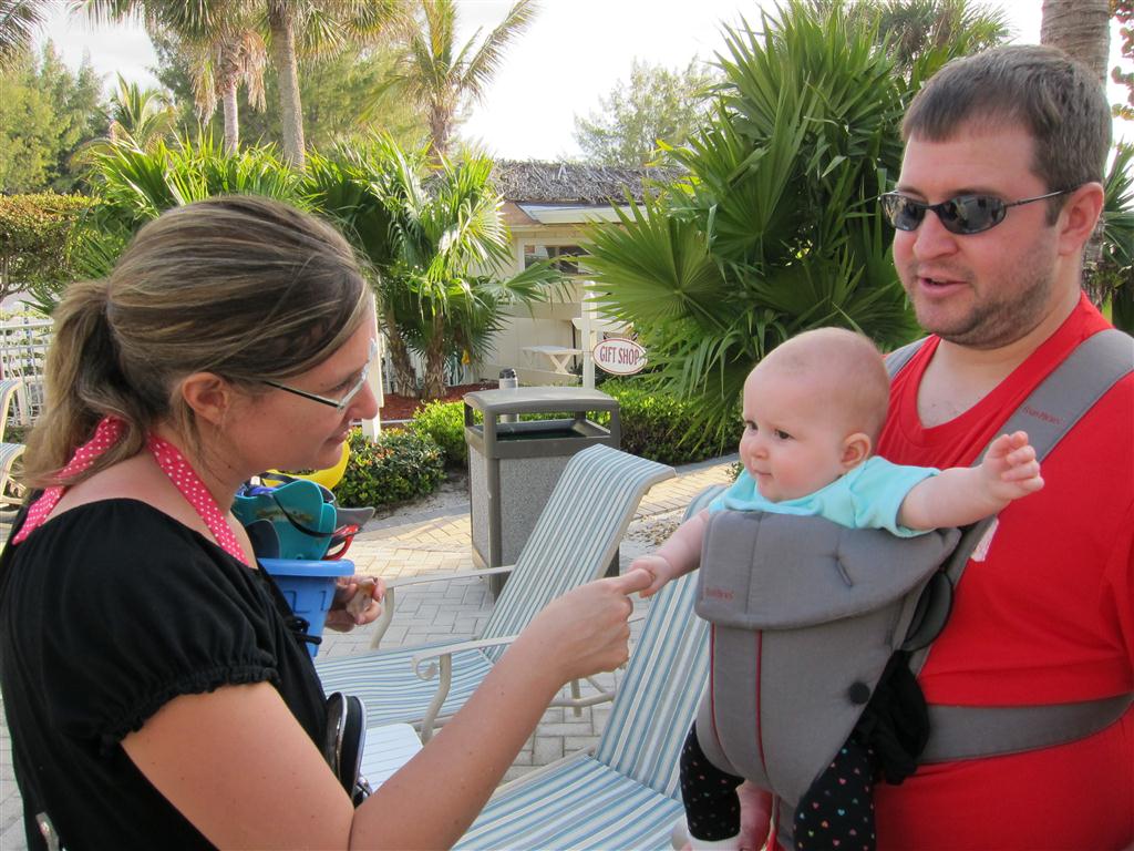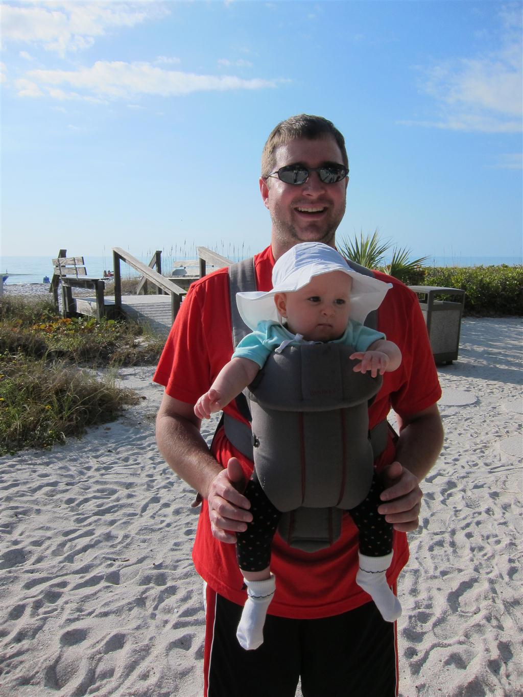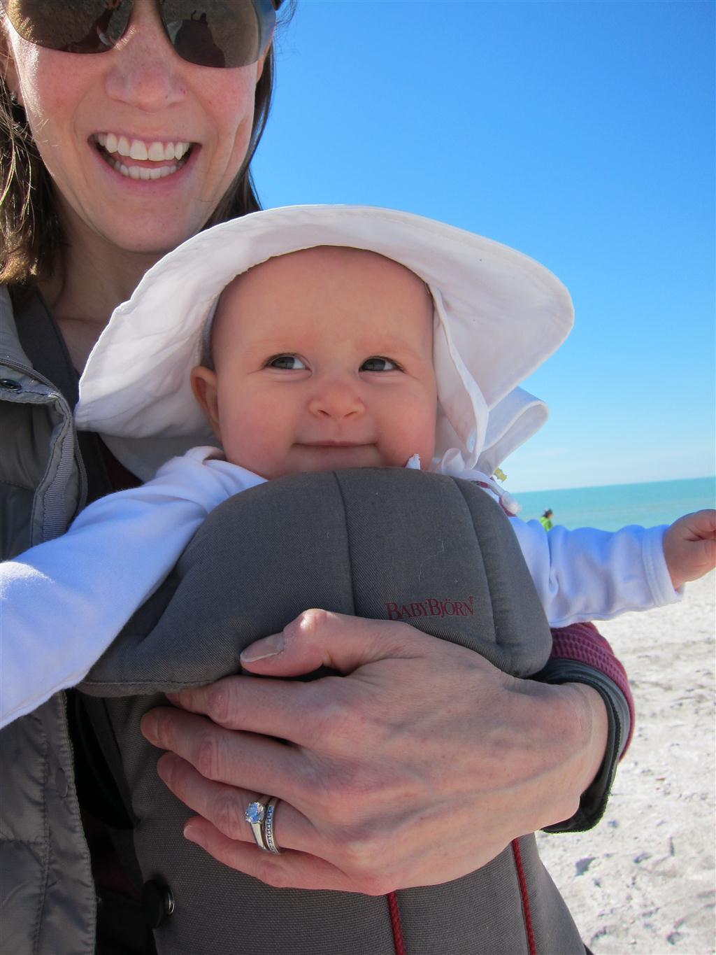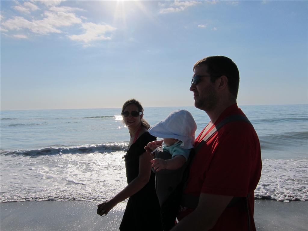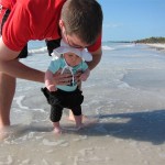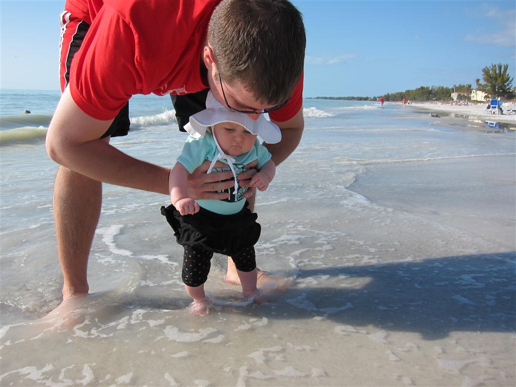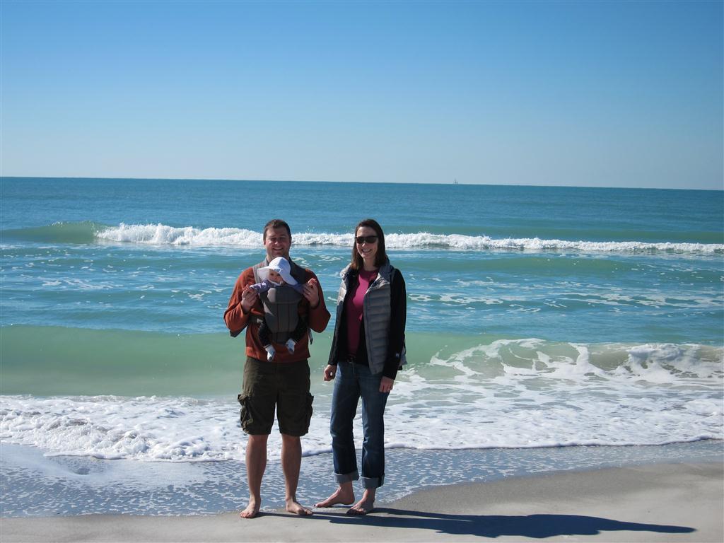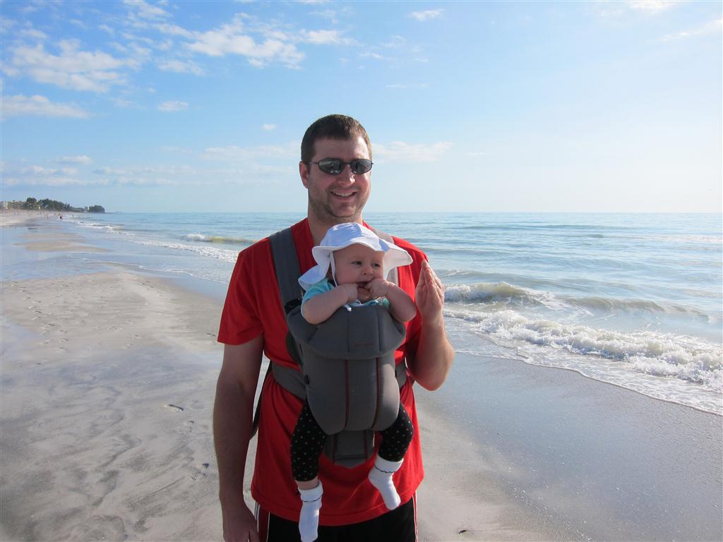 We tried lots of different tactics, but Amy and I never managed to eat uninterrupted, and we usually sprinted out of the restaurant as soon as we had both finished. Amy even had to get her Key Lime Pie to go :). We had late bedtimes almost every night, but Ellie managed to sleep pretty well in the hotel. My favorite part of the trip was our first walk on the beach. It was a little chilly, but Eleanor loved every minute of it. She took everything in, with her eyes wide and hands spread eagle the whole time. She only got fussy at the end, when we were walking into the wind. Amy’s favorite part was eating Key Lime Pie at every dinner, and sometimes at lunch.