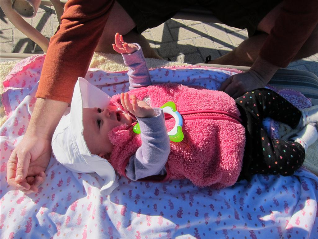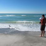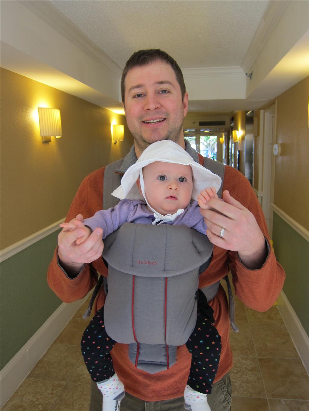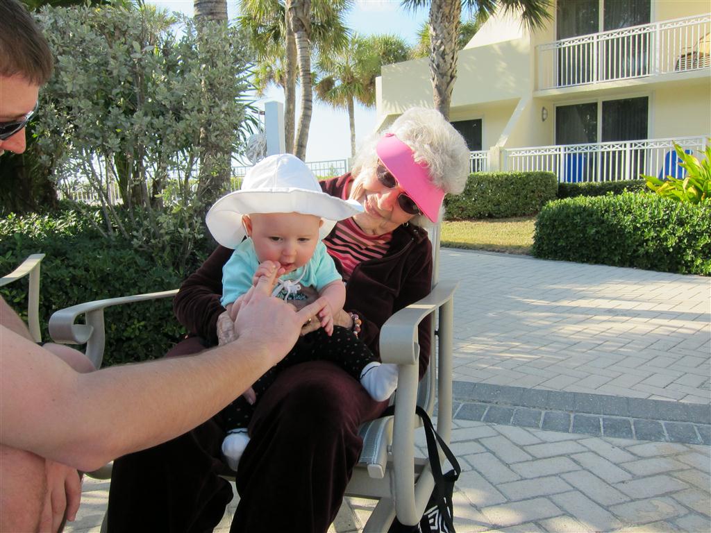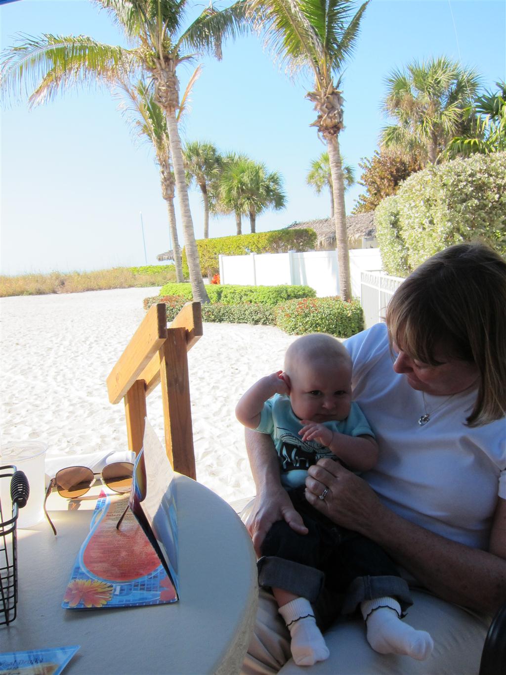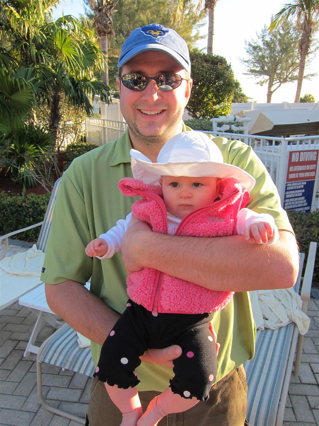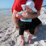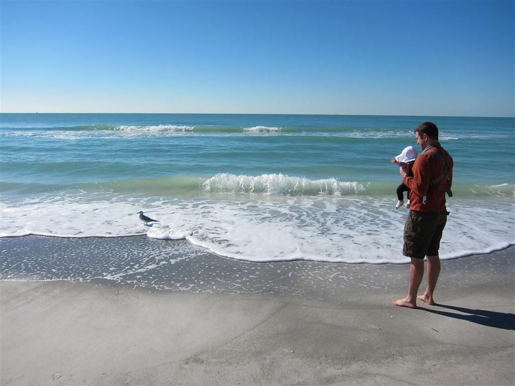 We tried lots of different tactics, but Amy and I never managed to eat uninterrupted, and we usually sprinted out of the restaurant as soon as we had both finished. Amy even had to get her Key Lime Pie to go :). We had late bedtimes almost every night, but Ellie managed to sleep pretty well in the hotel. My favorite part of the trip was our first walk on the beach. It was a little chilly, but Eleanor loved every minute of it. She took everything in, with her eyes wide and hands spread eagle the whole time. She only got fussy at the end, when we were walking into the wind. Amy’s favorite part was eating Key Lime Pie at every dinner, and sometimes at lunch.