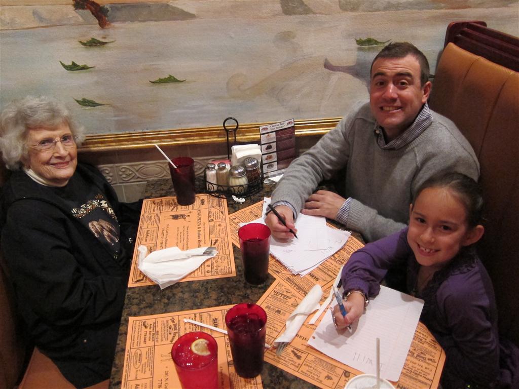 26th – Late but not our fault (picking up Uncle B at the airport). Got our food to go.