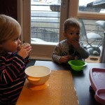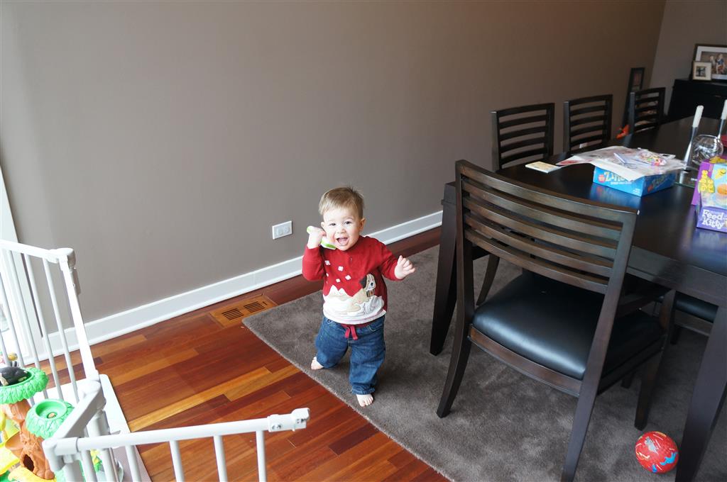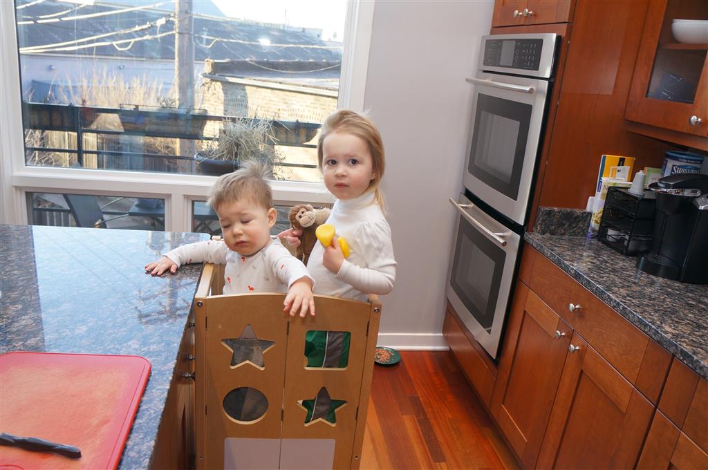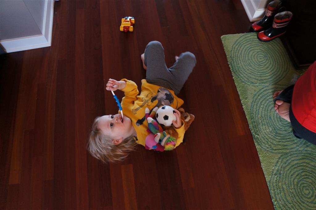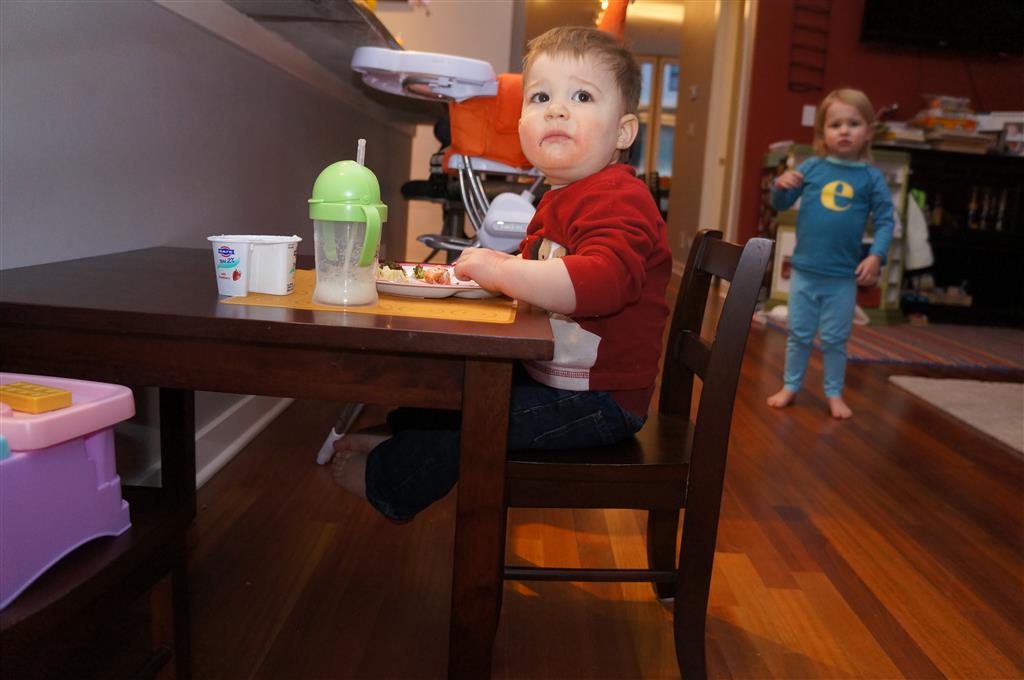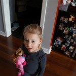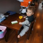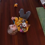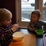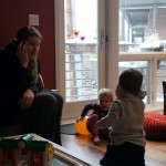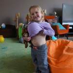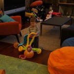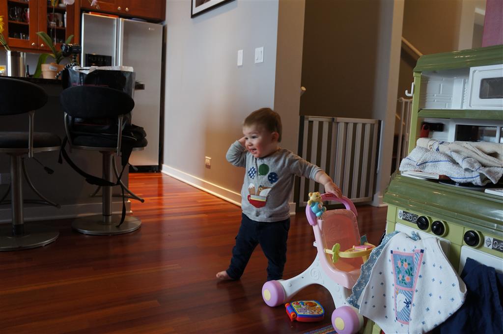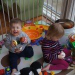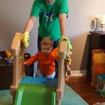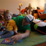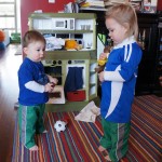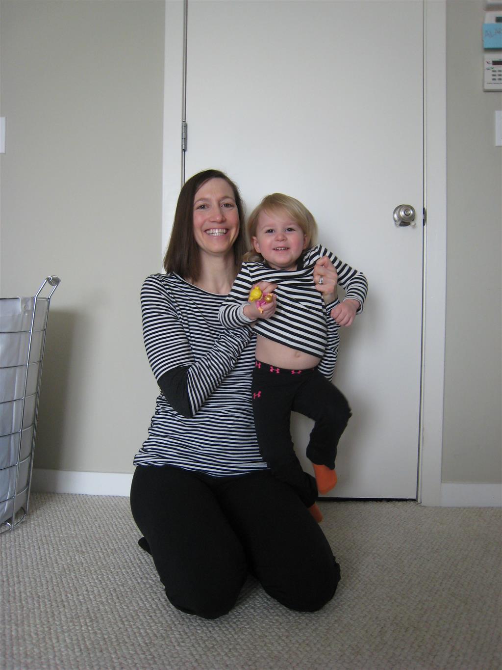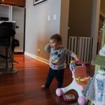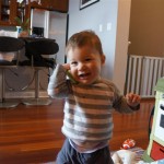 Eleanor and Henry had a fun week of activities. We started the week with Mom and Eleanor in matching outfits, and Henry determined to sit on the floor potty. We all went to a swim class, where Henry is perfecting his blue whale impression each time the instructor dips his head underwater. However he never seems to drink the water, just keeps his mouth wide open for it to fill up and then drain back out again. Several times this week Henry has gotten onto Eleanor’s floor potty – after which he reaches for a book and pretends to read it just like Eleanor does when she is sitting there. He has also been very interested in the toy phone, running around with it up to his ear. Henry’s top two molars are coming in nicely, and lately he has been obsessed with his toothbrush turned chew toy.