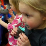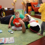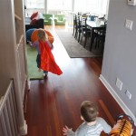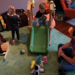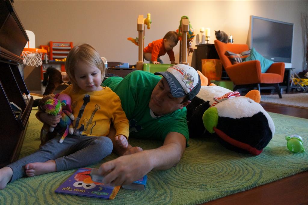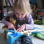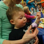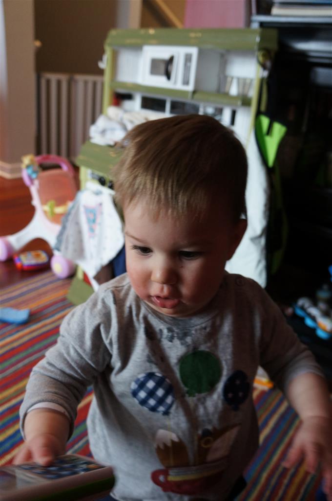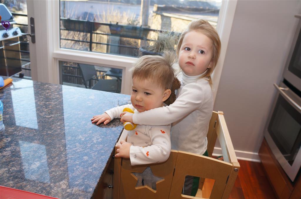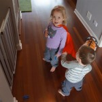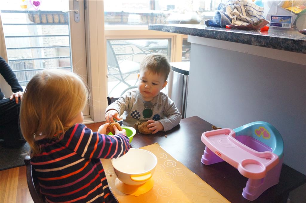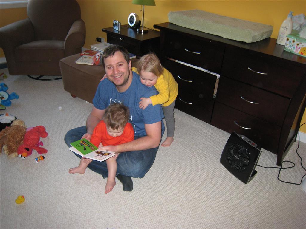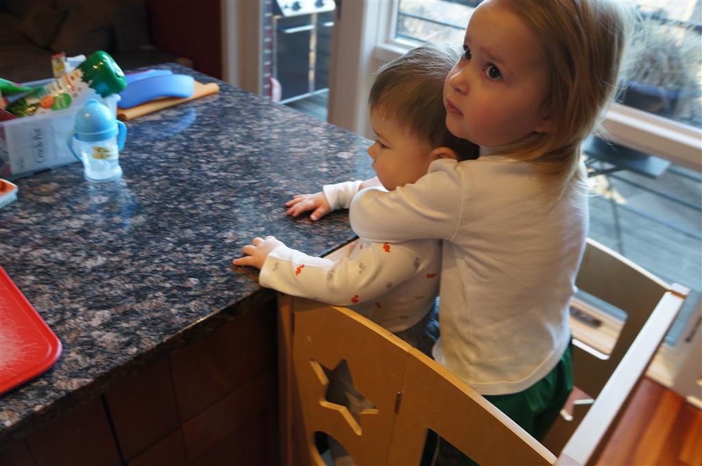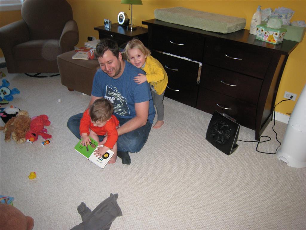 Eleanor and Henry had a fun week of activities. We started the week with Mom and Eleanor in matching outfits, and Henry determined to sit on the floor potty. We all went to a swim class, where Henry is perfecting his blue whale impression each time the instructor dips his head underwater. However he never seems to drink the water, just keeps his mouth wide open for it to fill up and then drain back out again. Several times this week Henry has gotten onto Eleanor’s floor potty – after which he reaches for a book and pretends to read it just like Eleanor does when she is sitting there. He has also been very interested in the toy phone, running around with it up to his ear. Henry’s top two molars are coming in nicely, and lately he has been obsessed with his toothbrush turned chew toy.
