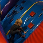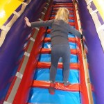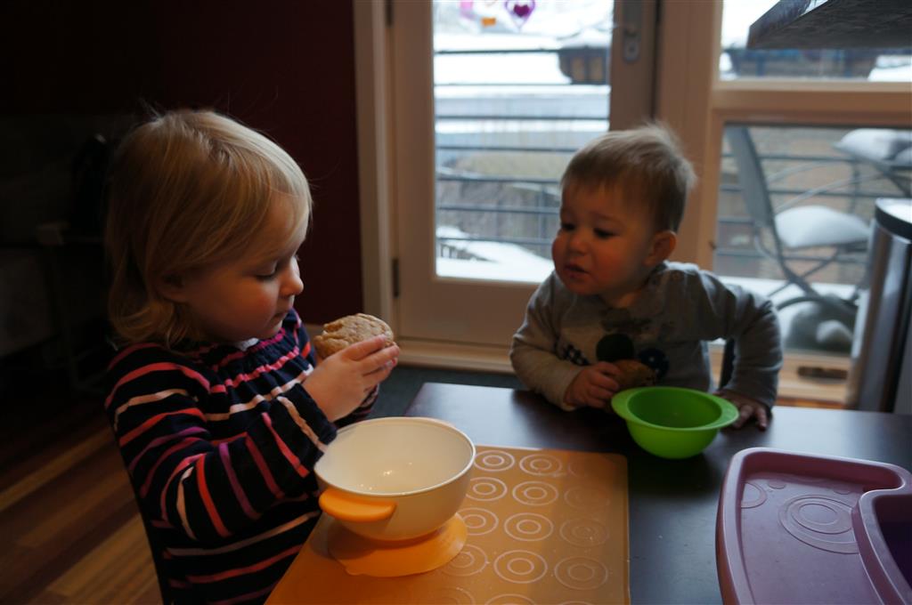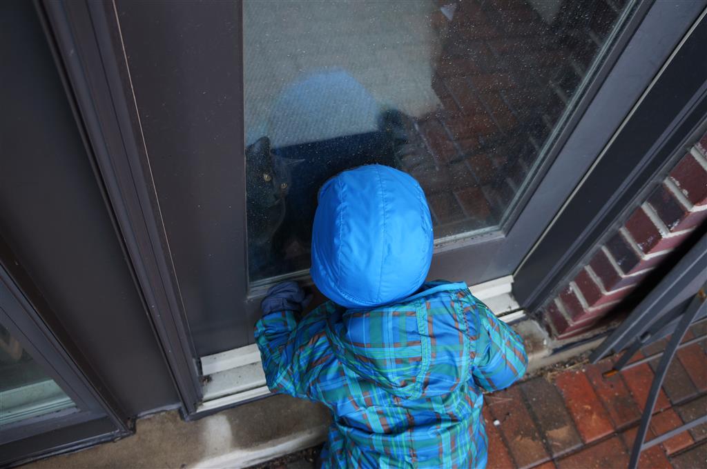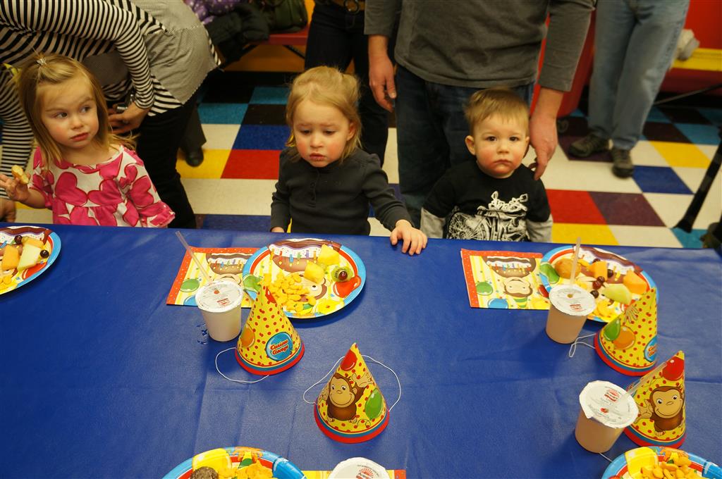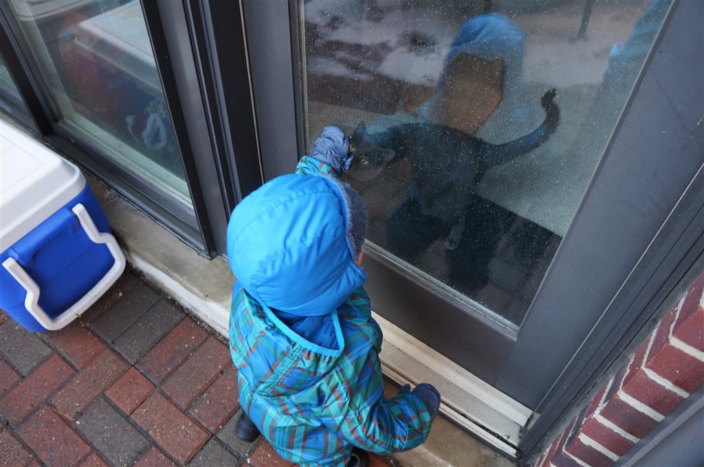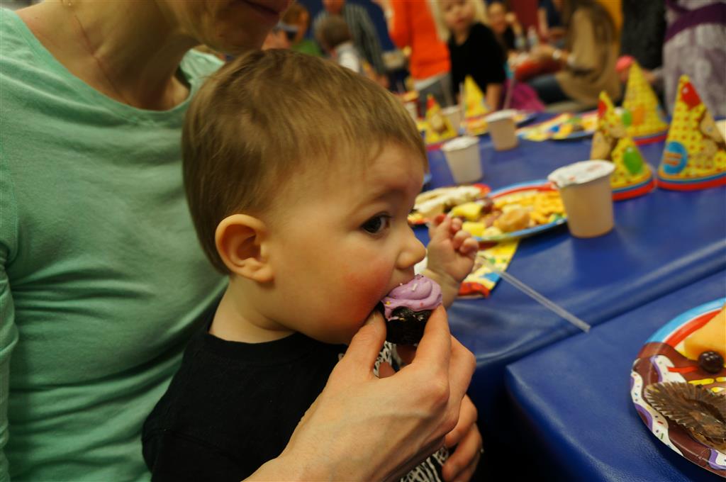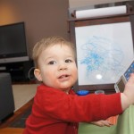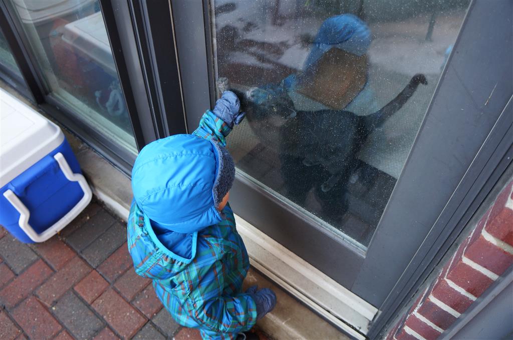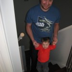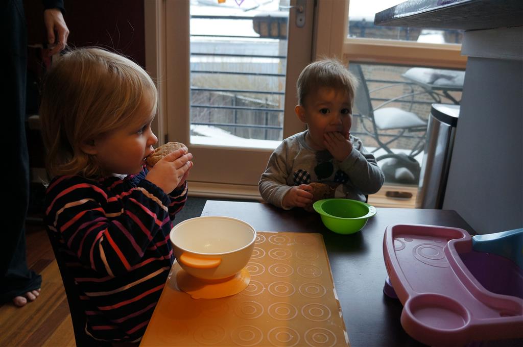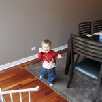 We went to a birthday party for Eleanor’s twin friends at “Pump It Up”, a bouncy castle playland, and Eleanor loved it. She especially liked the big slides, and later told me that she wanted to go there again. Henry didn’t like it as much, but did enjoy the cupcake at the end. On Sunday we all went into the back yard and built a snowman. Henry was not very impressed, partly because he had trouble maneuvering in his snowsuit, but Eleanor was very entertained. She helped by bringing over snow, and giggled when she touched its nose. Uncle B capped off the weekend with a surprise visit, which Eleanor declared her favorite part of the day (even beating out the snowman!).