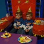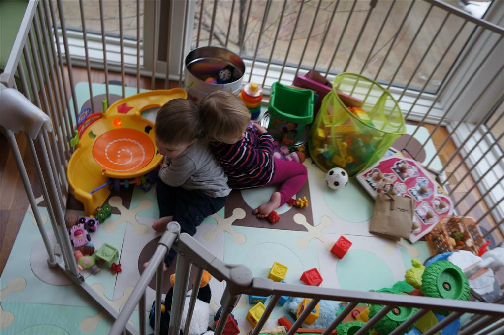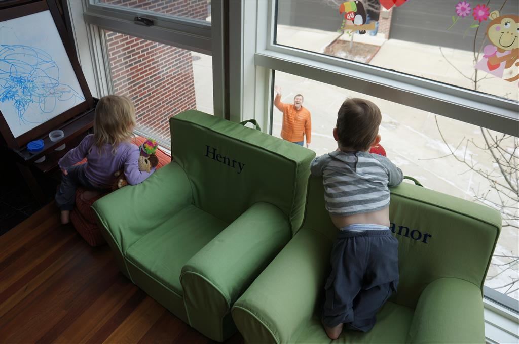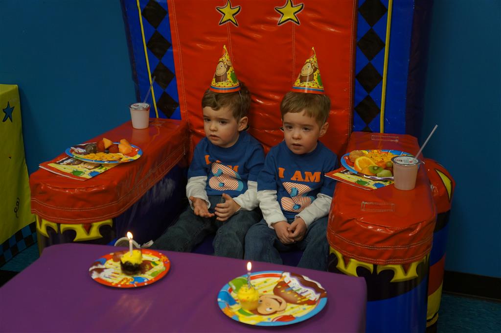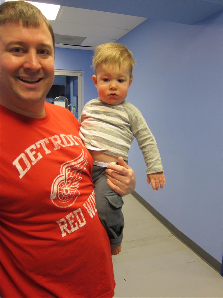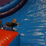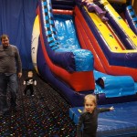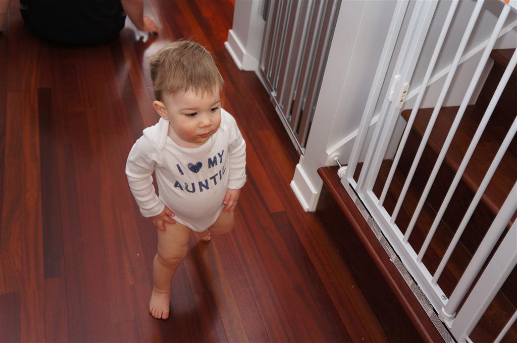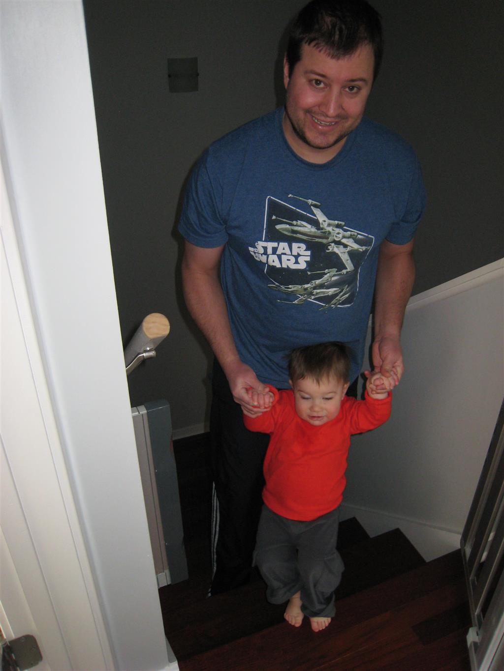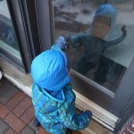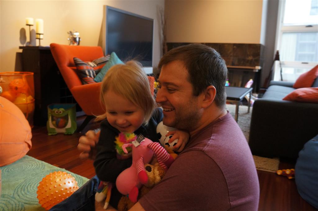 We went to a birthday party for Eleanor’s twin friends at “Pump It Up”, a bouncy castle playland, and Eleanor loved it. She especially liked the big slides, and later told me that she wanted to go there again. Henry didn’t like it as much, but did enjoy the cupcake at the end. On Sunday we all went into the back yard and built a snowman. Henry was not very impressed, partly because he had trouble maneuvering in his snowsuit, but Eleanor was very entertained. She helped by bringing over snow, and giggled when she touched its nose. Uncle B capped off the weekend with a surprise visit, which Eleanor declared her favorite part of the day (even beating out the snowman!).