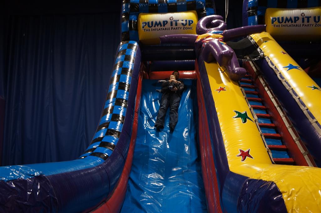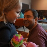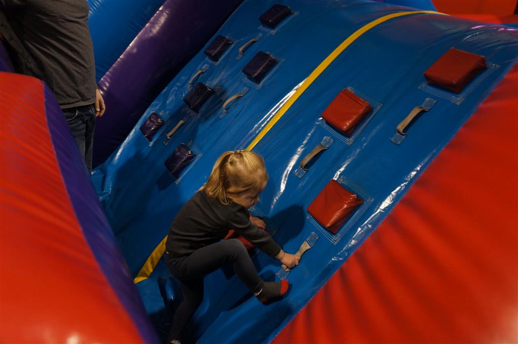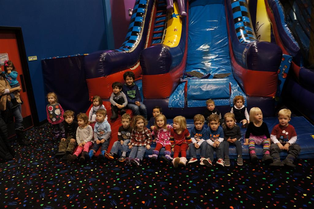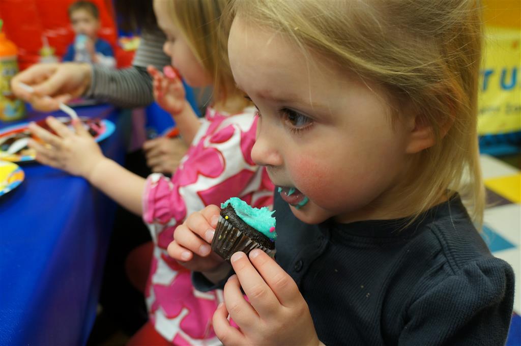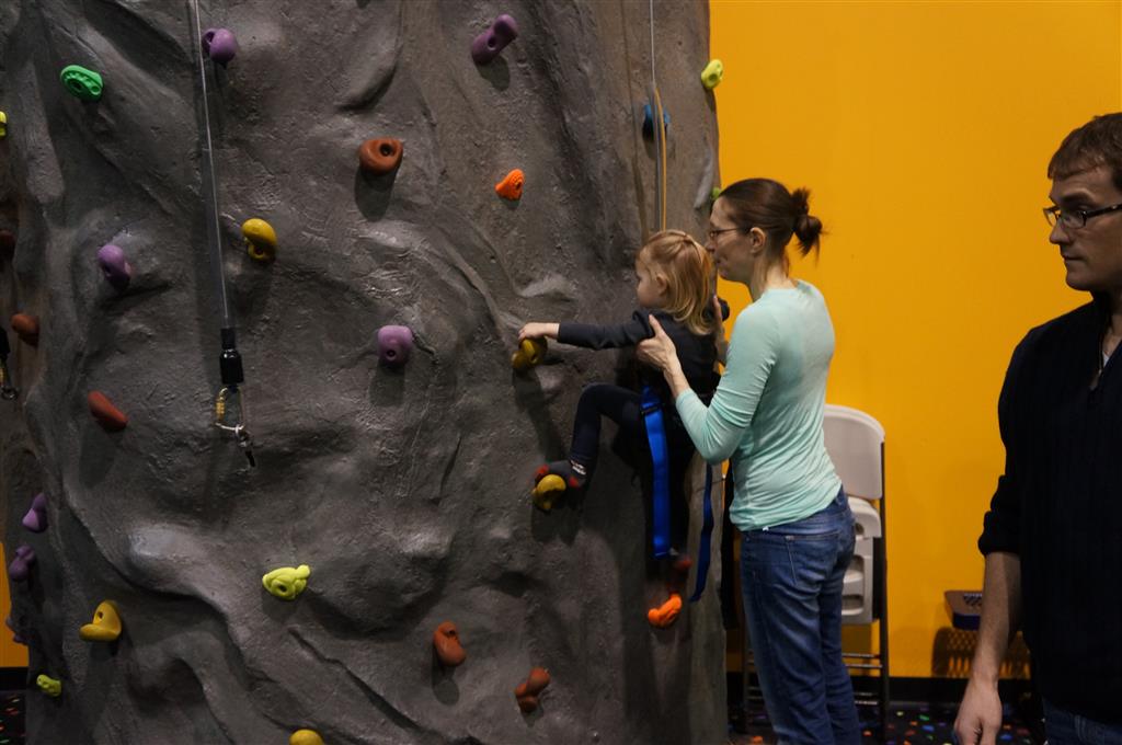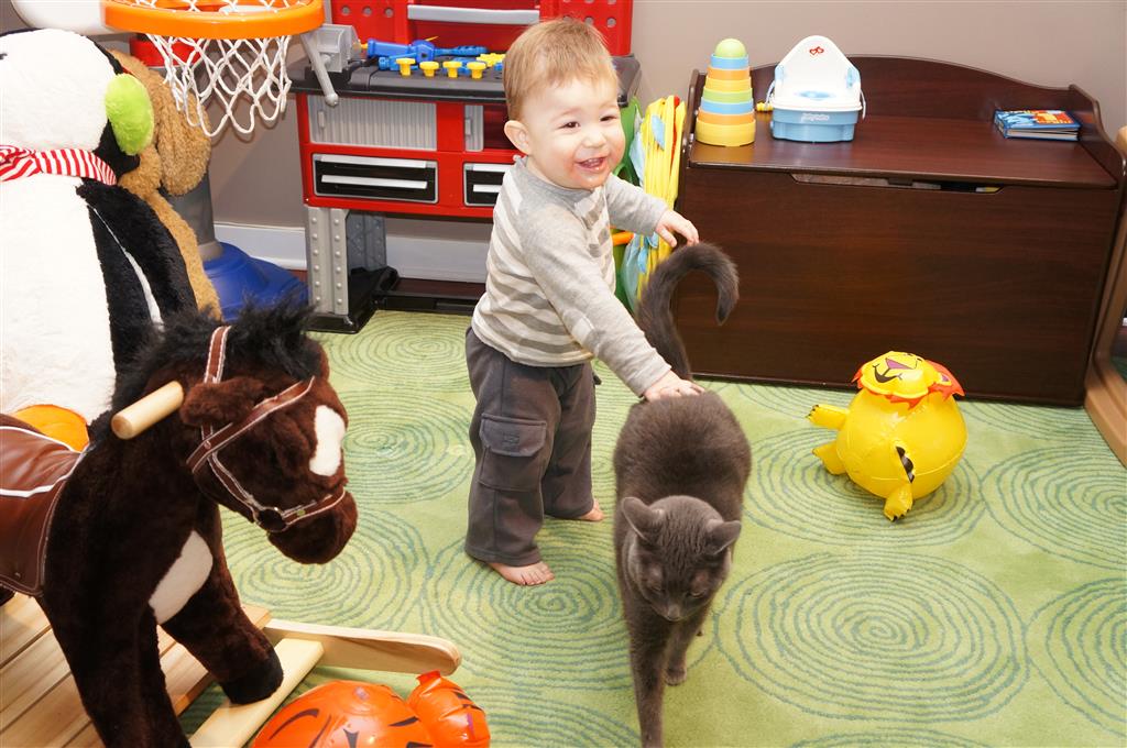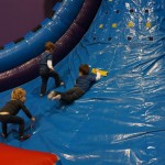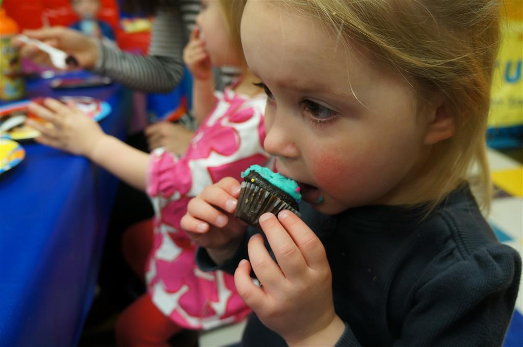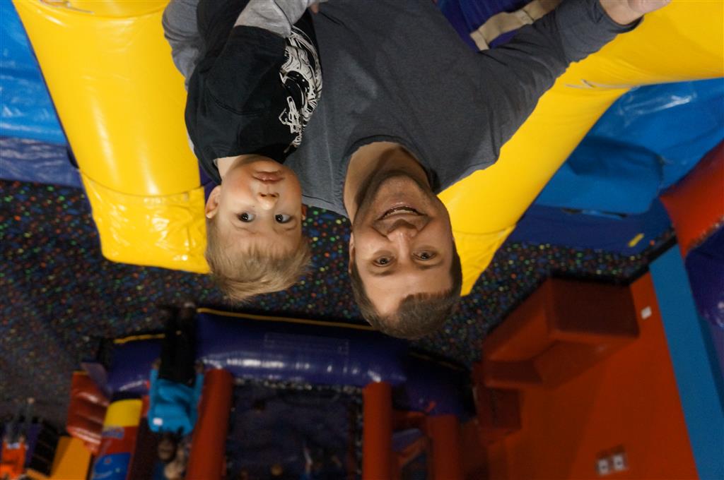 We went to a birthday party for Eleanor’s twin friends at “Pump It Up”, a bouncy castle playland, and Eleanor loved it. She especially liked the big slides, and later told me that she wanted to go there again. Henry didn’t like it as much, but did enjoy the cupcake at the end. On Sunday we all went into the back yard and built a snowman. Henry was not very impressed, partly because he had trouble maneuvering in his snowsuit, but Eleanor was very entertained. She helped by bringing over snow, and giggled when she touched its nose. Uncle B capped off the weekend with a surprise visit, which Eleanor declared her favorite part of the day (even beating out the snowman!).