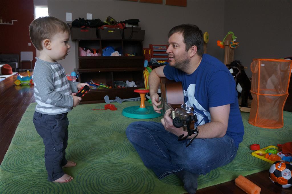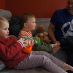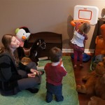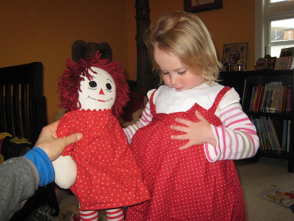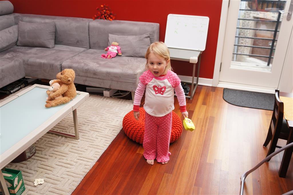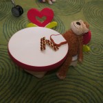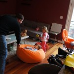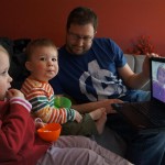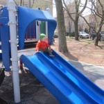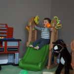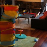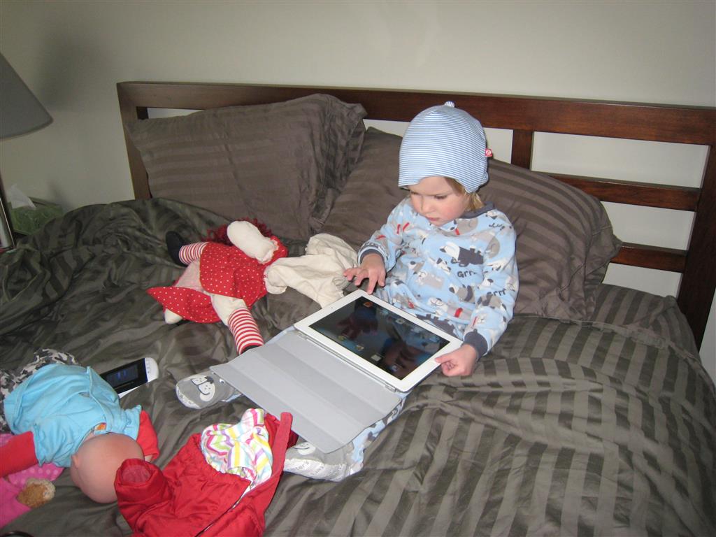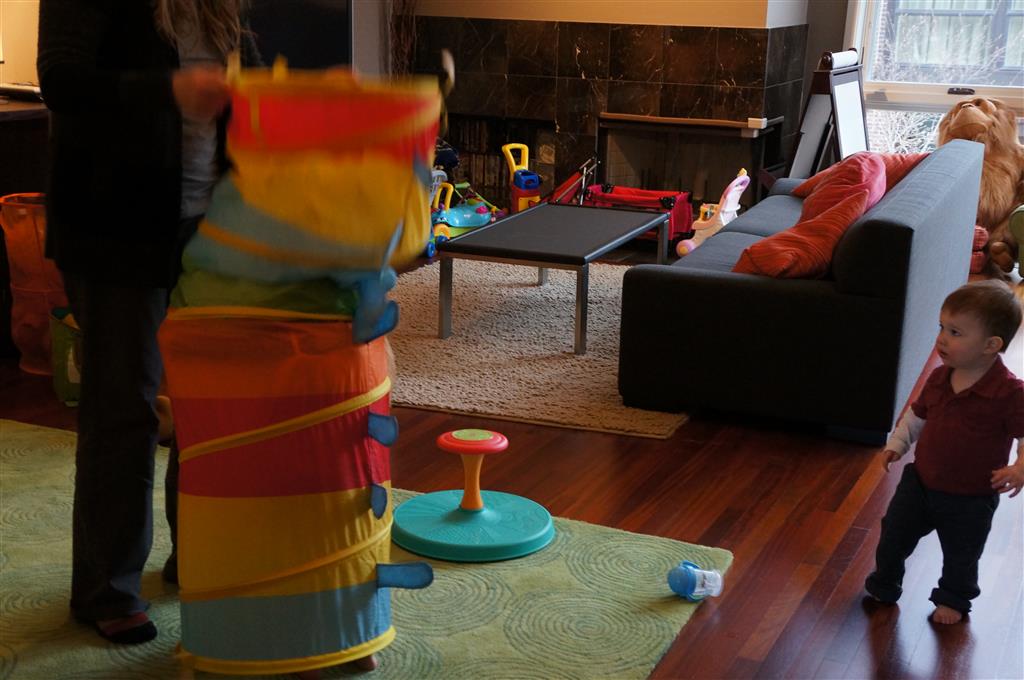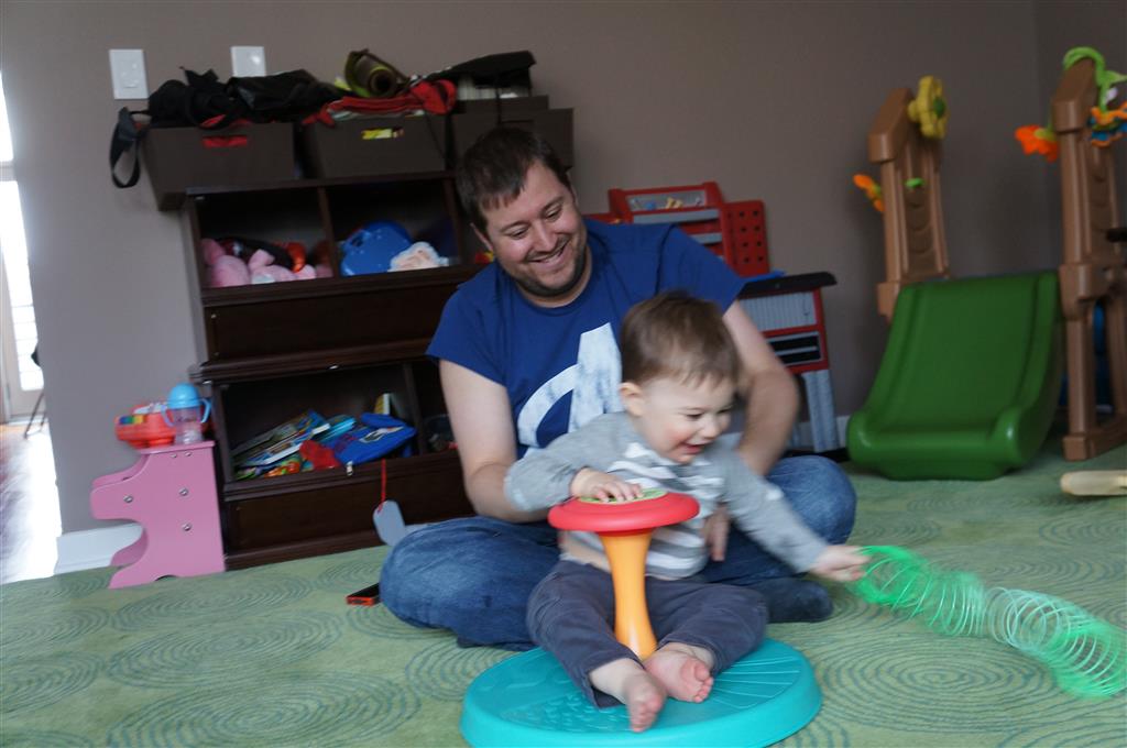Eleanor and Henry didn’t get outside too much this week – suffering from a slow to arrive spring here. Eleanor is itching to break out her spring clothes, and this week has been putting on short sleeve shirts as often as she can. Currently, her record is 9 – meaning that she had 9 shirts on all at once. Even Monkey can’t beat that with doll clothes. Amazingly, she does it all by herself, with no help from Mom or Dad. She has also been fond of her warm hat, which makes for some funny pictures. Both kids have rediscovered the sit-n-spin, Eleanor now likes to stand on it and spin around while saying “Look at Me!”, and Henry sits and giggles while Mom or Dad spin him around. In a sure sign that Eleanor is picking up phrases from preschool, yesterday she told me to come sit next to her on the green playrug, because it would be warmer for my bottom. Ha! Eleanor is working on spelling her name – she will get it right about half of the time – the other half she misses the A but gets the rest of the letters right.