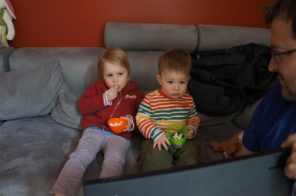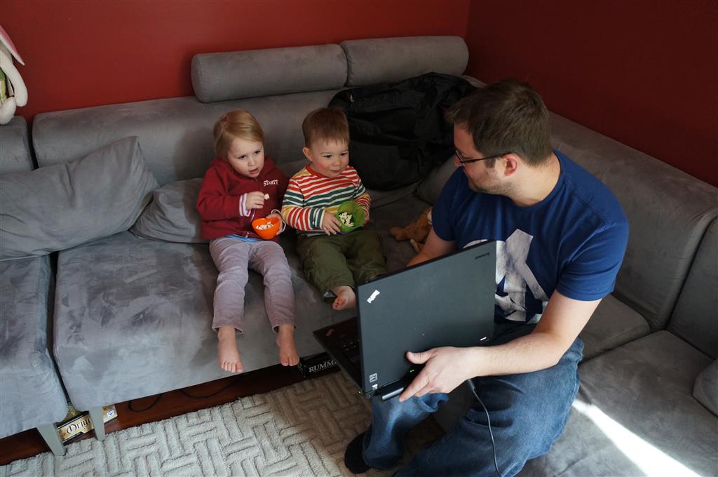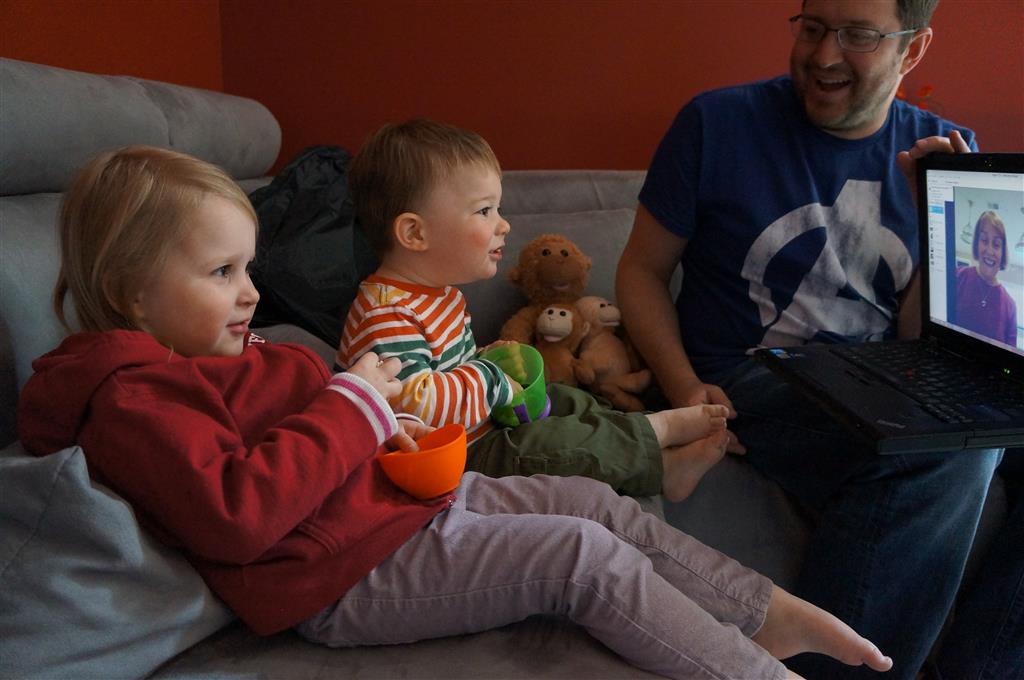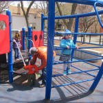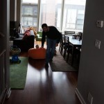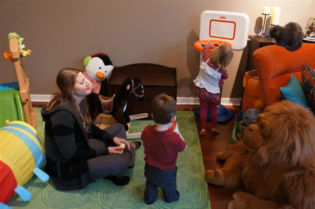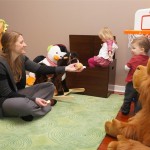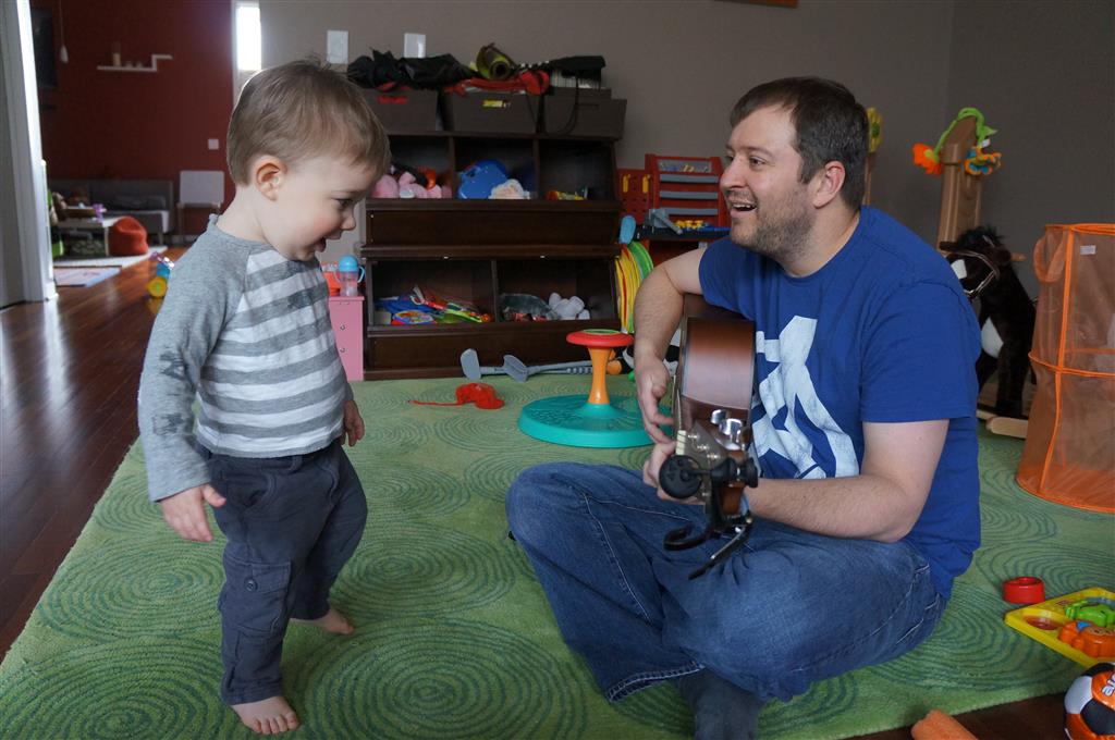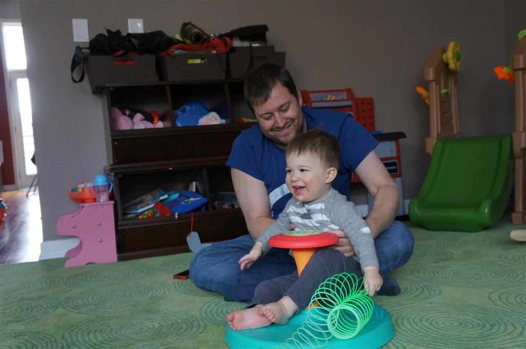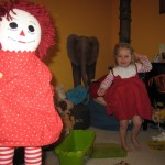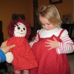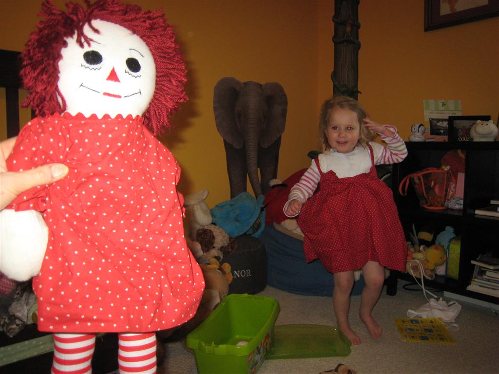 Eleanor and Henry didn’t get outside too much this week – suffering from a slow to arrive spring here. Eleanor is itching to break out her spring clothes, and this week has been putting on short sleeve shirts as often as she can. Currently, her record is 9 – meaning that she had 9 shirts on all at once. Even Monkey can’t beat that with doll clothes. Amazingly, she does it all by herself, with no help from Mom or Dad. She has also been fond of her warm hat, which makes for some funny pictures. Both kids have rediscovered the sit-n-spin, Eleanor now likes to stand on it and spin around while saying “Look at Me!”, and Henry sits and giggles while Mom or Dad spin him around. In a sure sign that Eleanor is picking up phrases from preschool, yesterday she told me to come sit next to her on the green playrug, because it would be warmer for my bottom. Ha! Eleanor is working on spelling her name – she will get it right about half of the time – the other half she misses the A but gets the rest of the letters right.