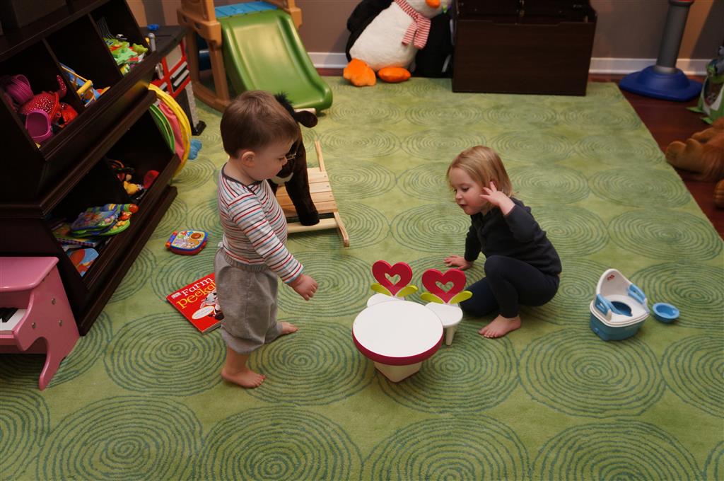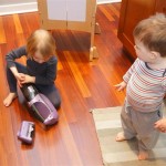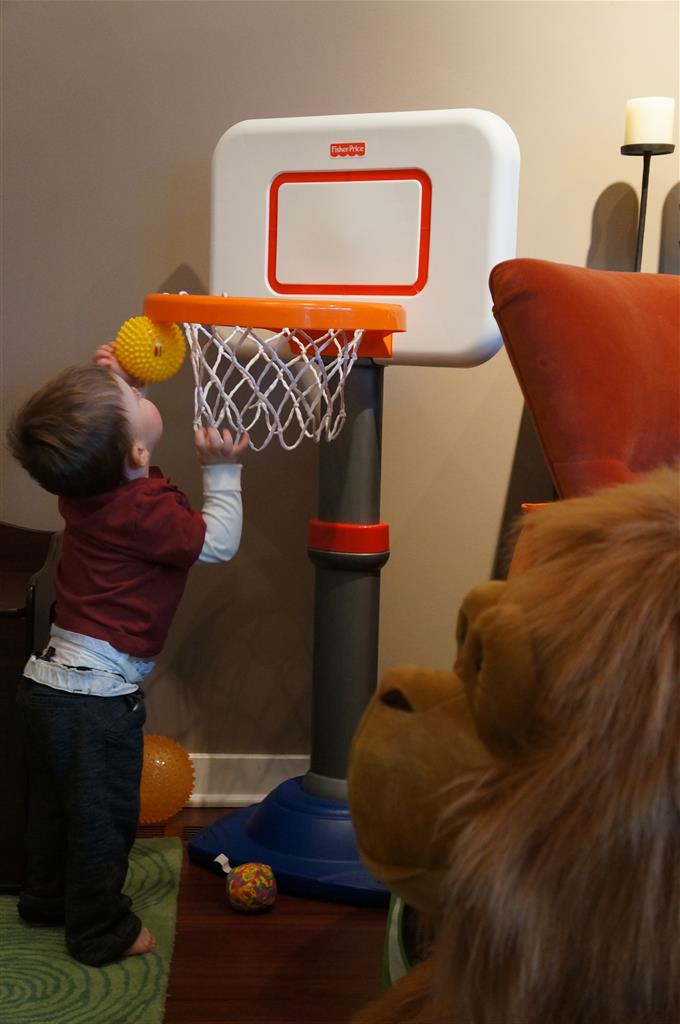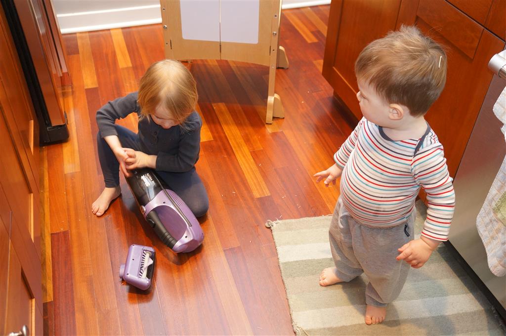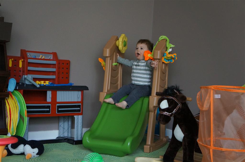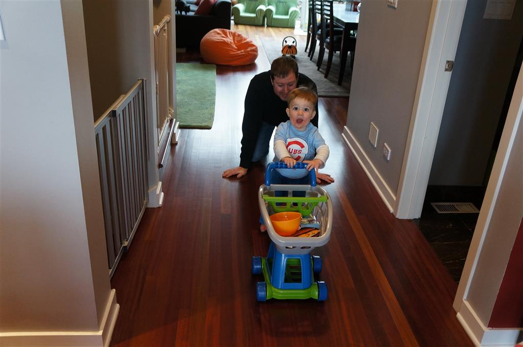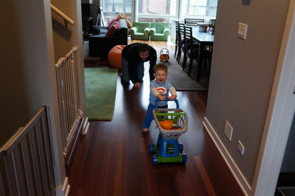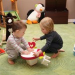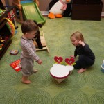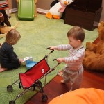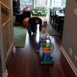 Henry is starting to make progress with his sounds – he has added a number of “first syllables” that have meaning, like “Dou” for Down and “Cu” for Cut (meaning he wants his food cut into smaller pieces). He also got out a “Puh” when pointing at a picture of Papa. He has also become obsessed with the bathroom sink – whenever we tell Eleanor to wash her hands, Henry tries to beat her into the bathroom so that he can turn on the sink and play with the water. He also likes to brush his teeth and comb his hair.