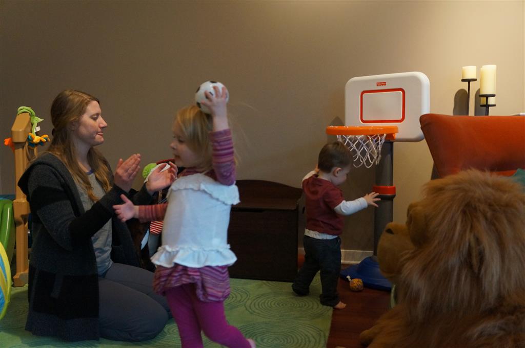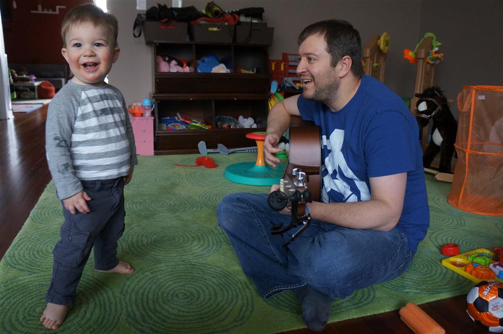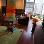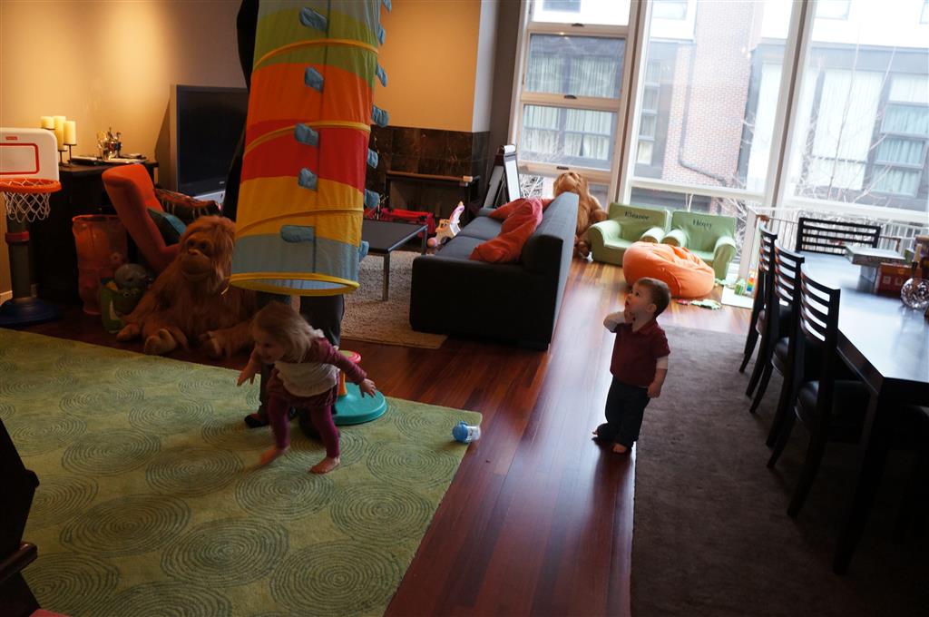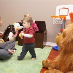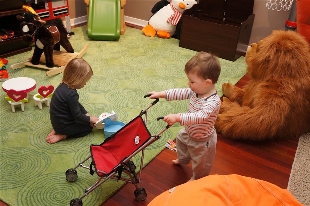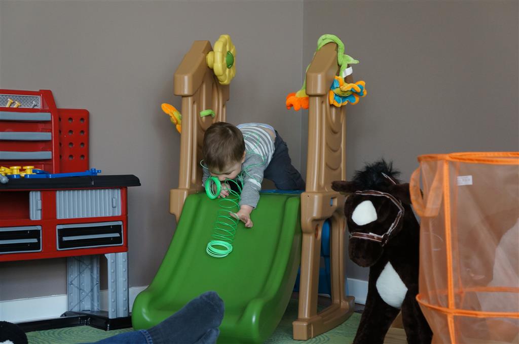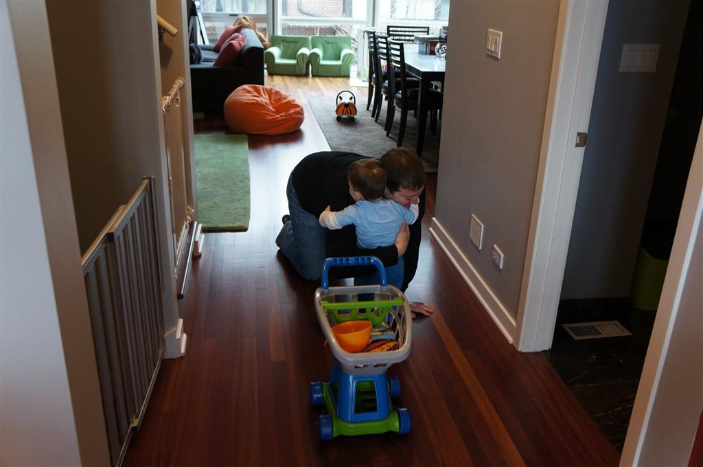 Henry is starting to make progress with his sounds – he has added a number of “first syllables” that have meaning, like “Dou” for Down and “Cu” for Cut (meaning he wants his food cut into smaller pieces). He also got out a “Puh” when pointing at a picture of Papa. He has also become obsessed with the bathroom sink – whenever we tell Eleanor to wash her hands, Henry tries to beat her into the bathroom so that he can turn on the sink and play with the water. He also likes to brush his teeth and comb his hair.