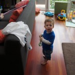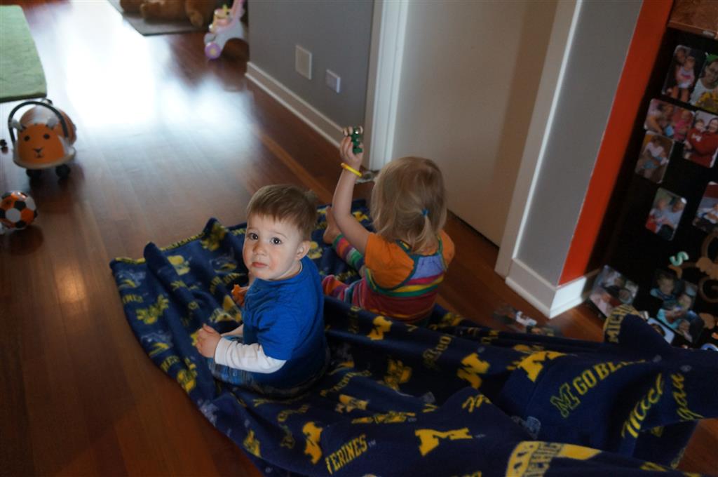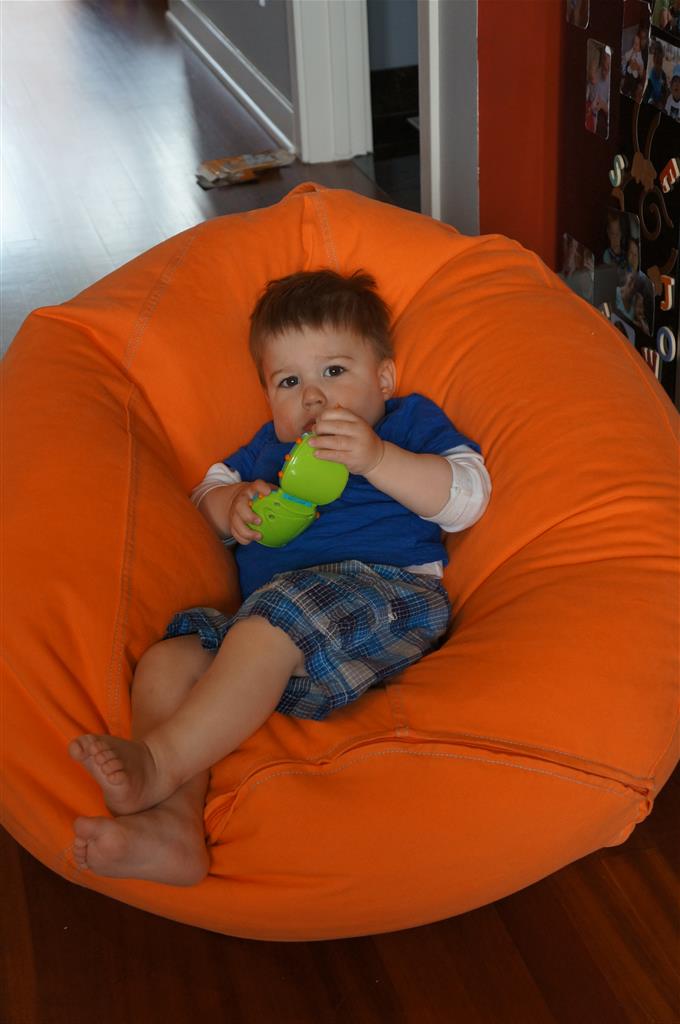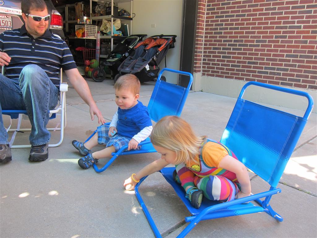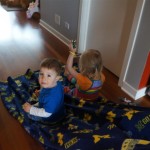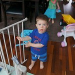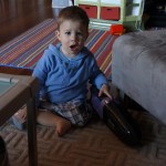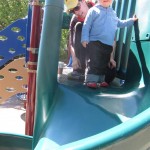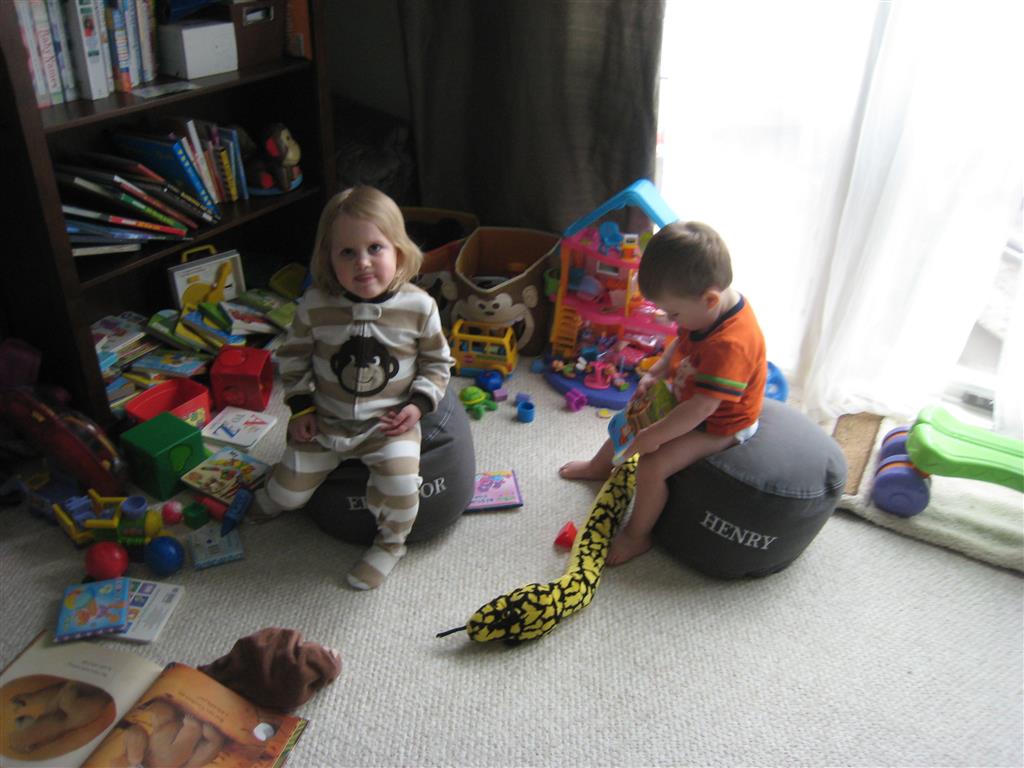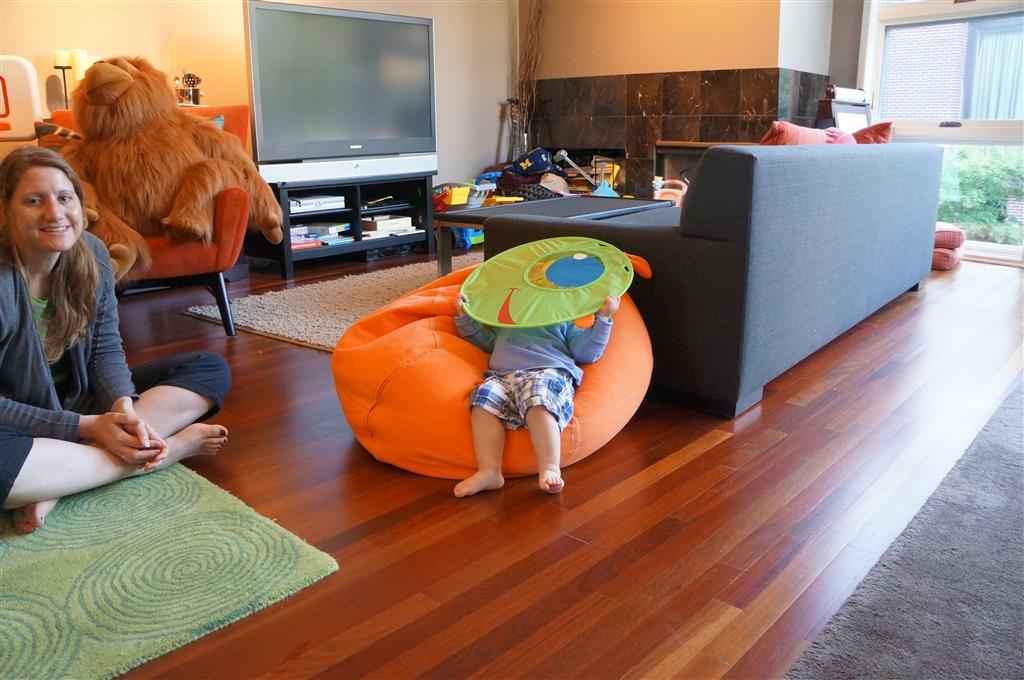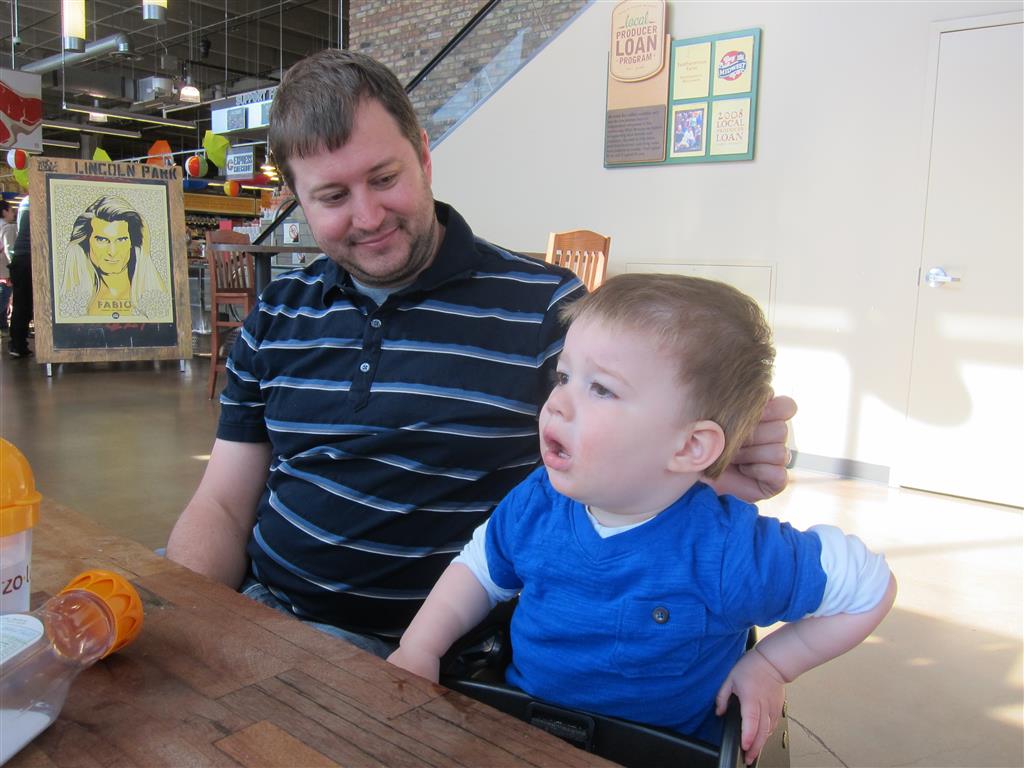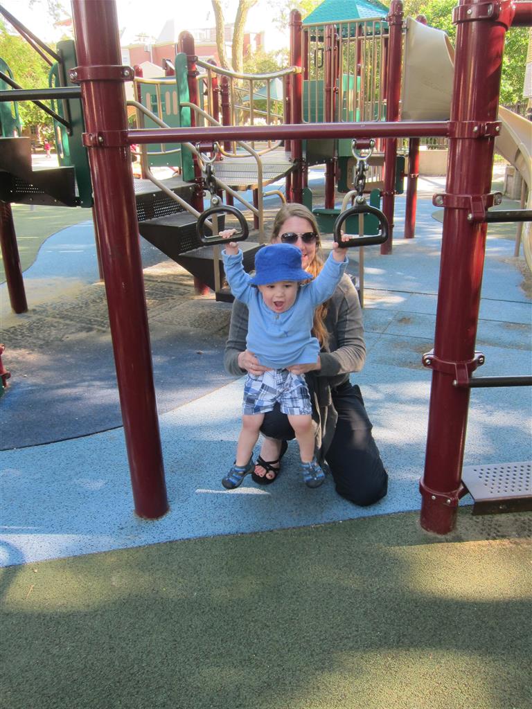 Henry keeps adding words to his repertoire, he has added “diaper”, “pancake” and “waffle”, and has a definite “H” sound for himself and an “E” sound for Eleanor. The swing is still his favorite activity at the park, but the slide is gaining popularity. He likes to put his feet down while on the slide – on Sunday he was headed down a spiral slide, everything looking good, and then when he came around the second bend, he was head first! I think he learned that from our slide at home, where he likes to put his feet down and then dives off the end headfirst into my lap. Hopefully he doesn’t attempt that when there is no one there to catch him.
