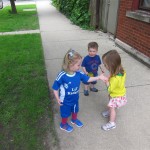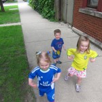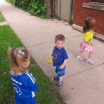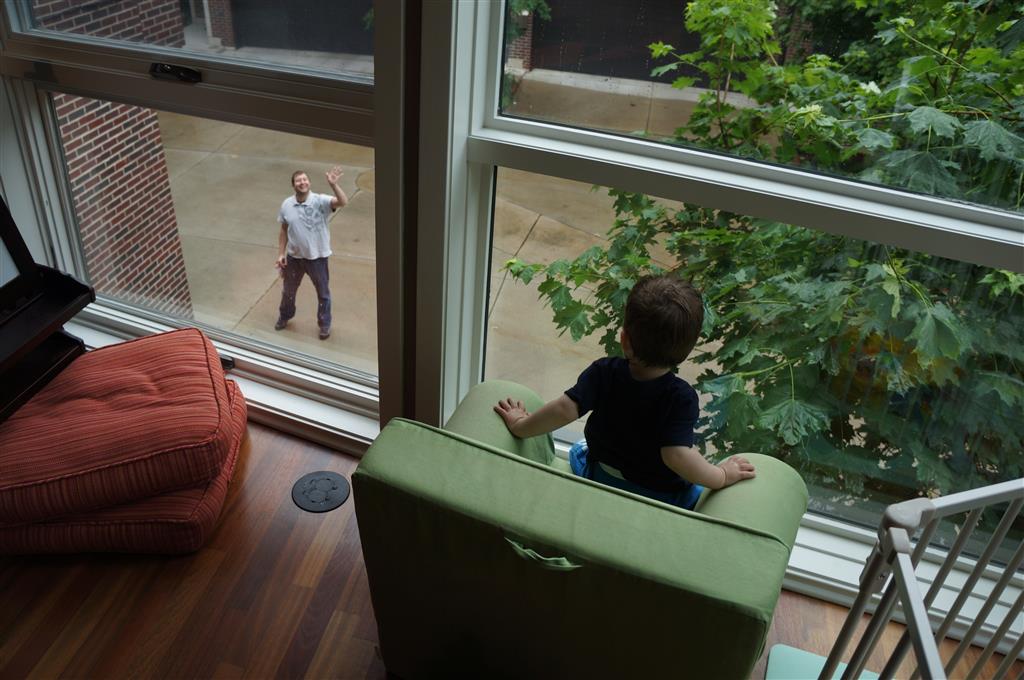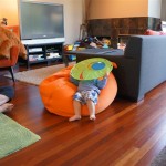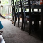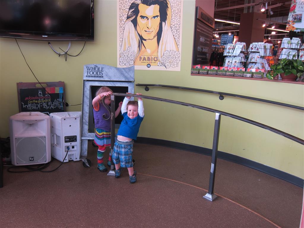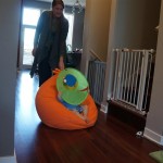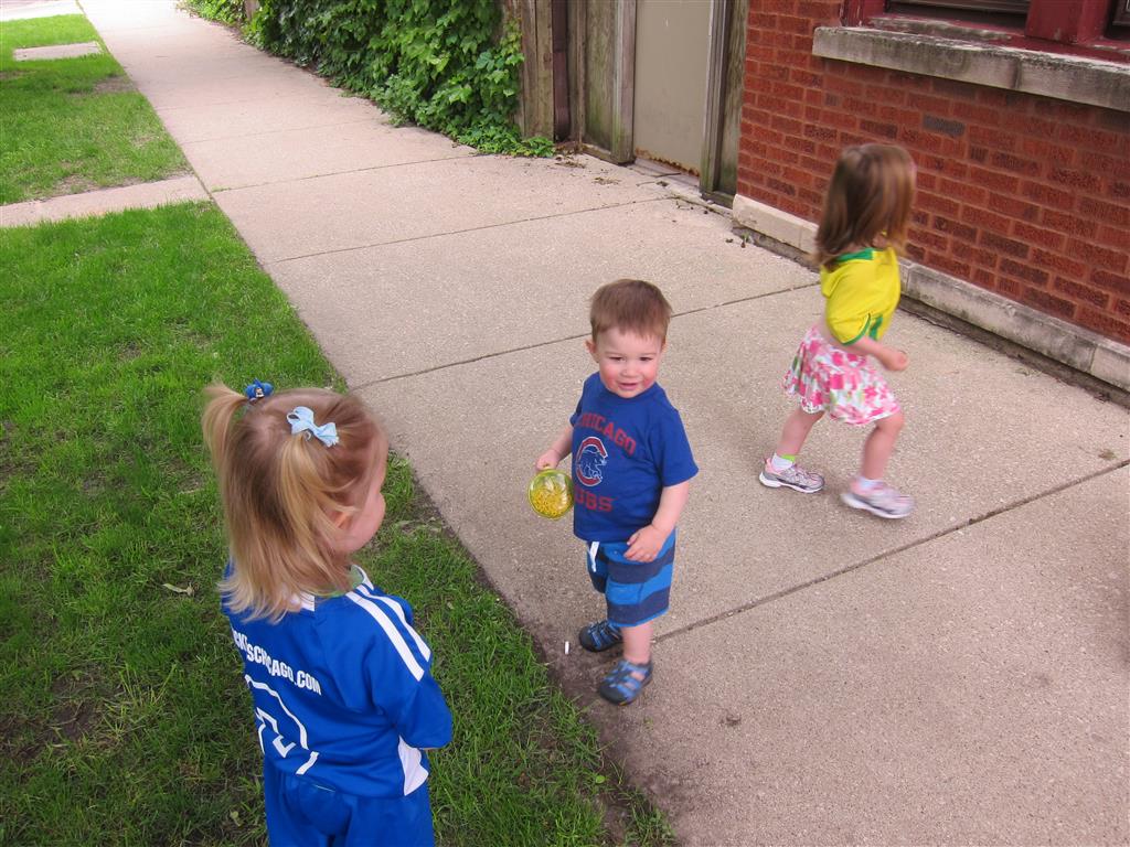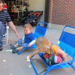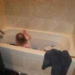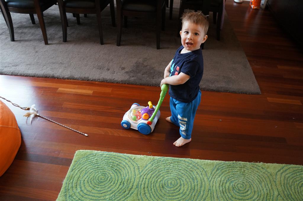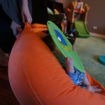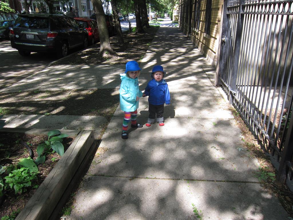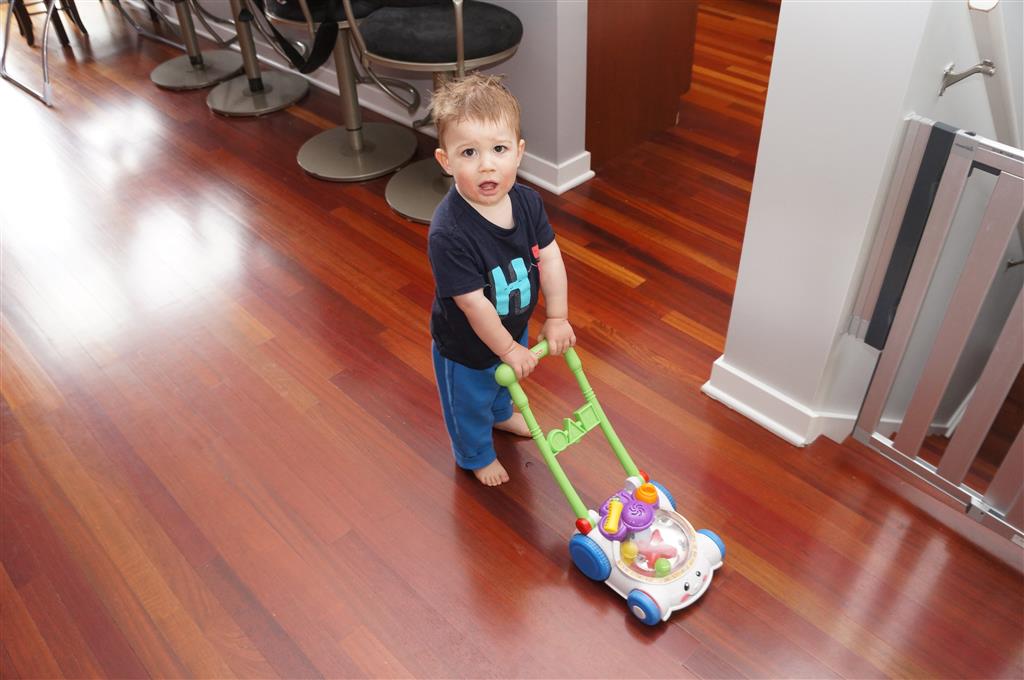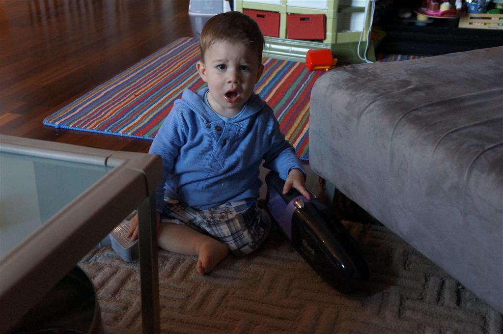 Henry keeps adding words to his repertoire, he has added “diaper”, “pancake” and “waffle”, and has a definite “H” sound for himself and an “E” sound for Eleanor. The swing is still his favorite activity at the park, but the slide is gaining popularity. He likes to put his feet down while on the slide – on Sunday he was headed down a spiral slide, everything looking good, and then when he came around the second bend, he was head first! I think he learned that from our slide at home, where he likes to put his feet down and then dives off the end headfirst into my lap. Hopefully he doesn’t attempt that when there is no one there to catch him.