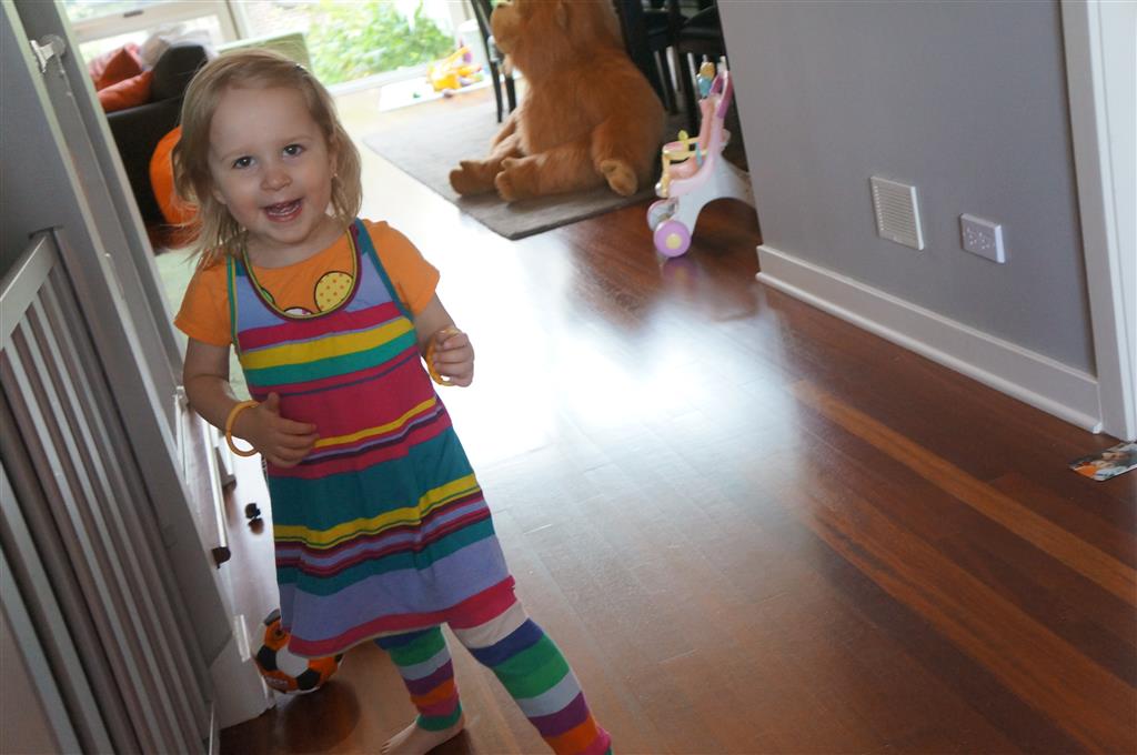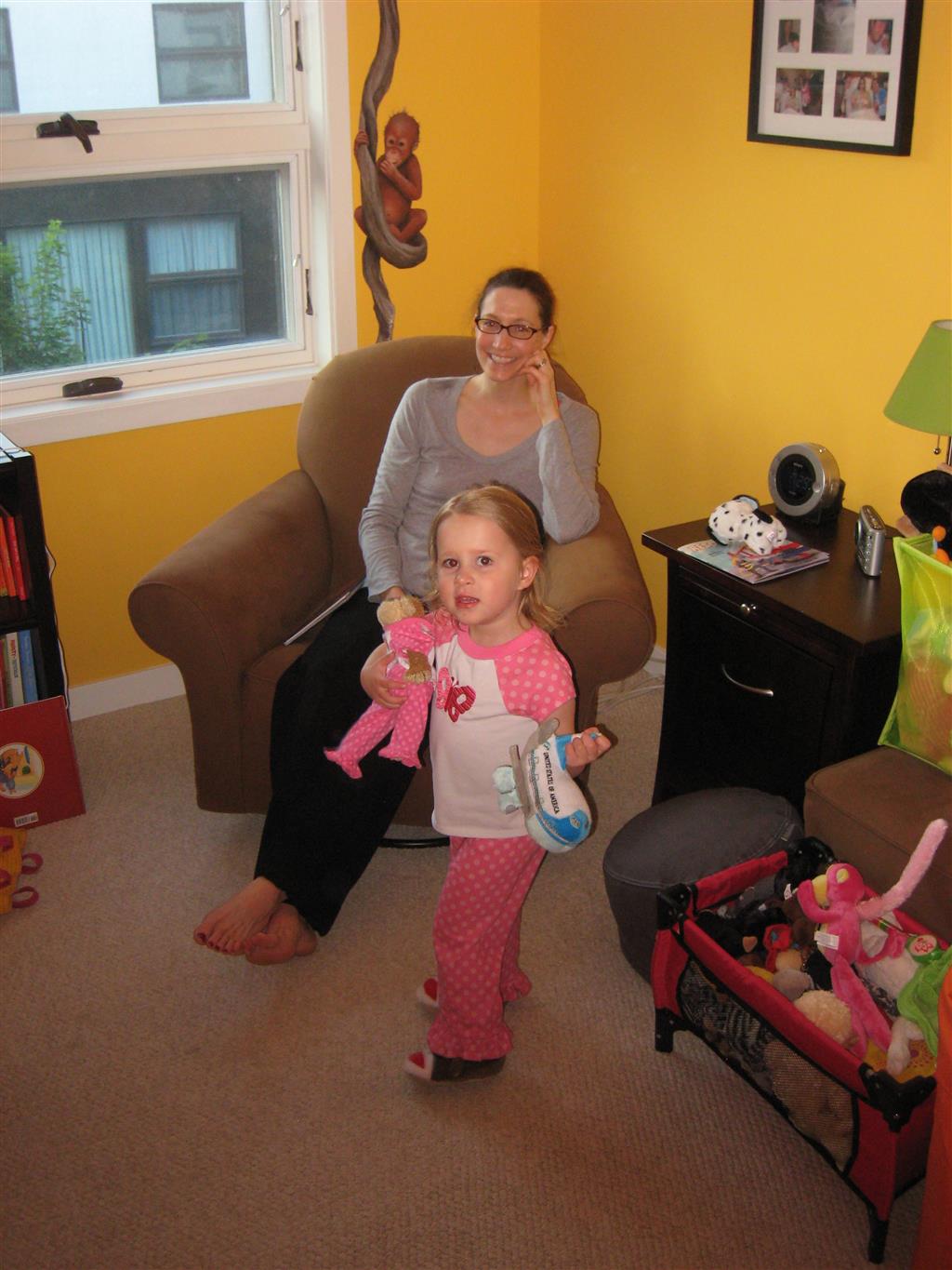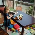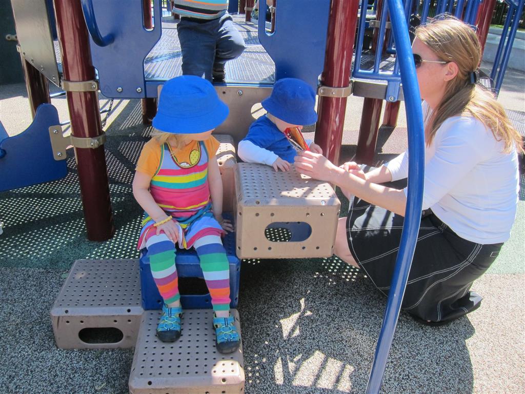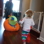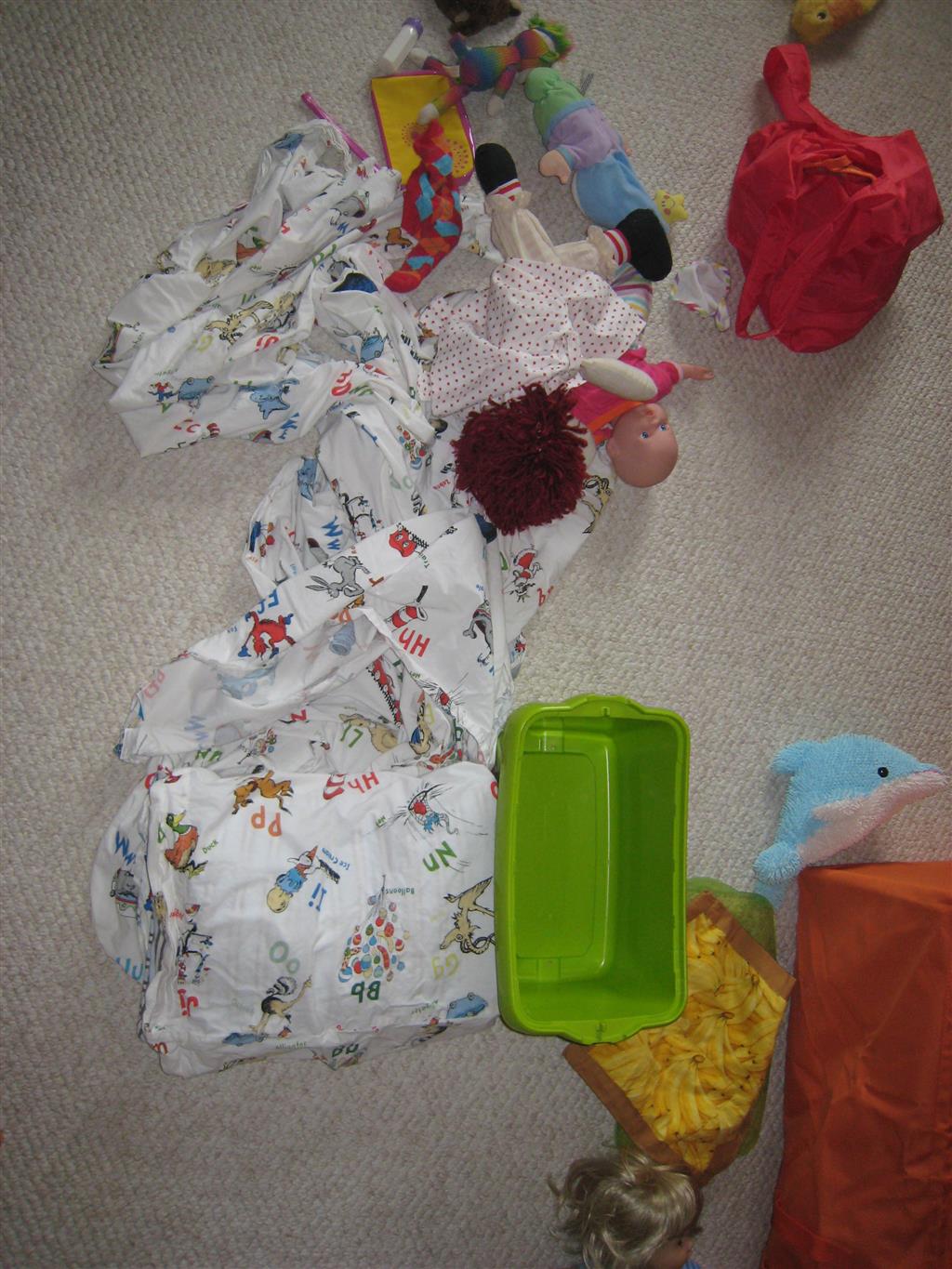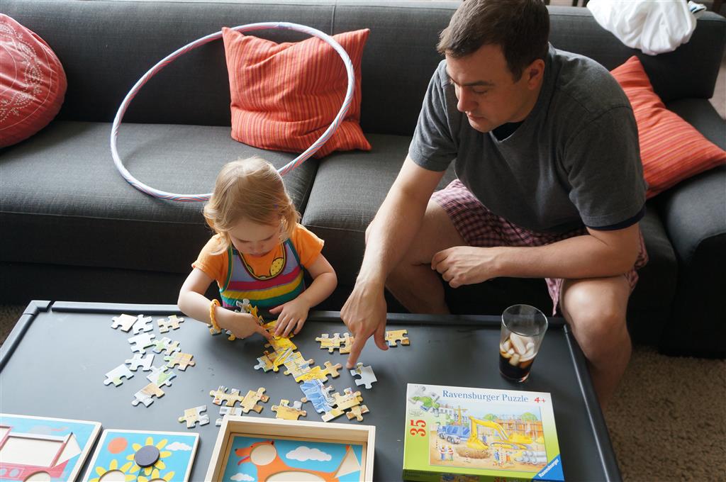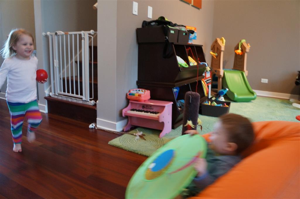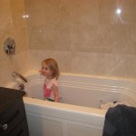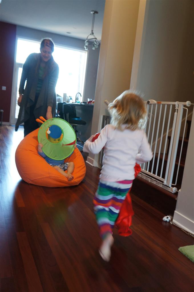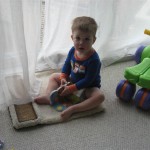 This week Eleanor mastered a rock wall climb at the “ring toss” park (she makes up crazy names for all the parks we go to), and tried out some goggles in the bathtub. We were planning on taking the goggles with us to swim class to encourage some underwater time, but so far they have only made it to the bath. She was very creative with her play during quite time this week – once getting into the linen drawer and setting up “beds” for her friends in three different locations in her room.
