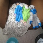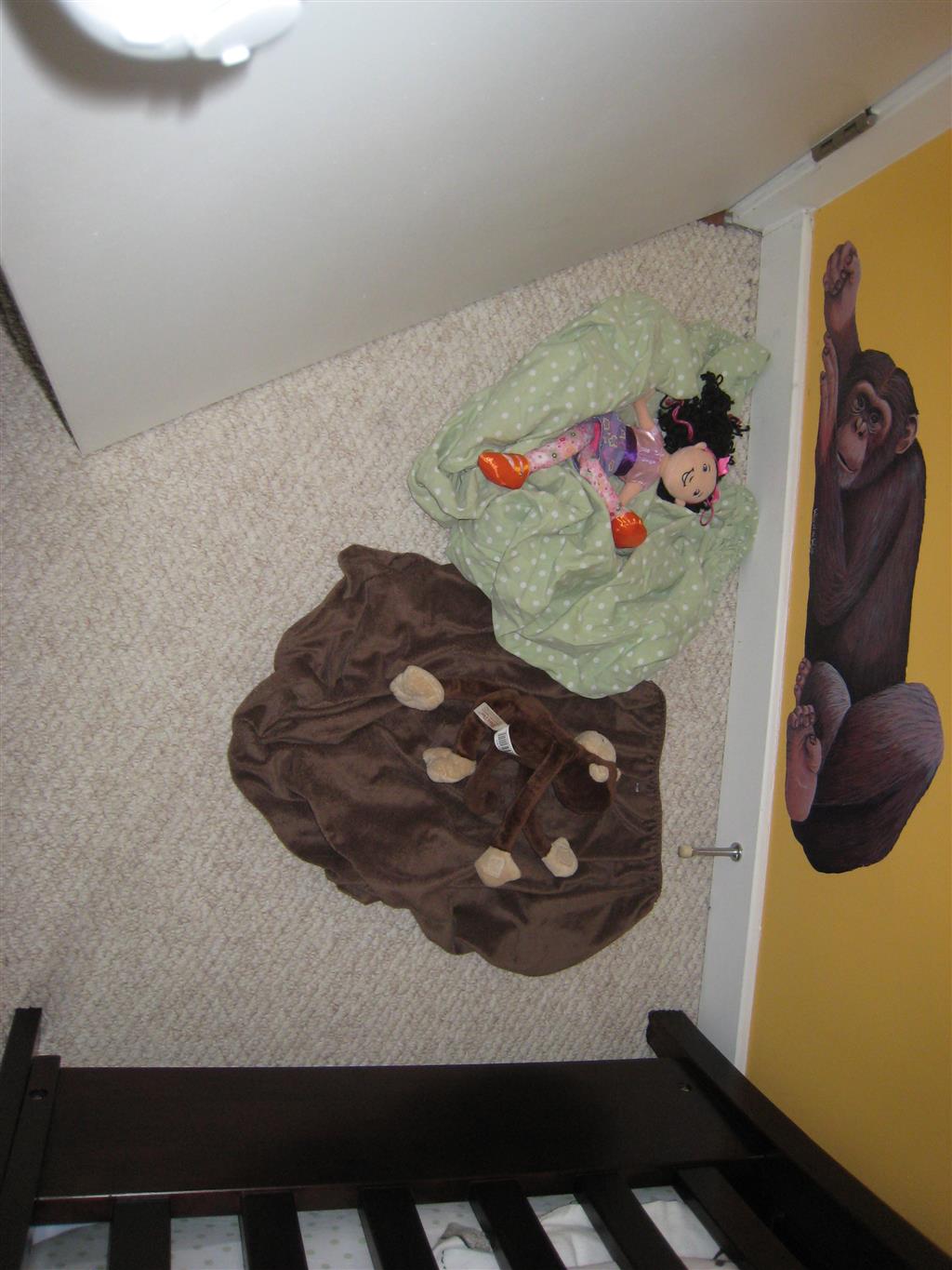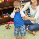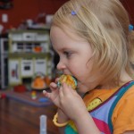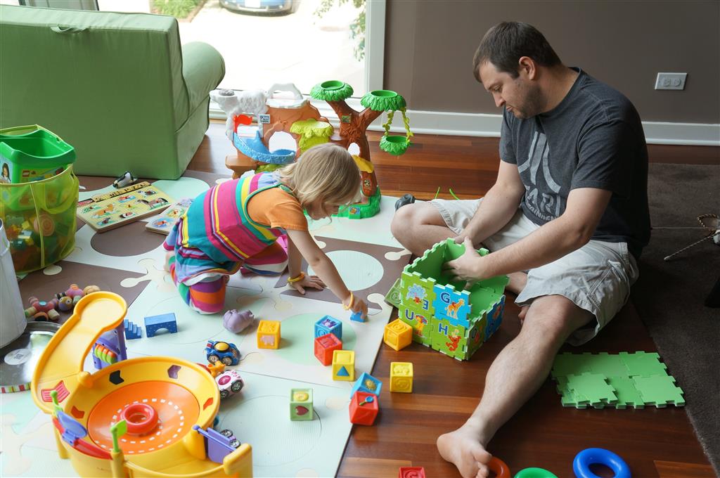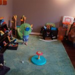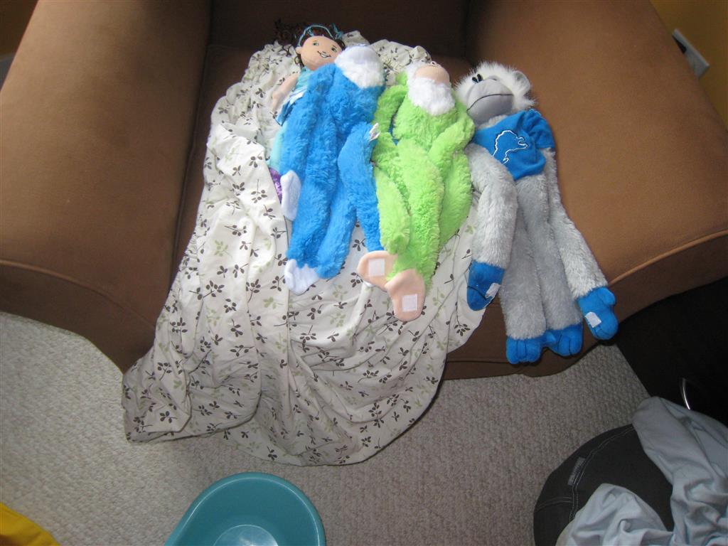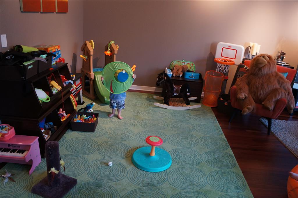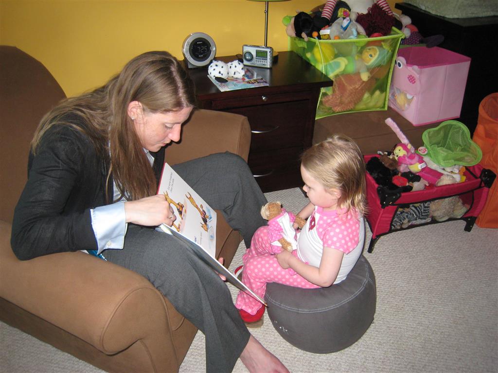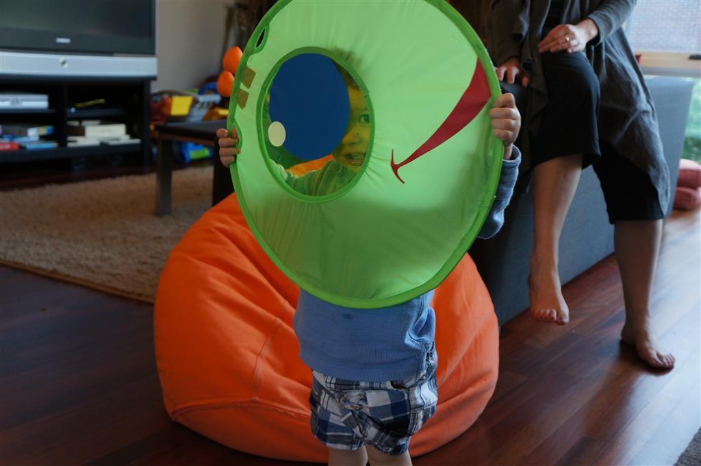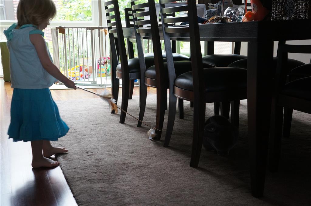 This week Eleanor mastered a rock wall climb at the “ring toss” park (she makes up crazy names for all the parks we go to), and tried out some goggles in the bathtub. We were planning on taking the goggles with us to swim class to encourage some underwater time, but so far they have only made it to the bath. She was very creative with her play during quite time this week – once getting into the linen drawer and setting up “beds” for her friends in three different locations in her room.