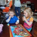 Eleanor and Henry celebrated Uncle B’s birthday this week with some cupcakes and playtime. Uncle B was a real sport putting up with constant request for songs and hot air balloon rides.