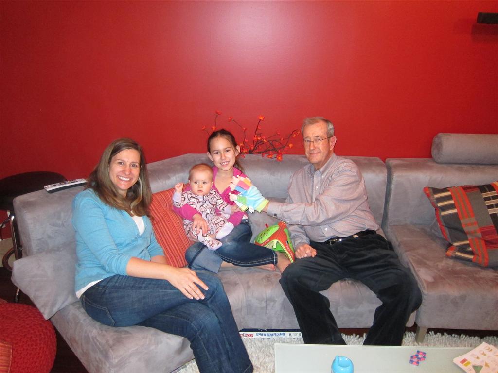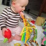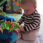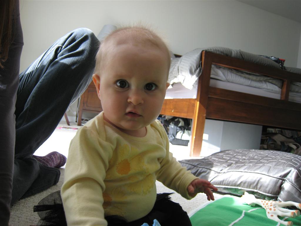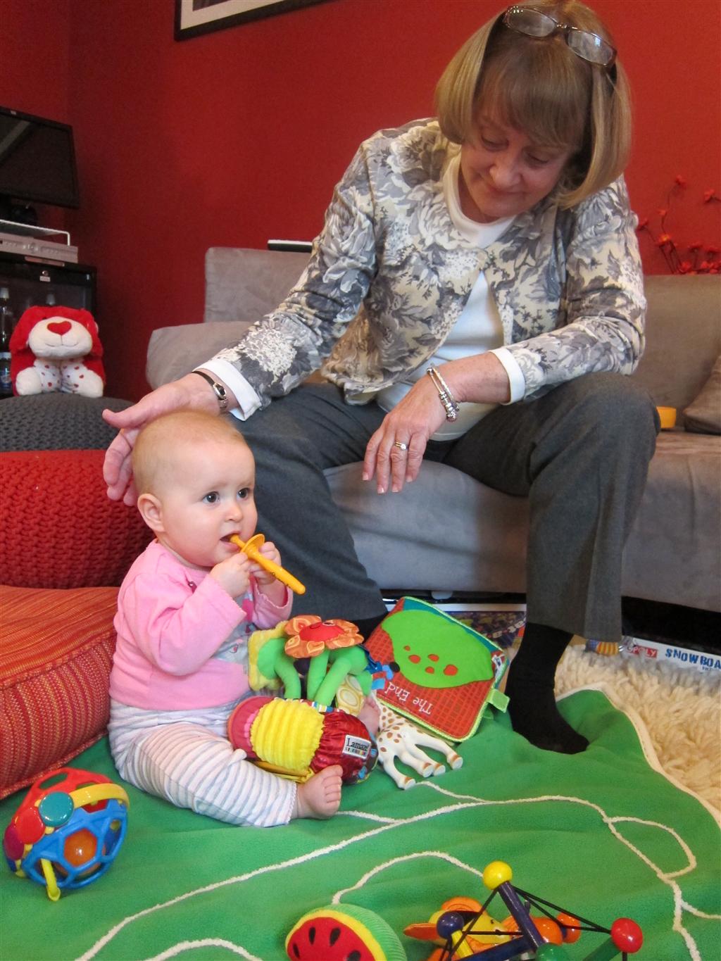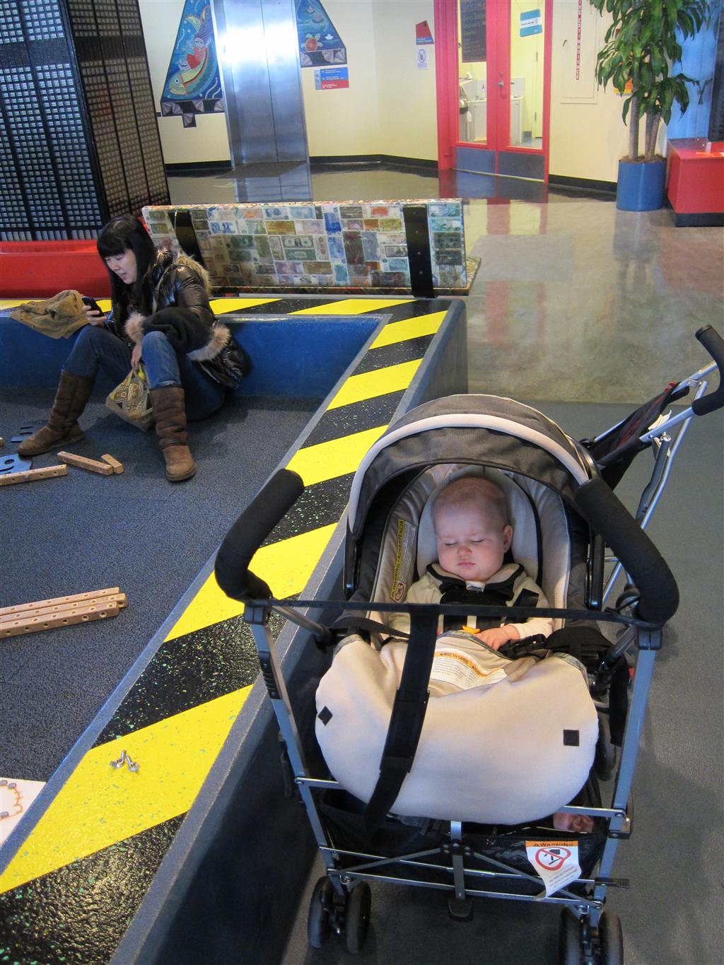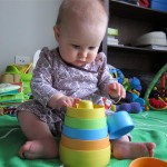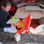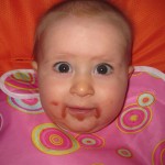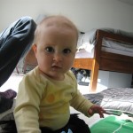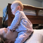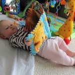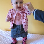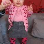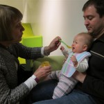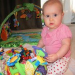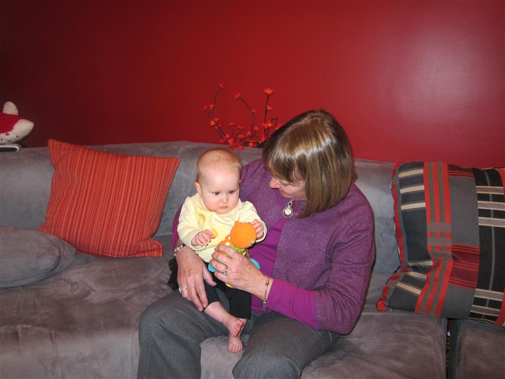 Eleanor had a very busy week this week – especially the end of the week. We started the week celebrating Valentine’s day in a fun outfit, and eating blueberries for the first time (messy!). On Thursday we discovered the much delayed top tooth finally coming through. On Friday, Dad played hookie and went along to baby and me class with Ellie and Mom. And on Friday afternoon, Grandma, Grandpa, Auntie Susan, and cousins Mackenzie, Jack and Ben came for a visit. What fun! On Saturday we went with the whole crew to Navy Pier to visit the hands on museum. Most of the activities were targeting a bit older age – but there were a few “Non Walkers Only” areas that Ellie got to play in. After that, we went to the Sears (does anyone use the new name, Willis?) Tower for some great views of the city. Mackenzie even convinced Uncle B to come out into the Plexiglas box. On Sunday we played at home with the cousins until they had to hit the road for home.