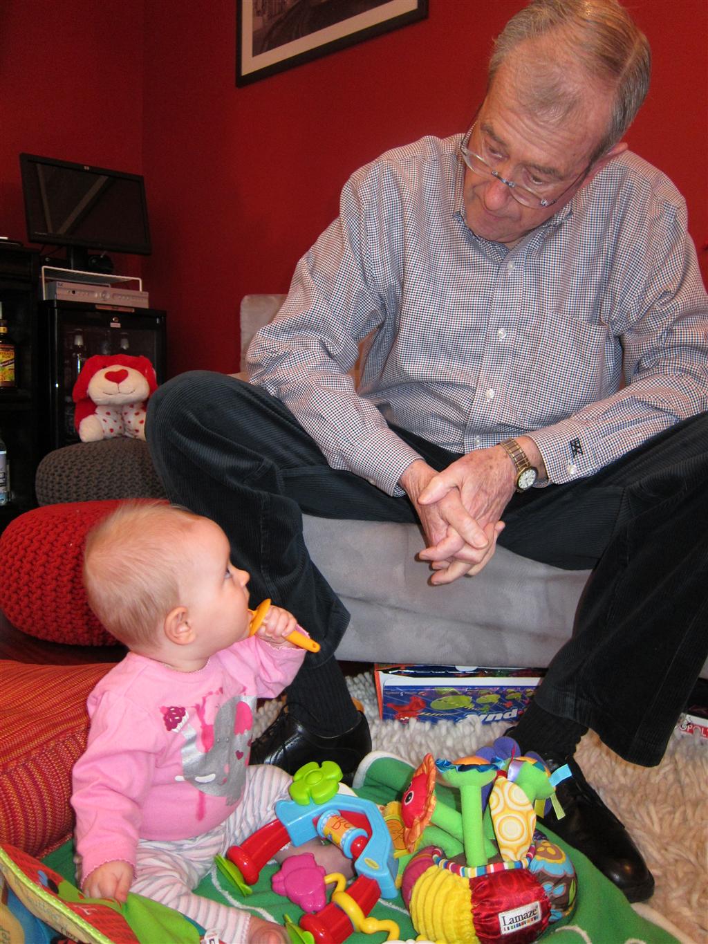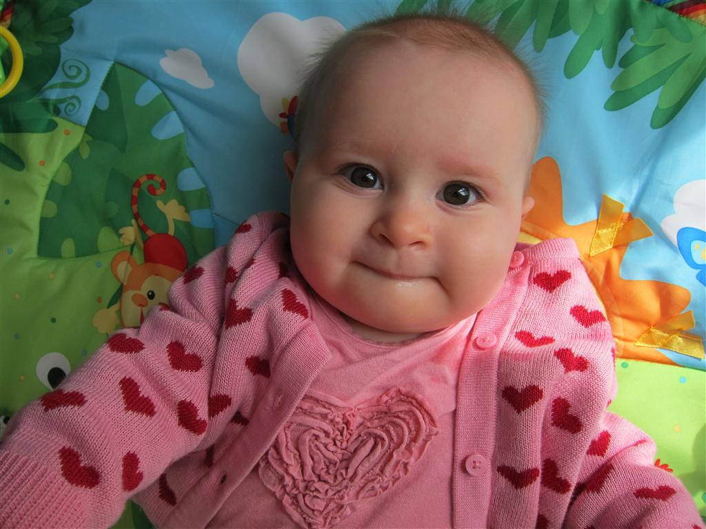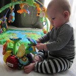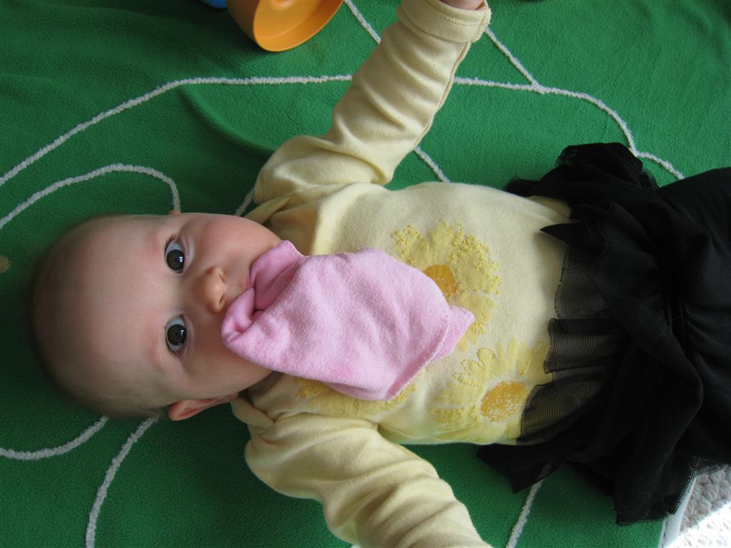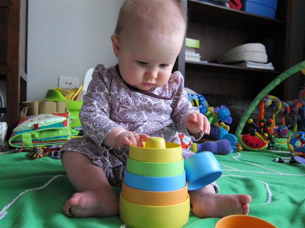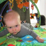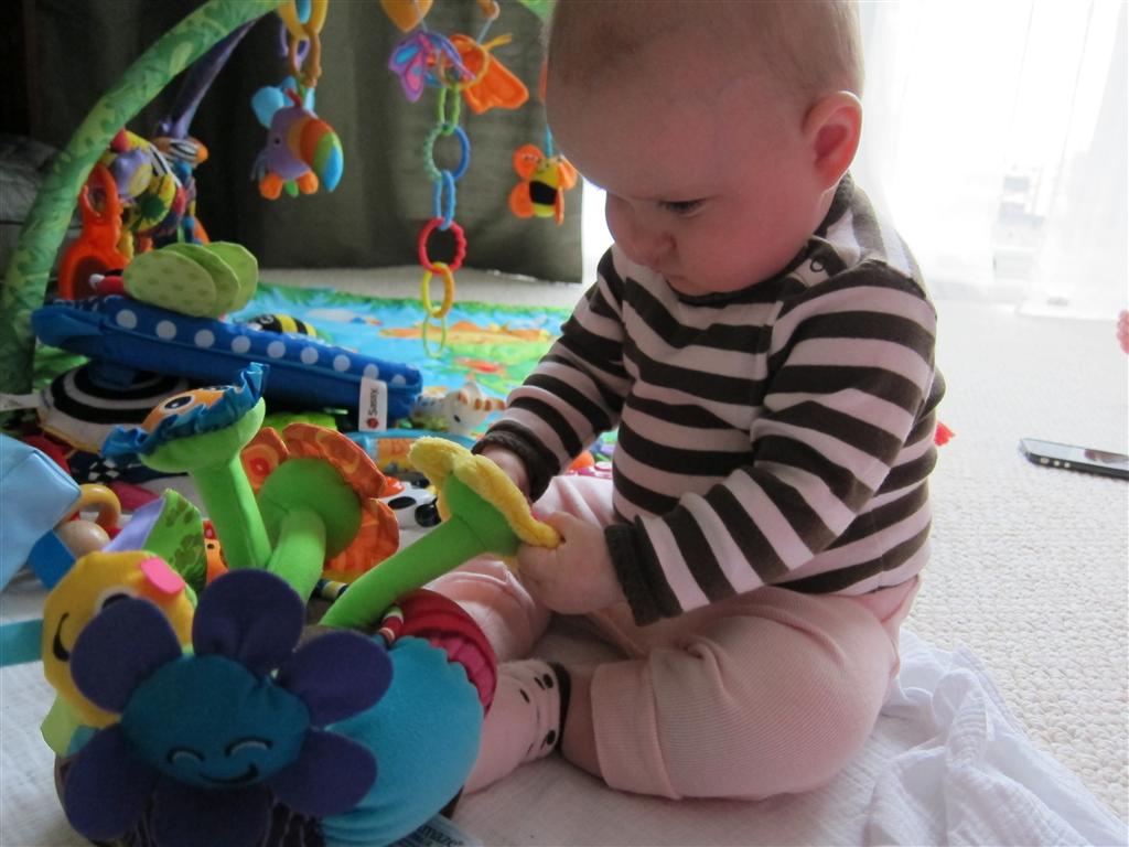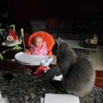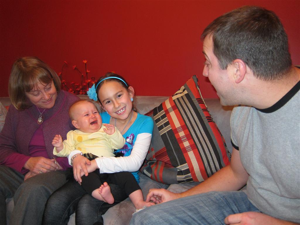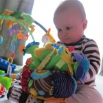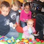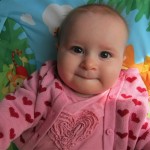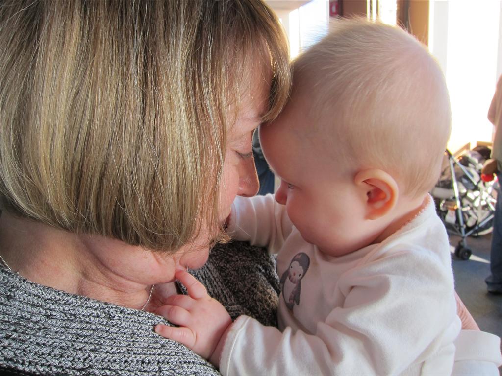 Eleanor had a very busy week this week – especially the end of the week. We started the week celebrating Valentine’s day in a fun outfit, and eating blueberries for the first time (messy!). On Thursday we discovered the much delayed top tooth finally coming through. On Friday, Dad played hookie and went along to baby and me class with Ellie and Mom. And on Friday afternoon, Grandma, Grandpa, Auntie Susan, and cousins Mackenzie, Jack and Ben came for a visit. What fun! On Saturday we went with the whole crew to Navy Pier to visit the hands on museum. Most of the activities were targeting a bit older age – but there were a few “Non Walkers Only” areas that Ellie got to play in. After that, we went to the Sears (does anyone use the new name, Willis?) Tower for some great views of the city. Mackenzie even convinced Uncle B to come out into the Plexiglas box. On Sunday we played at home with the cousins until they had to hit the road for home.