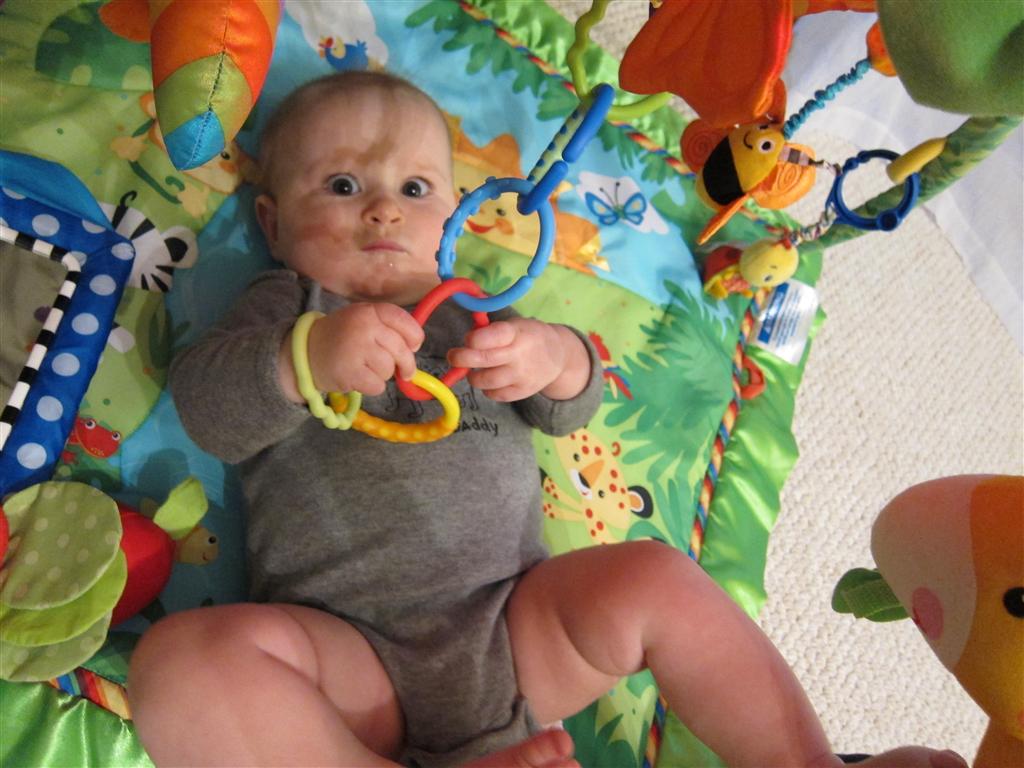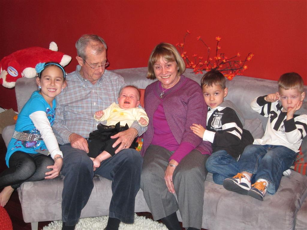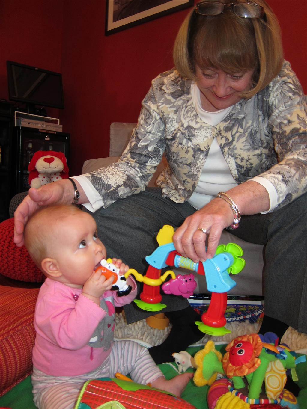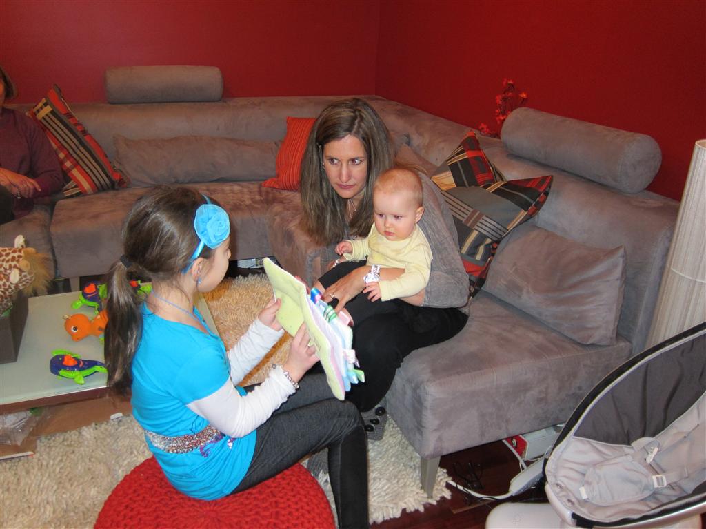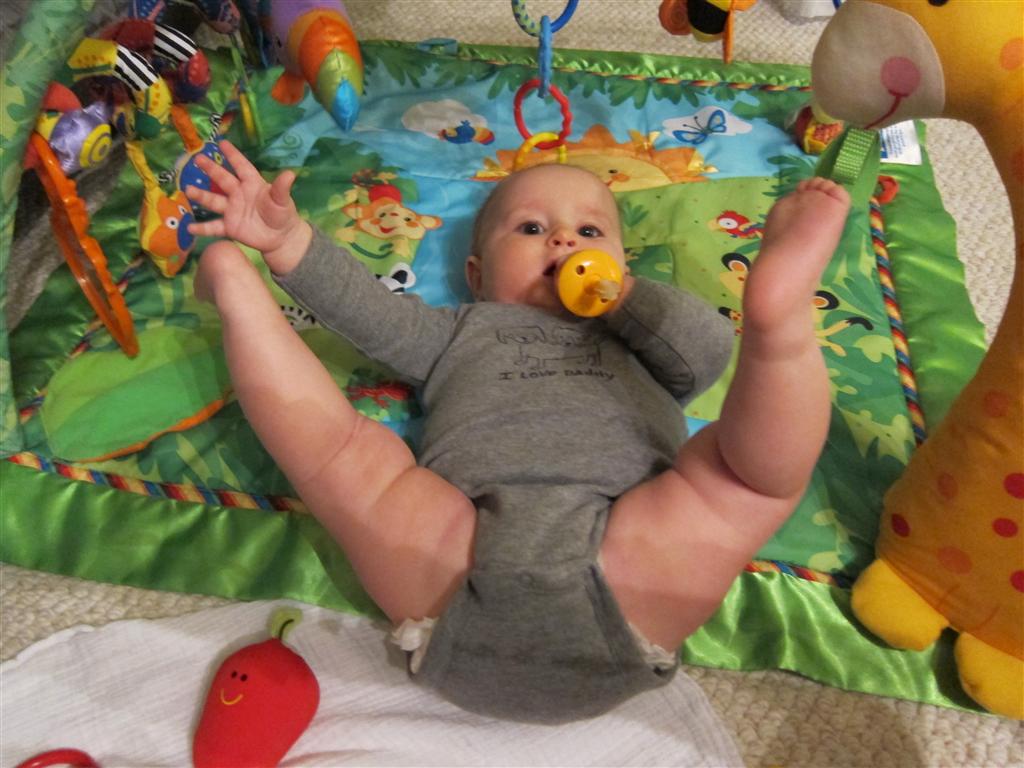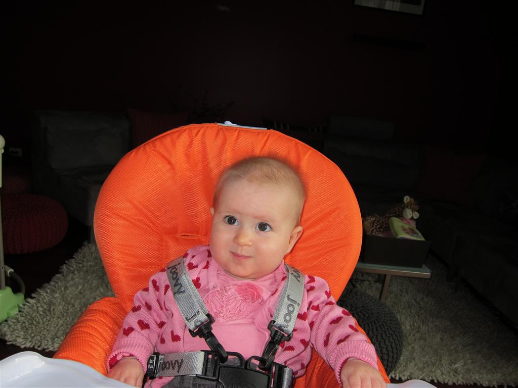 Eleanor had a very busy week this week – especially the end of the week. We started the week celebrating Valentine’s day in a fun outfit, and eating blueberries for the first time (messy!). On Thursday we discovered the much delayed top tooth finally coming through. On Friday, Dad played hookie and went along to baby and me class with Ellie and Mom. And on Friday afternoon, Grandma, Grandpa, Auntie Susan, and cousins Mackenzie, Jack and Ben came for a visit. What fun! On Saturday we went with the whole crew to Navy Pier to visit the hands on museum. Most of the activities were targeting a bit older age – but there were a few “Non Walkers Only” areas that Ellie got to play in. After that, we went to the Sears (does anyone use the new name, Willis?) Tower for some great views of the city. Mackenzie even convinced Uncle B to come out into the Plexiglas box. On Sunday we played at home with the cousins until they had to hit the road for home.