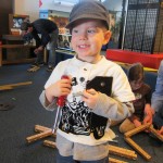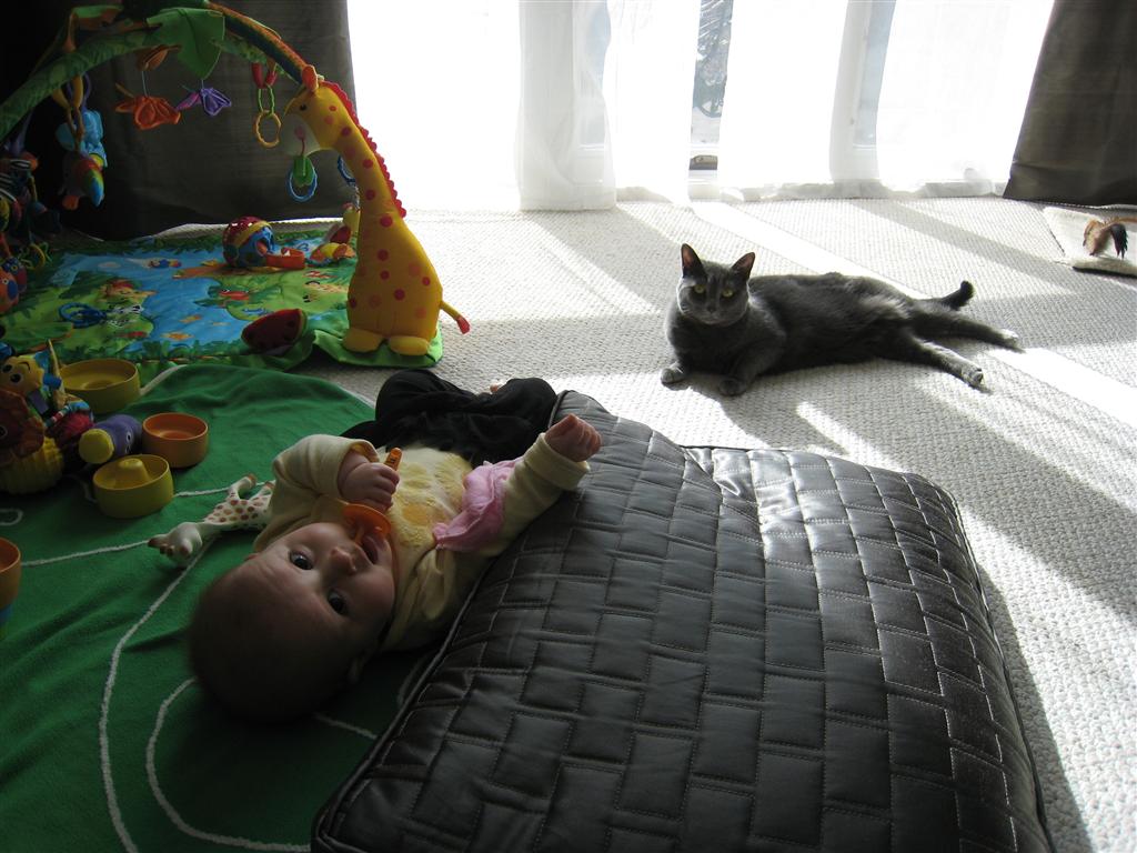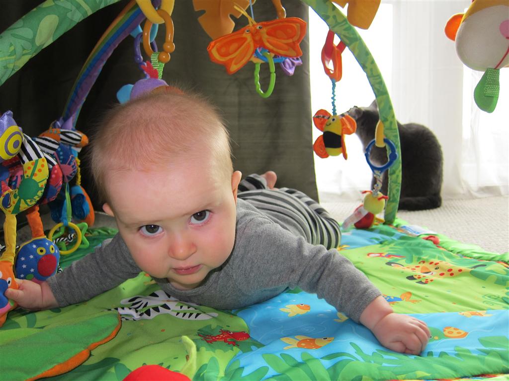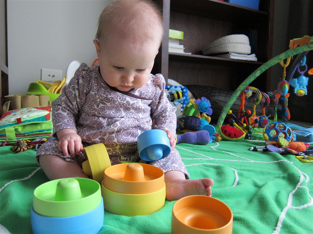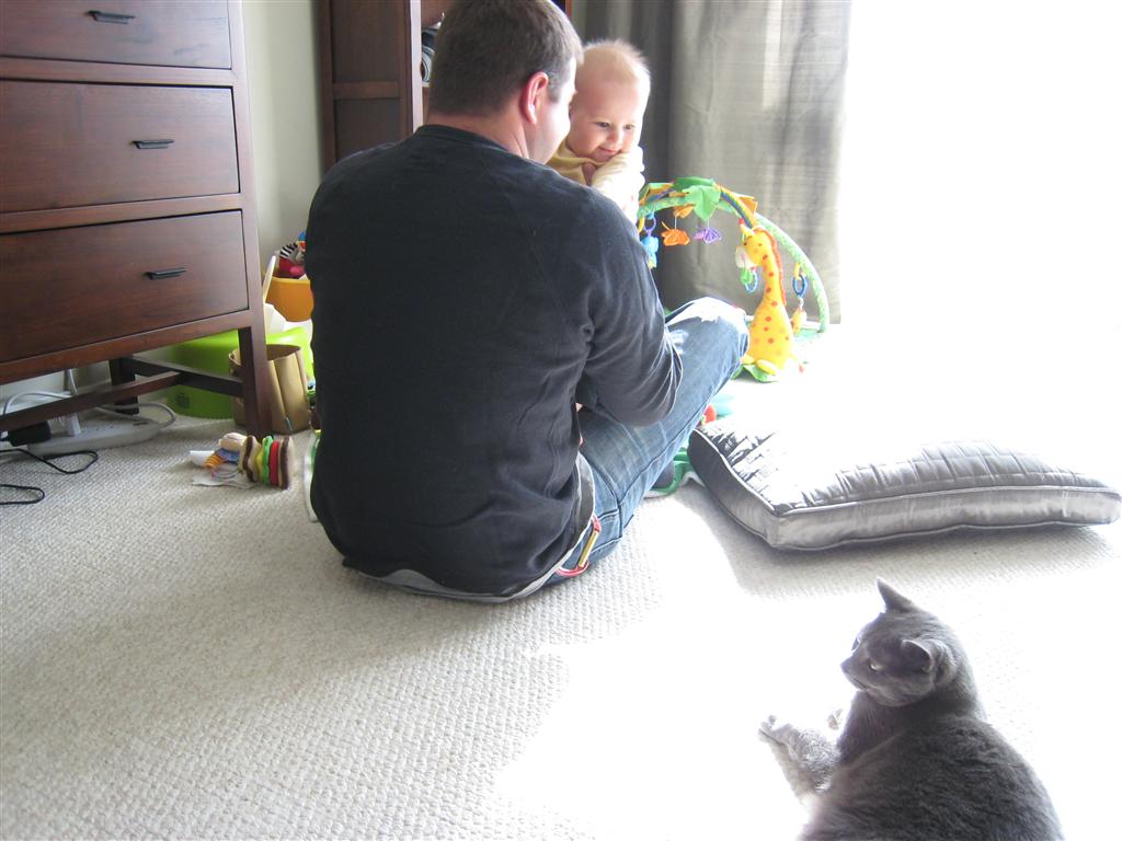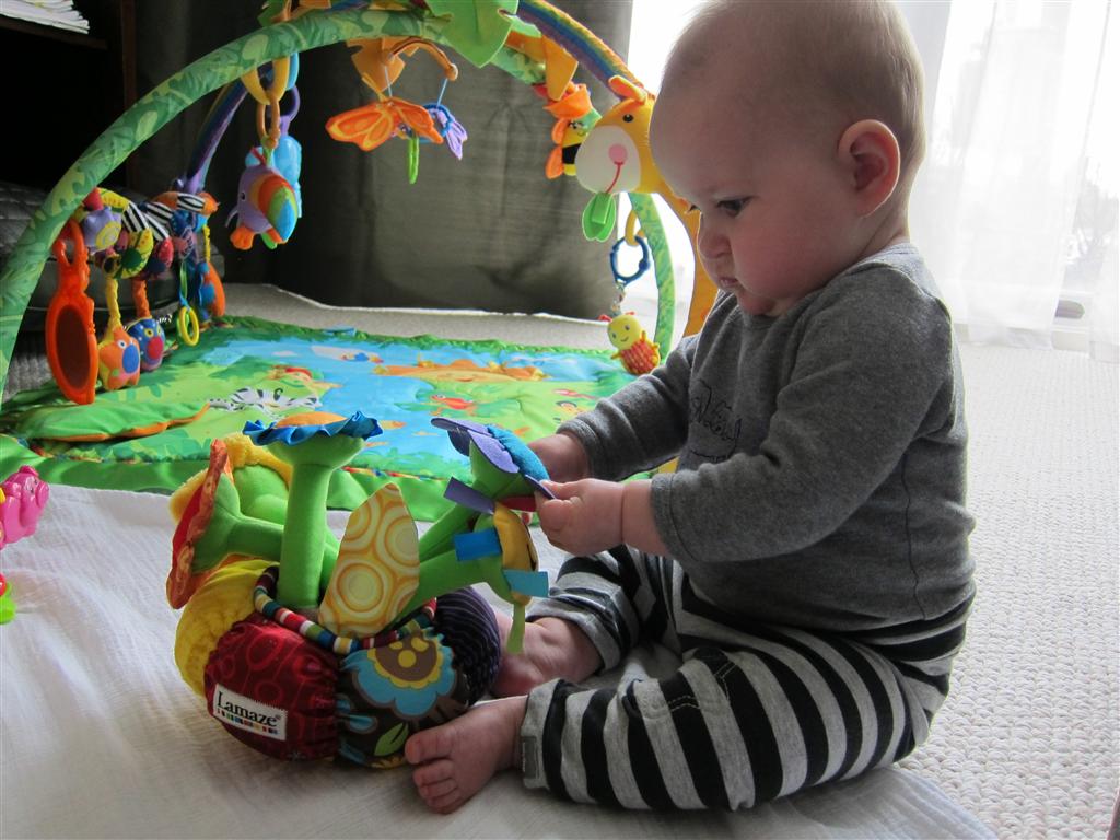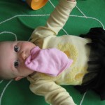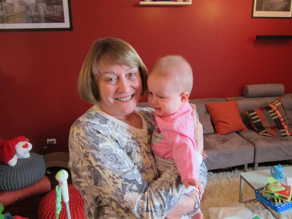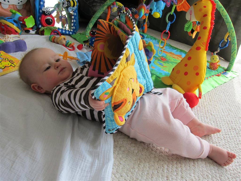 Eleanor had a very busy week this week – especially the end of the week. We started the week celebrating Valentine’s day in a fun outfit, and eating blueberries for the first time (messy!). On Thursday we discovered the much delayed top tooth finally coming through. On Friday, Dad played hookie and went along to baby and me class with Ellie and Mom. And on Friday afternoon, Grandma, Grandpa, Auntie Susan, and cousins Mackenzie, Jack and Ben came for a visit. What fun! On Saturday we went with the whole crew to Navy Pier to visit the hands on museum. Most of the activities were targeting a bit older age – but there were a few “Non Walkers Only” areas that Ellie got to play in. After that, we went to the Sears (does anyone use the new name, Willis?) Tower for some great views of the city. Mackenzie even convinced Uncle B to come out into the Plexiglas box. On Sunday we played at home with the cousins until they had to hit the road for home.