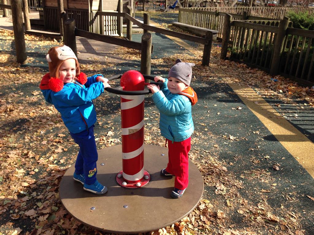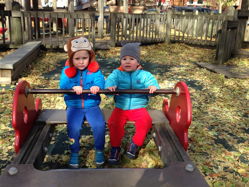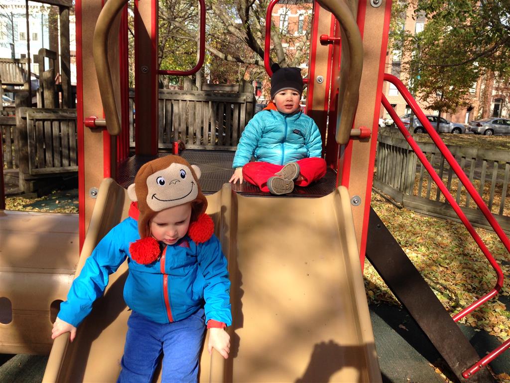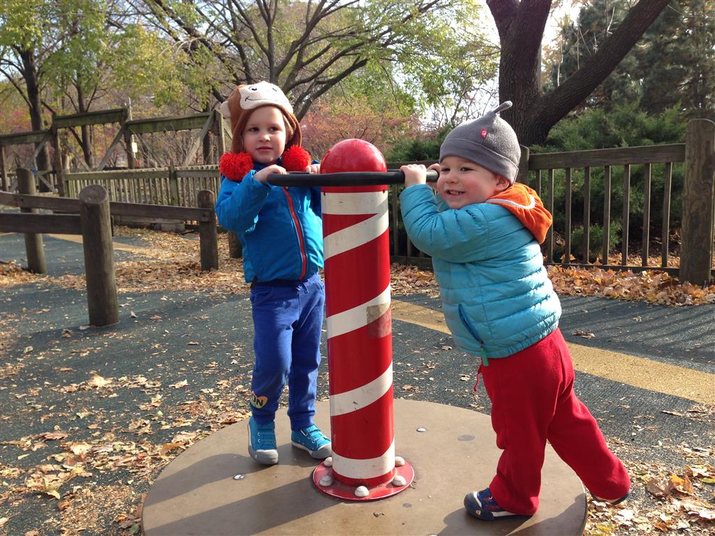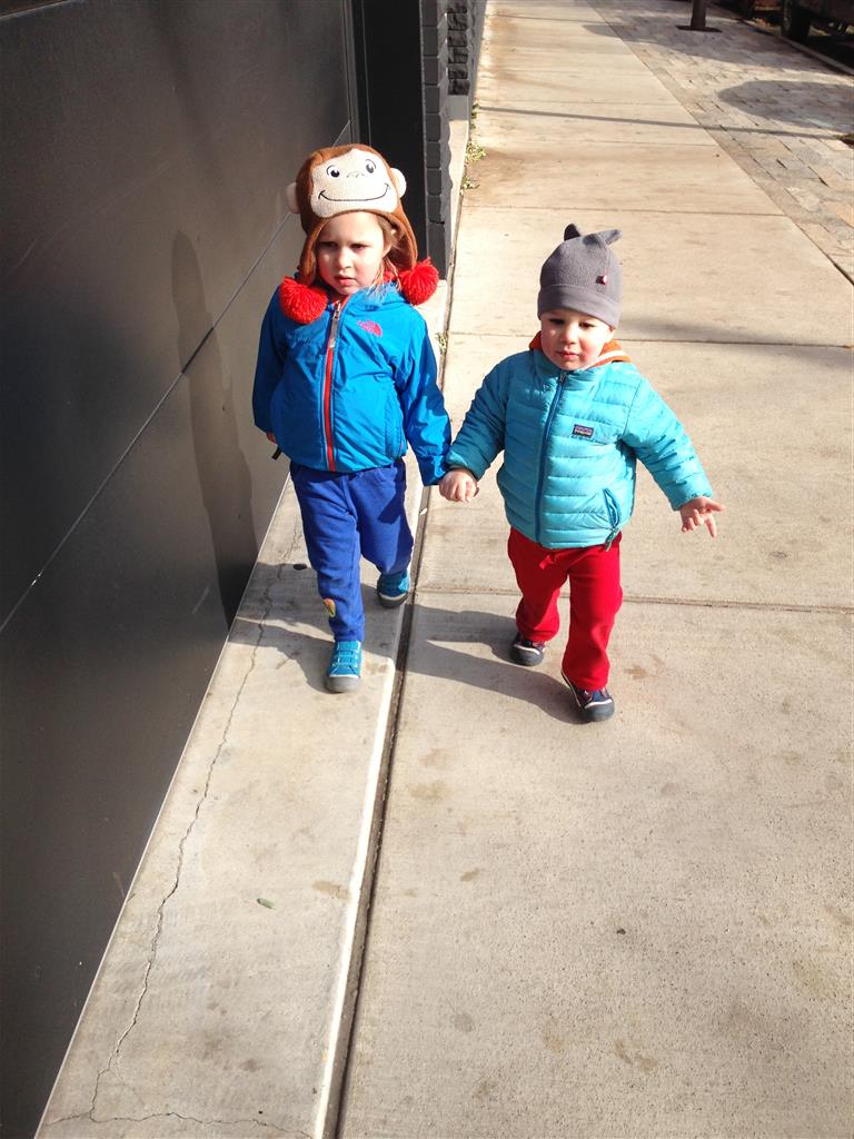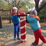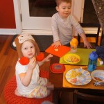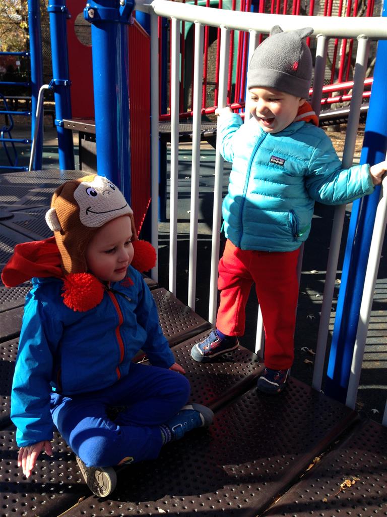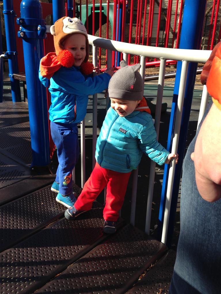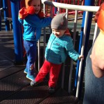 Henry and Eleanor were on the move this week, with lots of meals out, park visits, and a trip down to the children’s museum. Eleanor has been into being Henry’s “Mom” this week – Mom and Dad have been relegated to “Grandma” and “Grandpa”, and Uncle B got dragged in as “Dad”. She has been holding his hand a lot and running over when he gets frustrated or asks for help – but Henry isn’t convinced, there is also a fair amount of mother henning, Eleanor telling Henry what he can and can’t do, giving him warnings and everything.