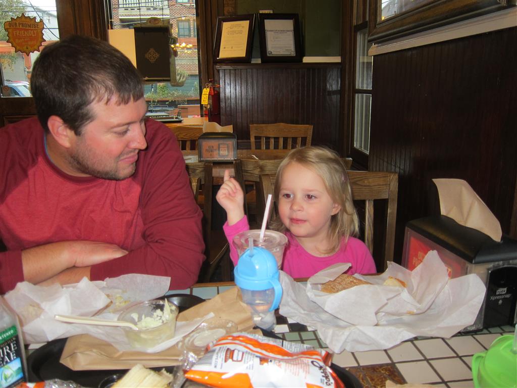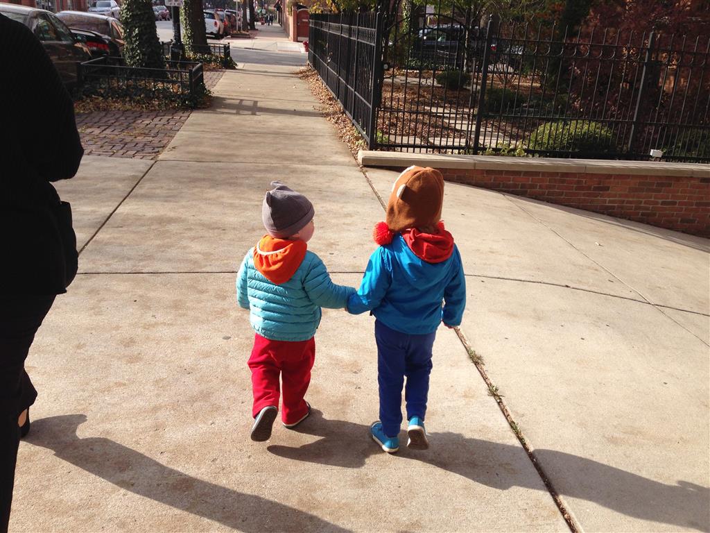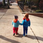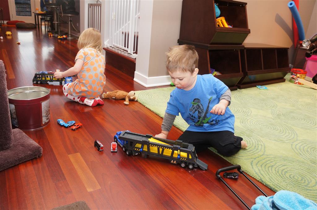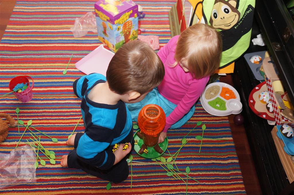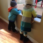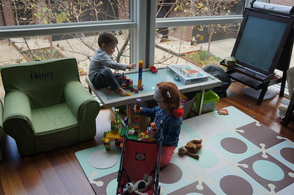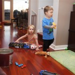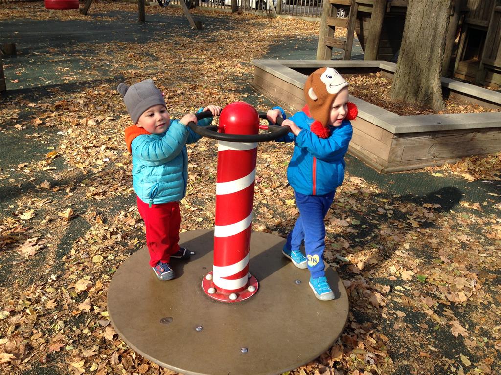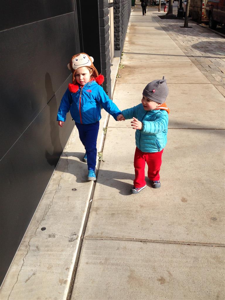 Henry and Eleanor were on the move this week, with lots of meals out, park visits, and a trip down to the children’s museum. Eleanor has been into being Henry’s “Mom” this week – Mom and Dad have been relegated to “Grandma” and “Grandpa”, and Uncle B got dragged in as “Dad”. She has been holding his hand a lot and running over when he gets frustrated or asks for help – but Henry isn’t convinced, there is also a fair amount of mother henning, Eleanor telling Henry what he can and can’t do, giving him warnings and everything.