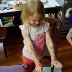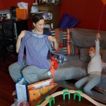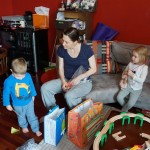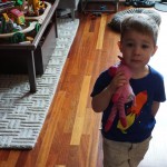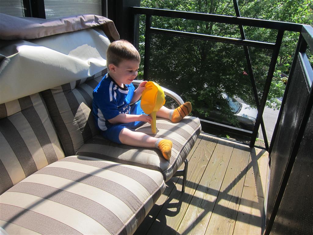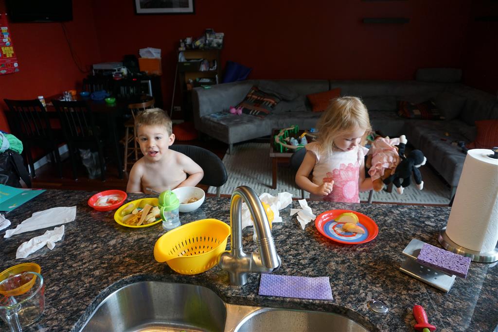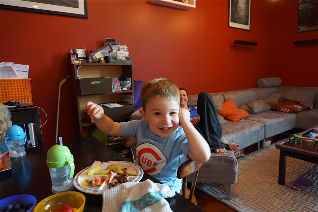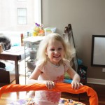 Wow, we had a super fun week welcoming up cousin Paige for a visit. Eleanor and Henry had a blast exploring the Hancock Tower with her, and really like it when she read them stories. Henry graciously gave up his room for Paige, and he moved into Eleanor’s room. They both had a blast, but they didn’t get too much sleep….On Tuesday they were still up having a two person “dance party” at 10:00! On Thursday we had an excellent soccer class – Eleanor made a deal with Mom that if she could bring Monkey to soccer, she would listen and participate in all the drills – and it worked! Not only did Eleanor run all of the drills with full enthusiasm, Monkey did the drills too – Ha! Henry also did a great job at soccer – after Dad sat on the bench he did each of the drills, even building cone towers all by himself! Thursday also brought a fun visit to Lala’s house, where Eleanor and Lala planted a seed for a bit of a science experiment.