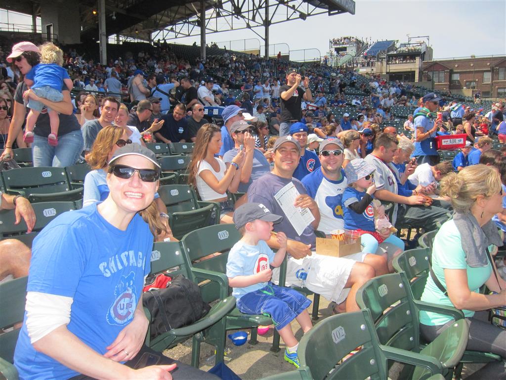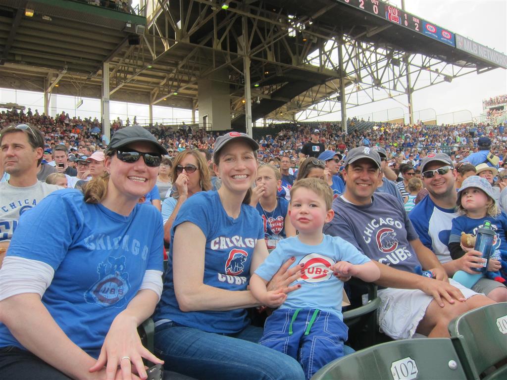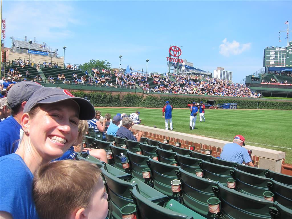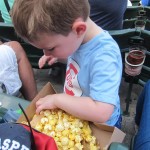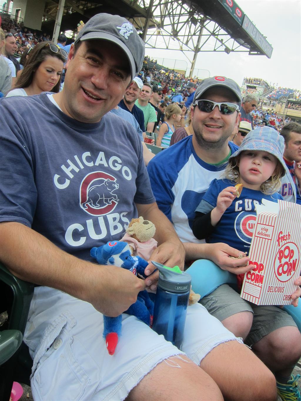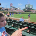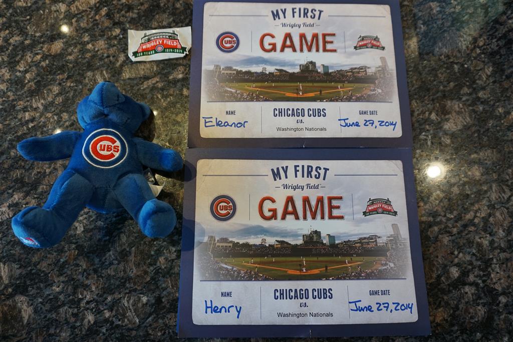 On Friday Eleanor and Henry went to their first Cubs game. Not surprisingly, the food was the biggest hit, with Eleanor hitting the popcorn and pretzels hard, and Henry taking down popcorn, pretzels and ice cream, and even cracking and eating shelled peanuts! He loved that he could just drop the shells onto the floor! He also tried Uncle B’s lemon chill, but he didn’t love that one. Alas, no malt cups – I’m not sure I ever made it through a game as a kid without at least sharing a malt cup….