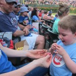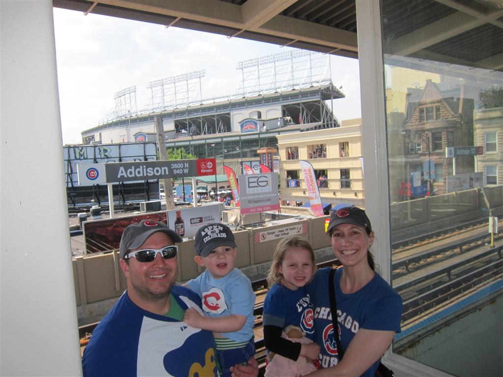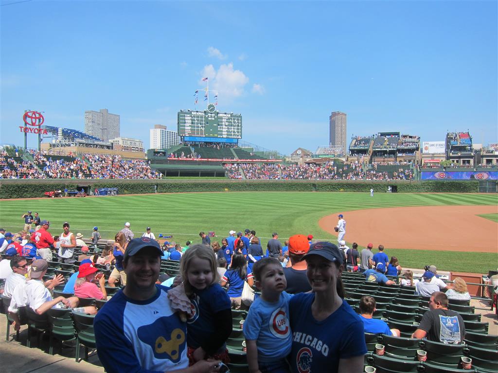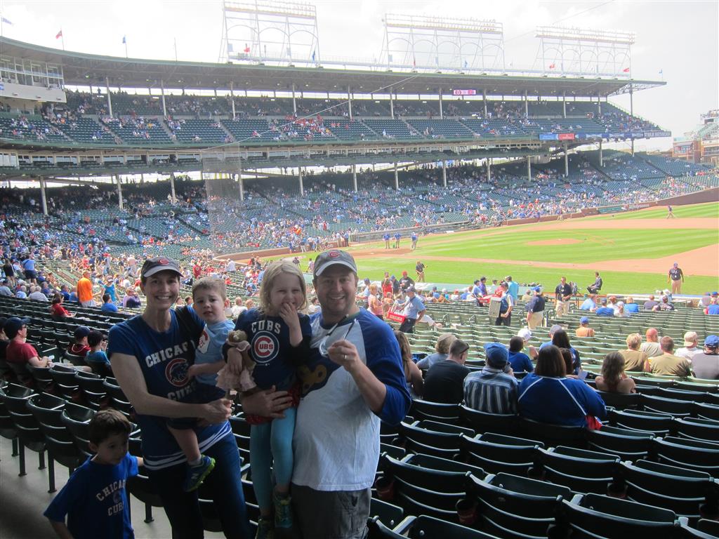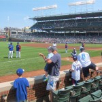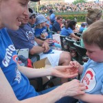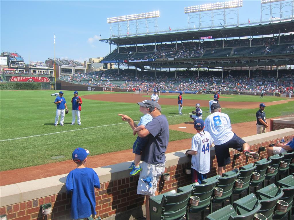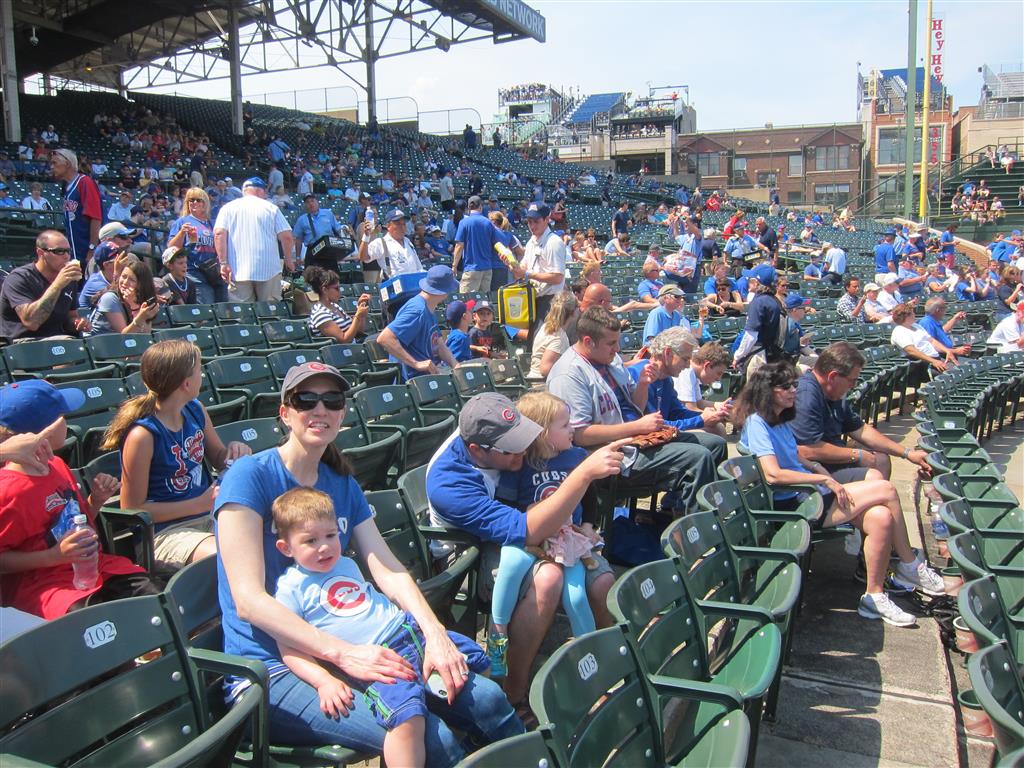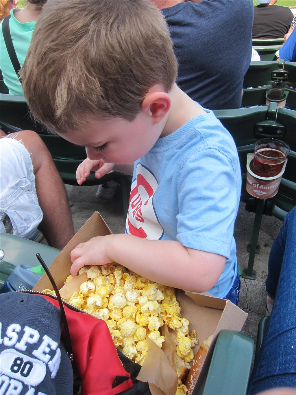 On Friday Eleanor and Henry went to their first Cubs game. Not surprisingly, the food was the biggest hit, with Eleanor hitting the popcorn and pretzels hard, and Henry taking down popcorn, pretzels and ice cream, and even cracking and eating shelled peanuts! He loved that he could just drop the shells onto the floor! He also tried Uncle B’s lemon chill, but he didn’t love that one. Alas, no malt cups – I’m not sure I ever made it through a game as a kid without at least sharing a malt cup….