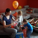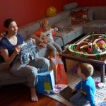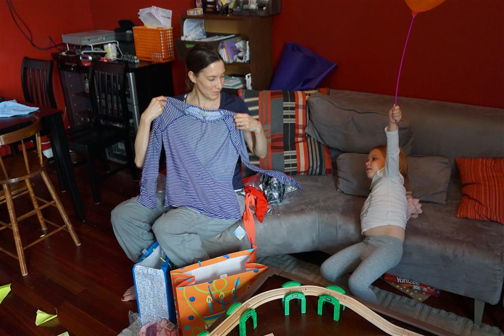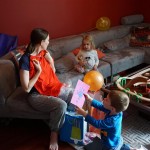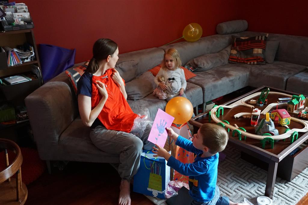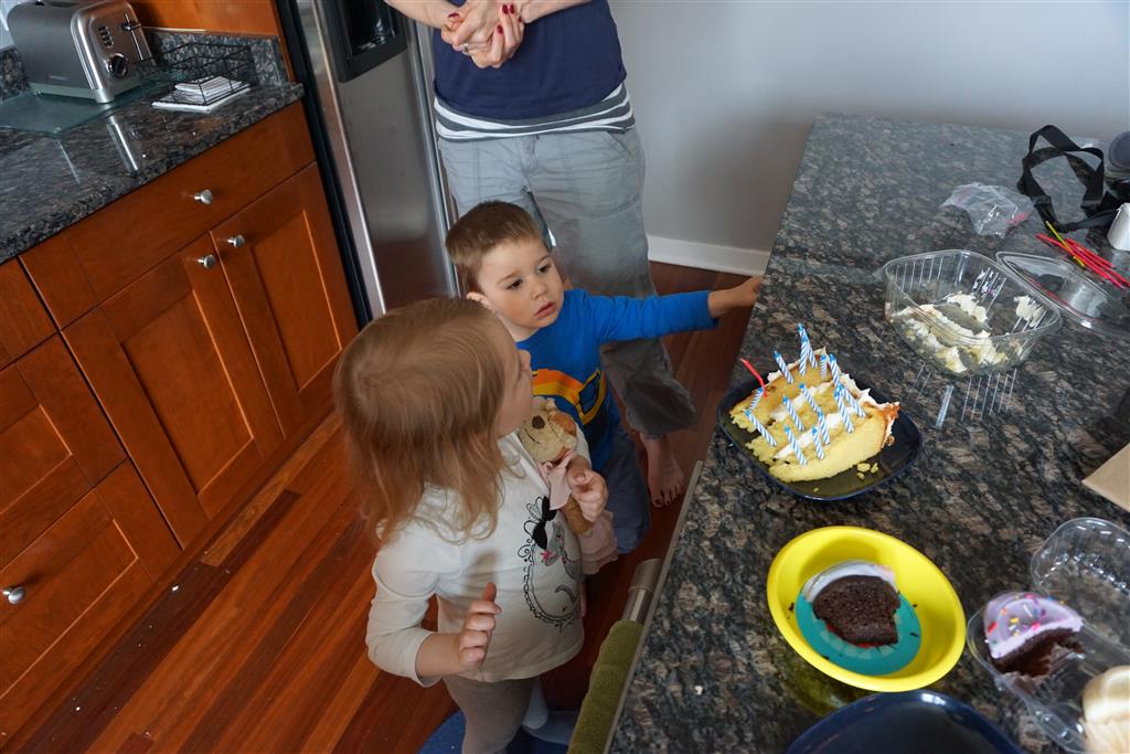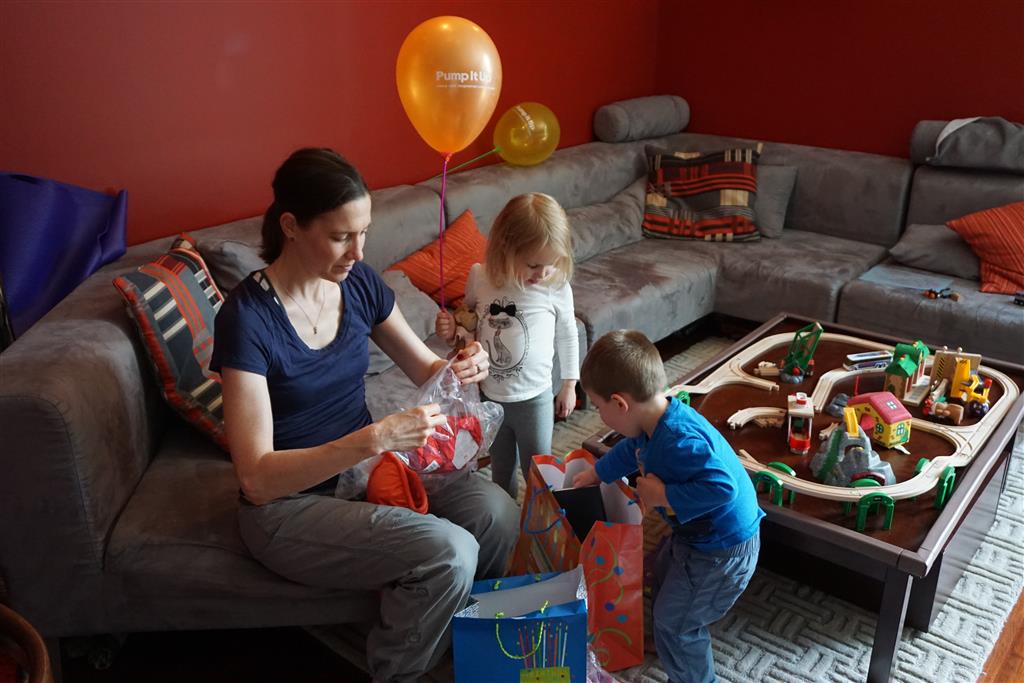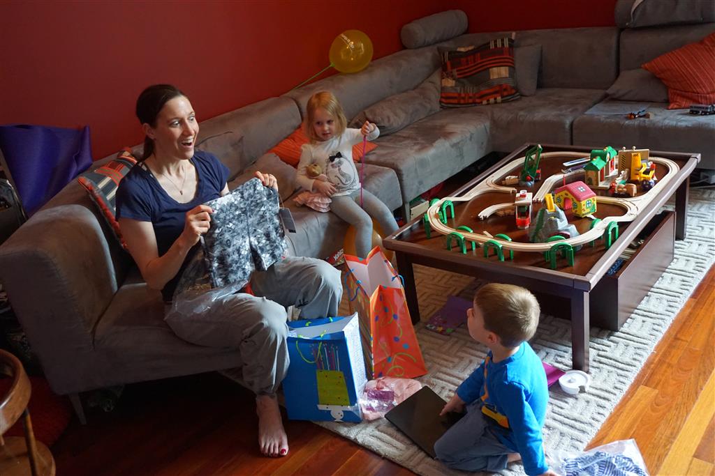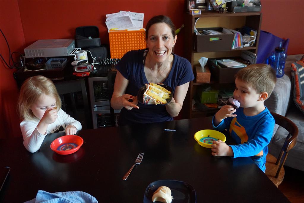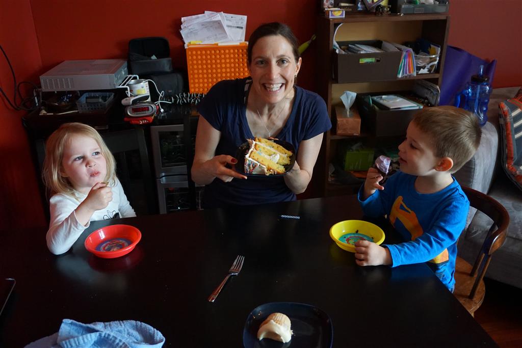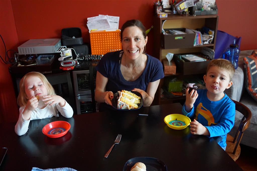 Packed in with all that fun was a big birthday celebration for Mom! We went to Sweet Mandy B’s and everyone picked out their own sweet treat – Henry got a purple cupcake, Eleanor a peanut butter cookie with a chocolate kiss in the middle, Dad got a snickerdoodle cupcake, and the Birthday Girl got a slice of white cake with sprinkles.