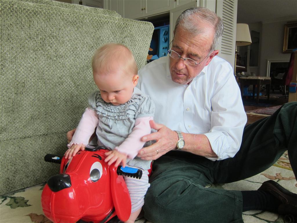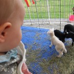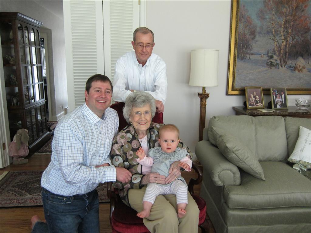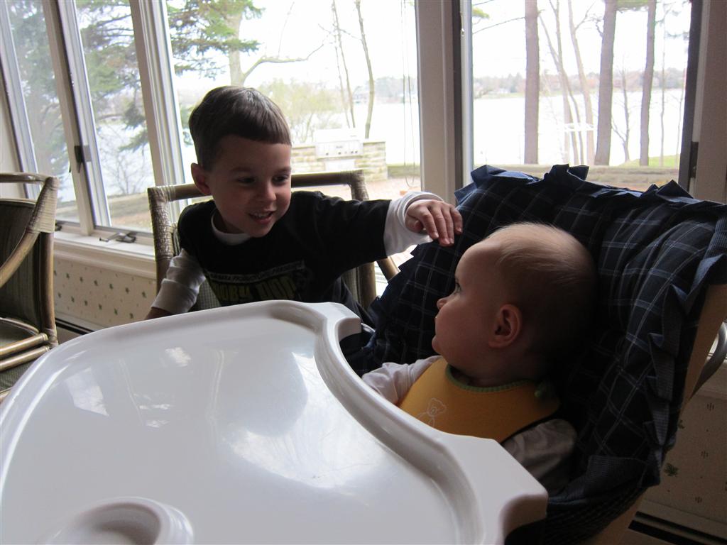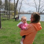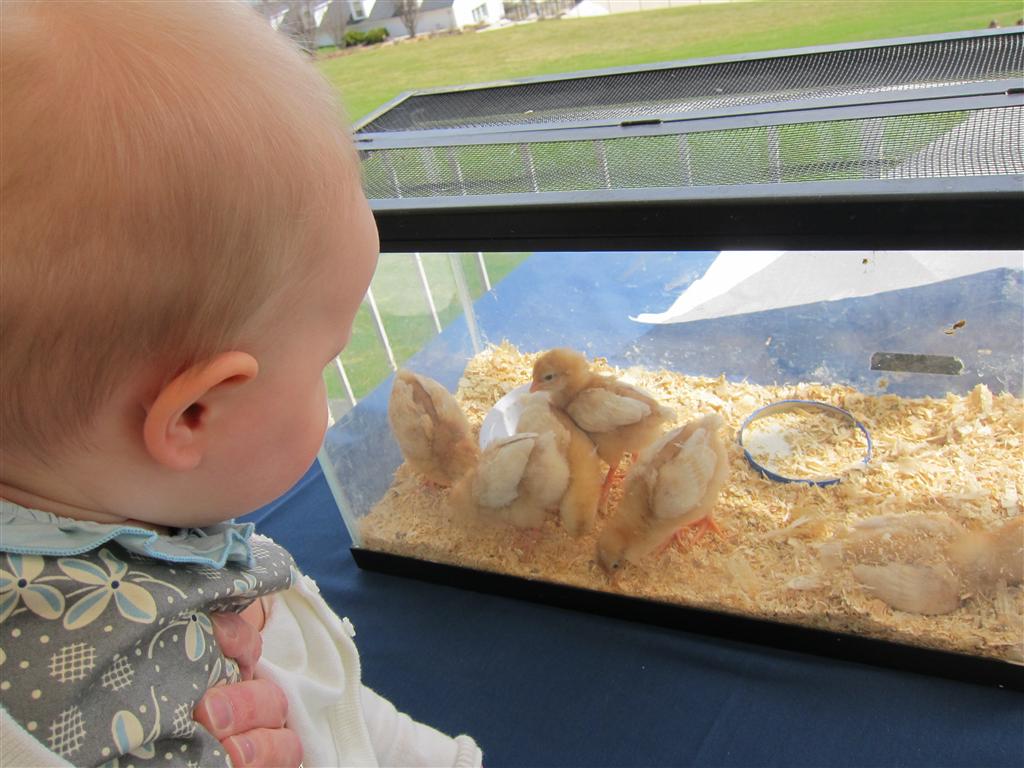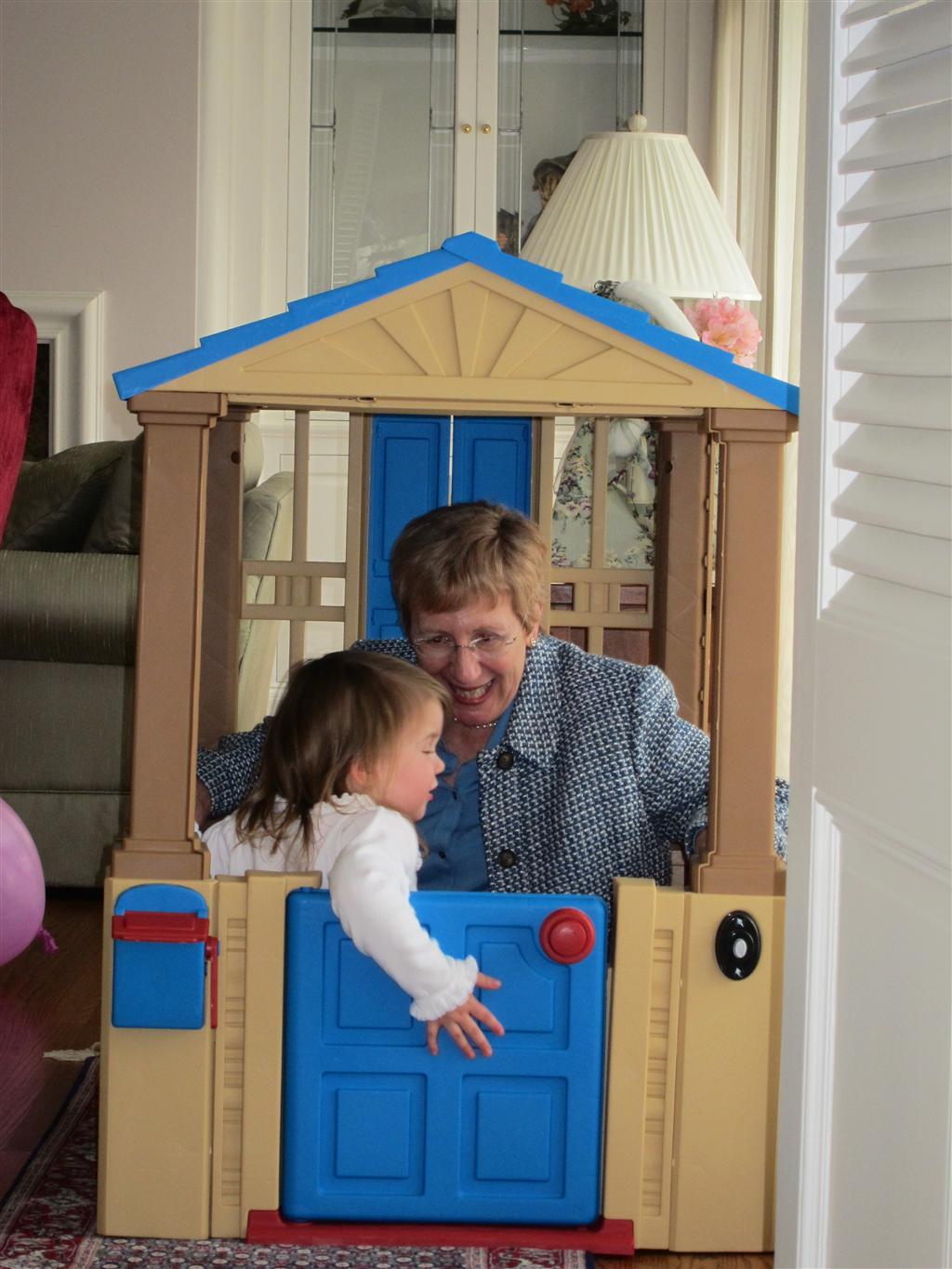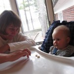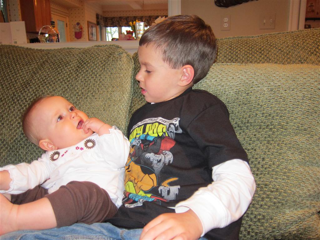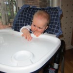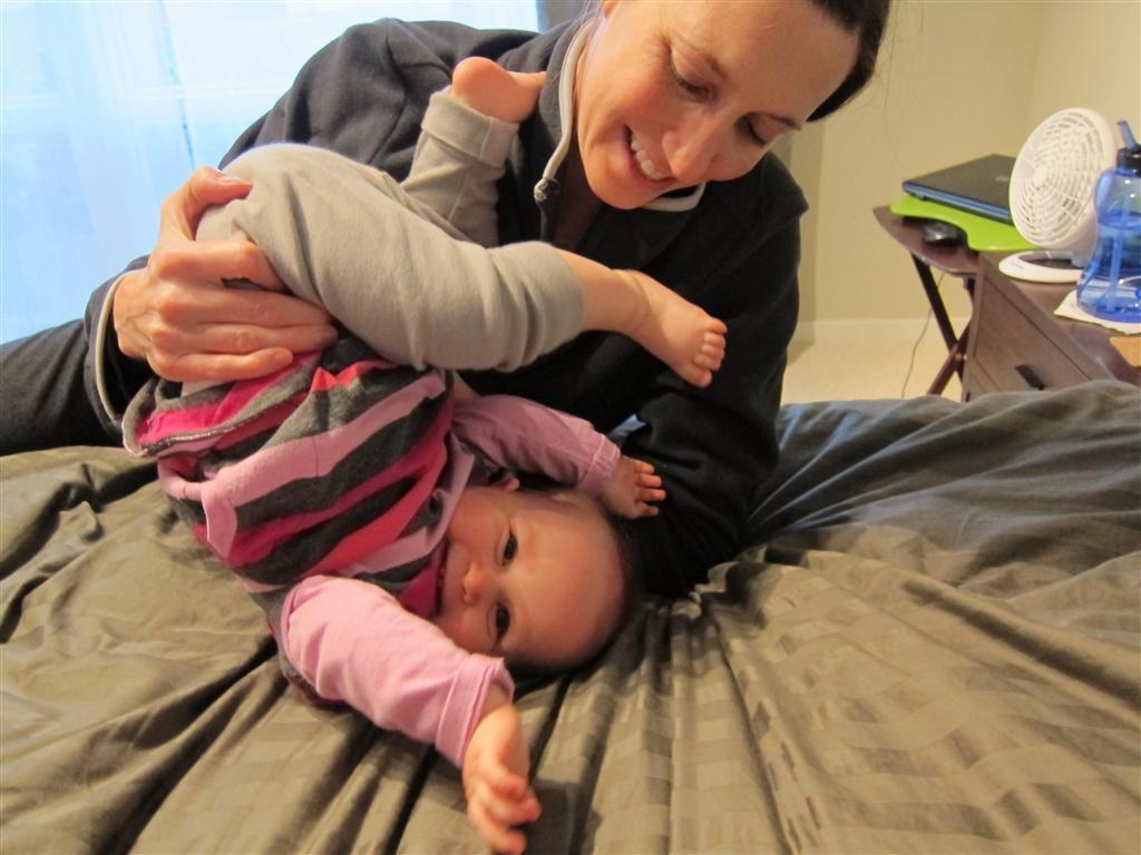 Eleanor spent her first Easter at Grandma and Grandpa’s house – and what a full house it was! Mackenzie, Jack, Ben, Mahlia and Brooke were all there too! She was super excited to meet Mahlia and Brooke for the first time – and Aunt Kristen and Uncle Michael too! Grandma and Grandpa had a standing table that was the perfect height for Eleanor – and she got lots of practice standing and even trying to pull herself up from sitting. She also got to try a ride-on toy for the first time, with mixed results. We need to work on the balance a bit more :) Eleanor did well with her first picture with the Easter Bunny – no crying but also no smiles. She also adjusted well to being one of six kids in the house – quite a change (and quite a lot more head rubbing) from the only child quiet of home. Oh yeah, and on Monday night Eleanor sat up all by herself in her crib! Time to lower the mattress again :)
