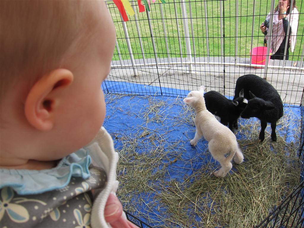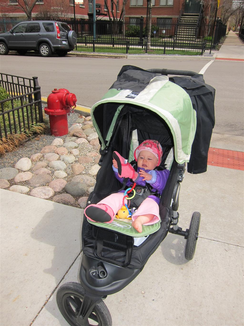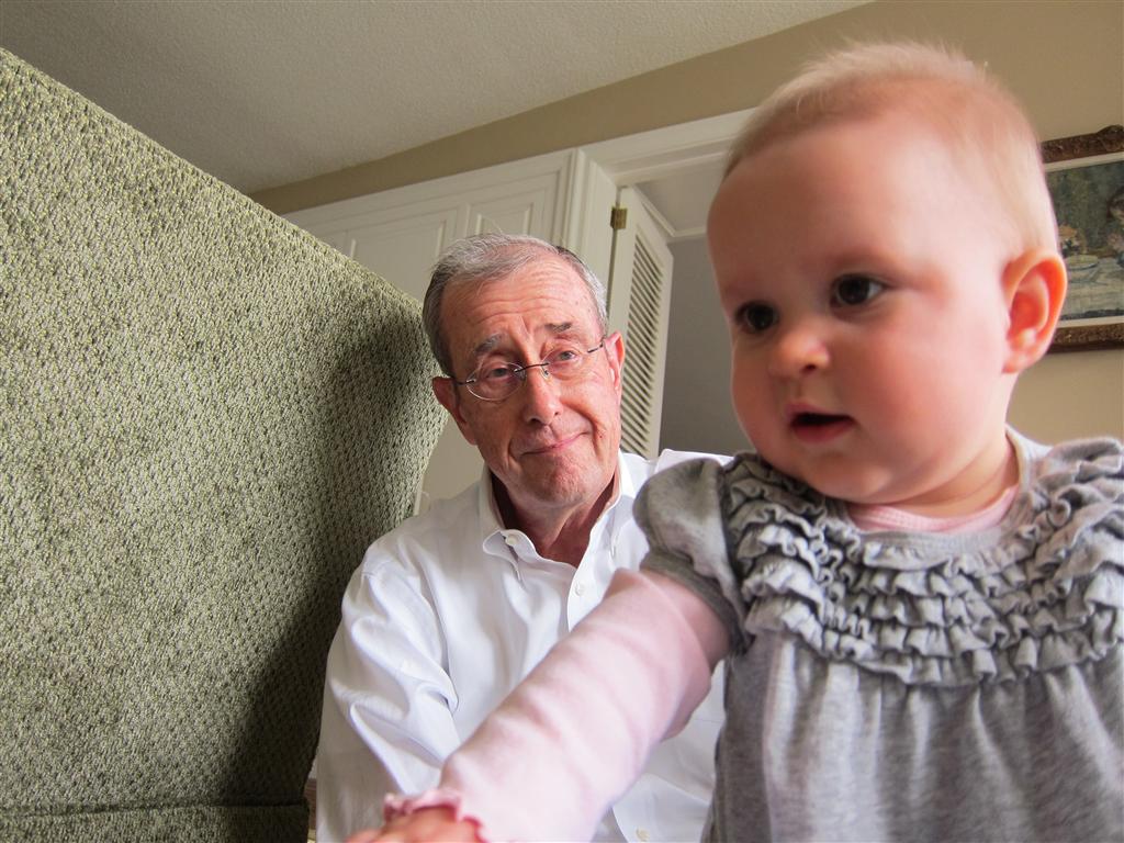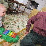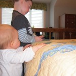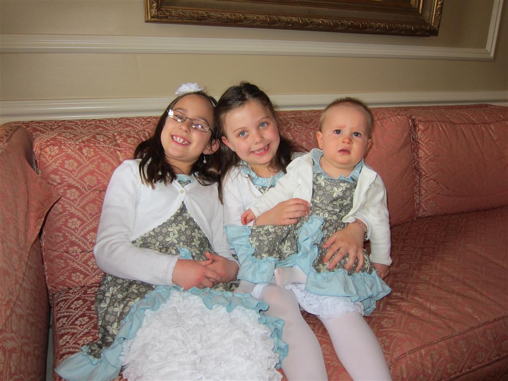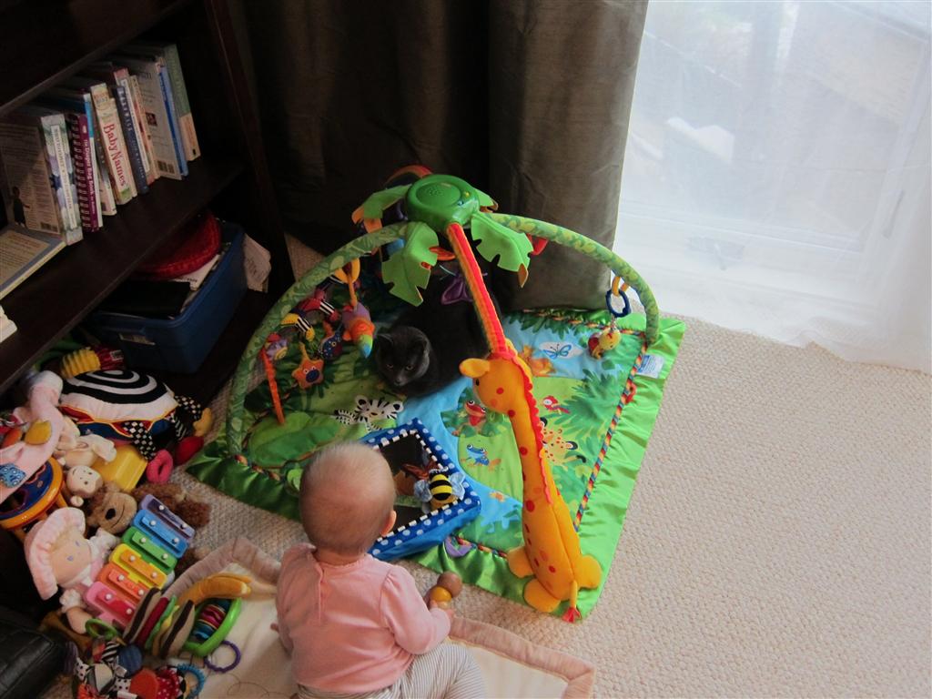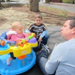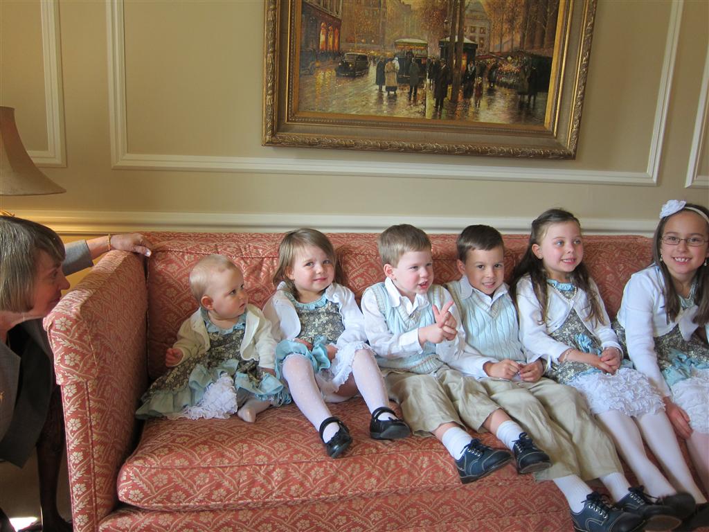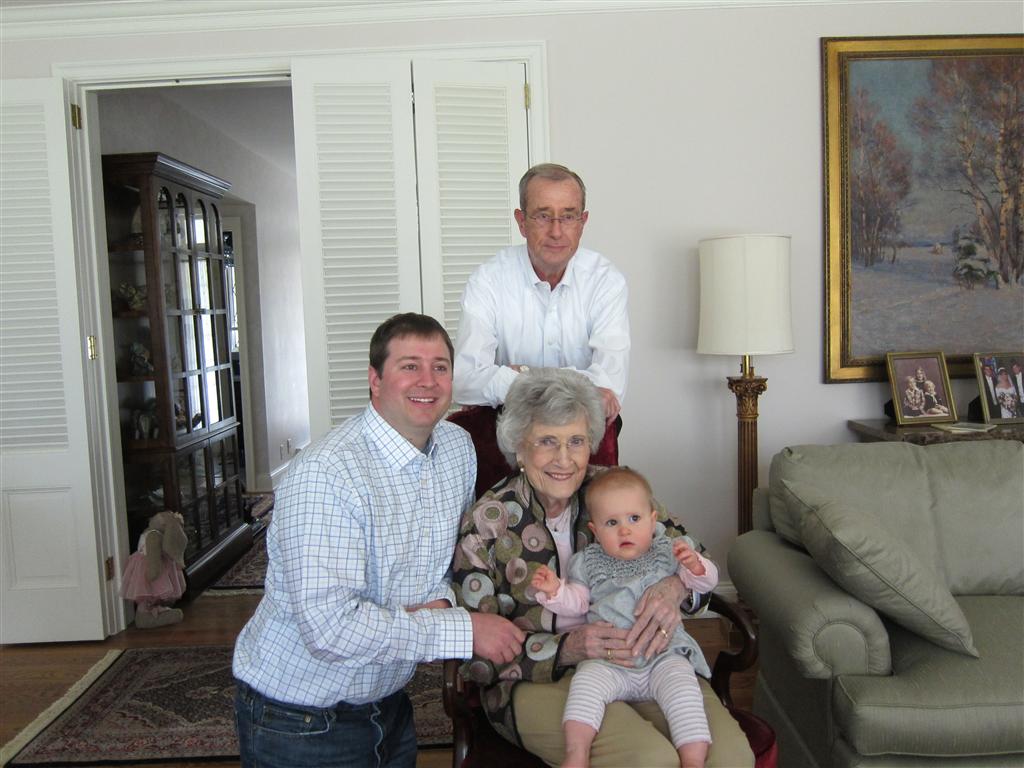Eleanor spent her first Easter at Grandma and Grandpa’s house – and what a full house it was! Mackenzie, Jack, Ben, Mahlia and Brooke were all there too! She was super excited to meet Mahlia and Brooke for the first time – and Aunt Kristen and Uncle Michael too! Grandma and Grandpa had a standing table that was the perfect height for Eleanor – and she got lots of practice standing and even trying to pull herself up from sitting. She also got to try a ride-on toy for the first time, with mixed results. We need to work on the balance a bit more :) Eleanor did well with her first picture with the Easter Bunny – no crying but also no smiles. She also adjusted well to being one of six kids in the house – quite a change (and quite a lot more head rubbing) from the only child quiet of home. Oh yeah, and on Monday night Eleanor sat up all by herself in her crib! Time to lower the mattress again :)